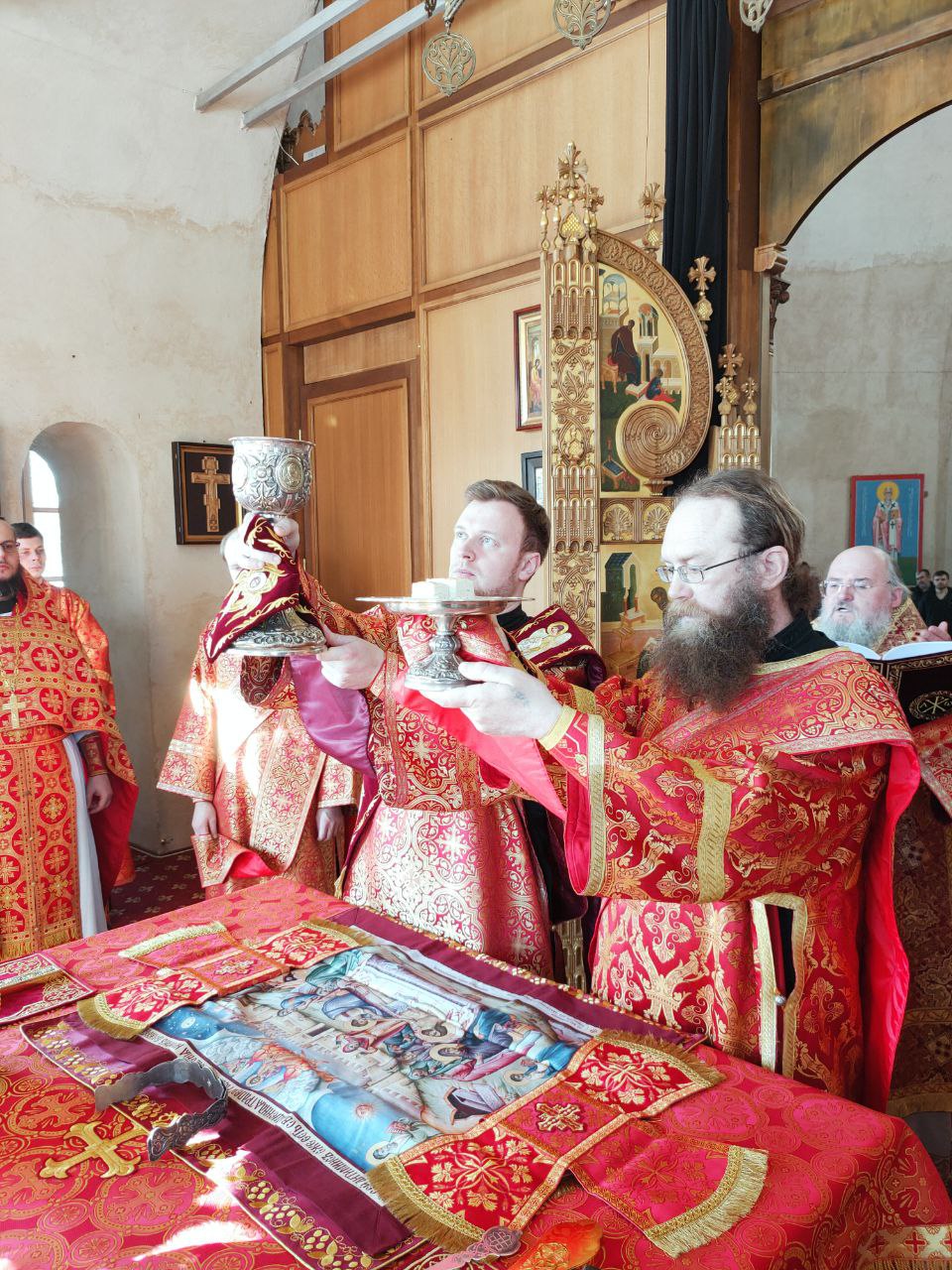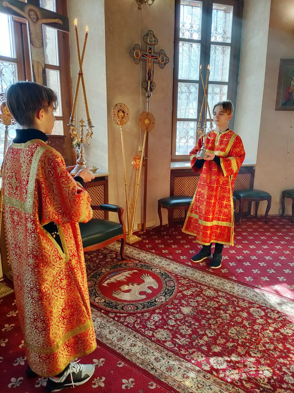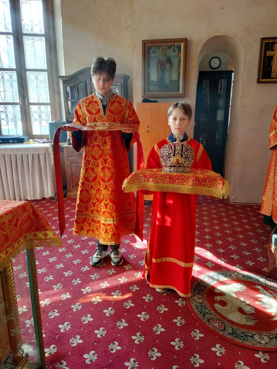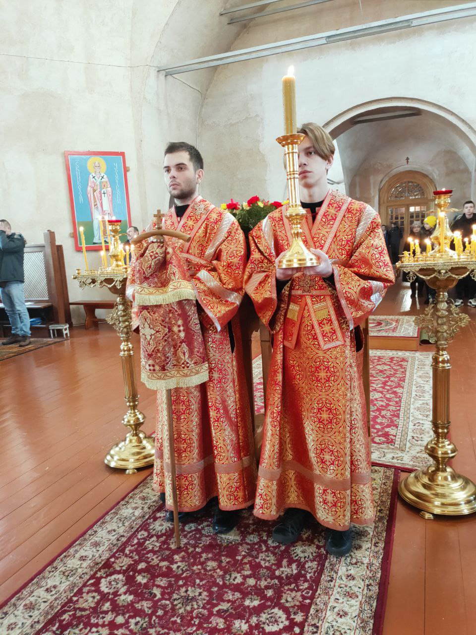 Его Преосвященству сослужили: протоиерей Антоний Хатунцев, иеромонах Паисий (Курмаз) – настоятель собора, иерей Елисей Тимофеев, иерей Евгений Чуркин, диакон Евгений Ковригин, диакон Дмитрий Лутков и иеродиакон Лука (Старостин).