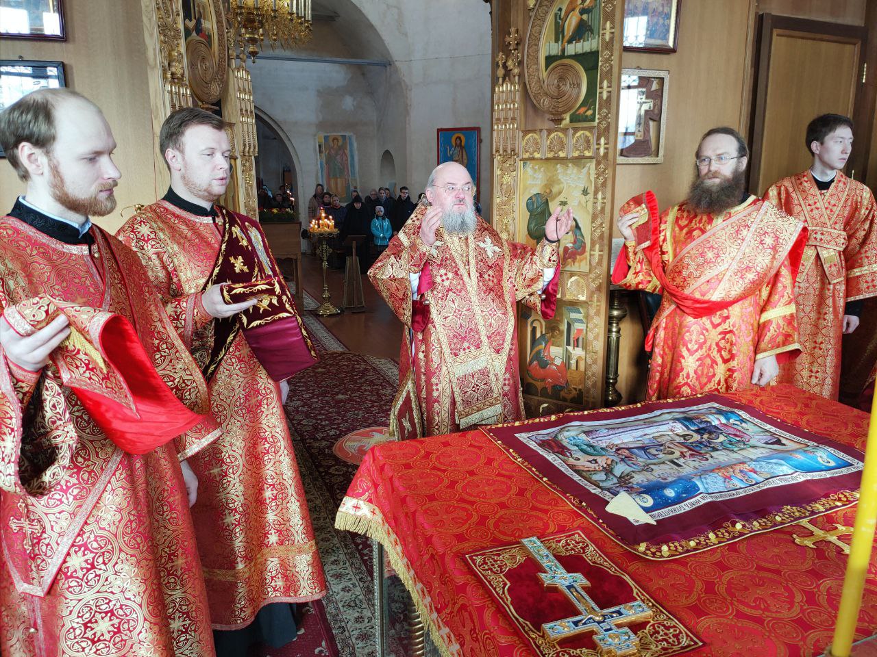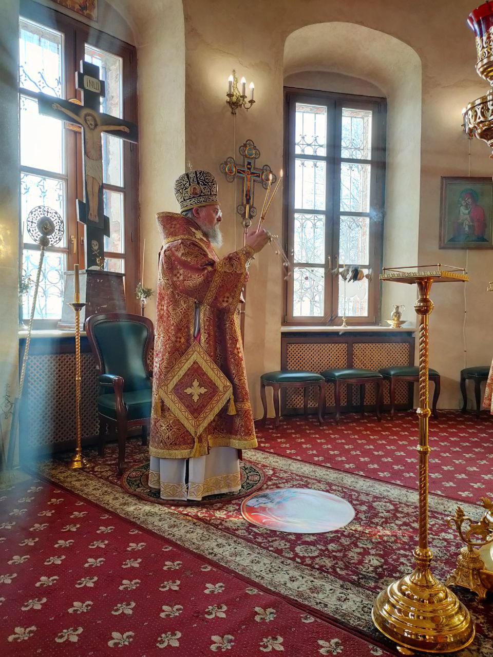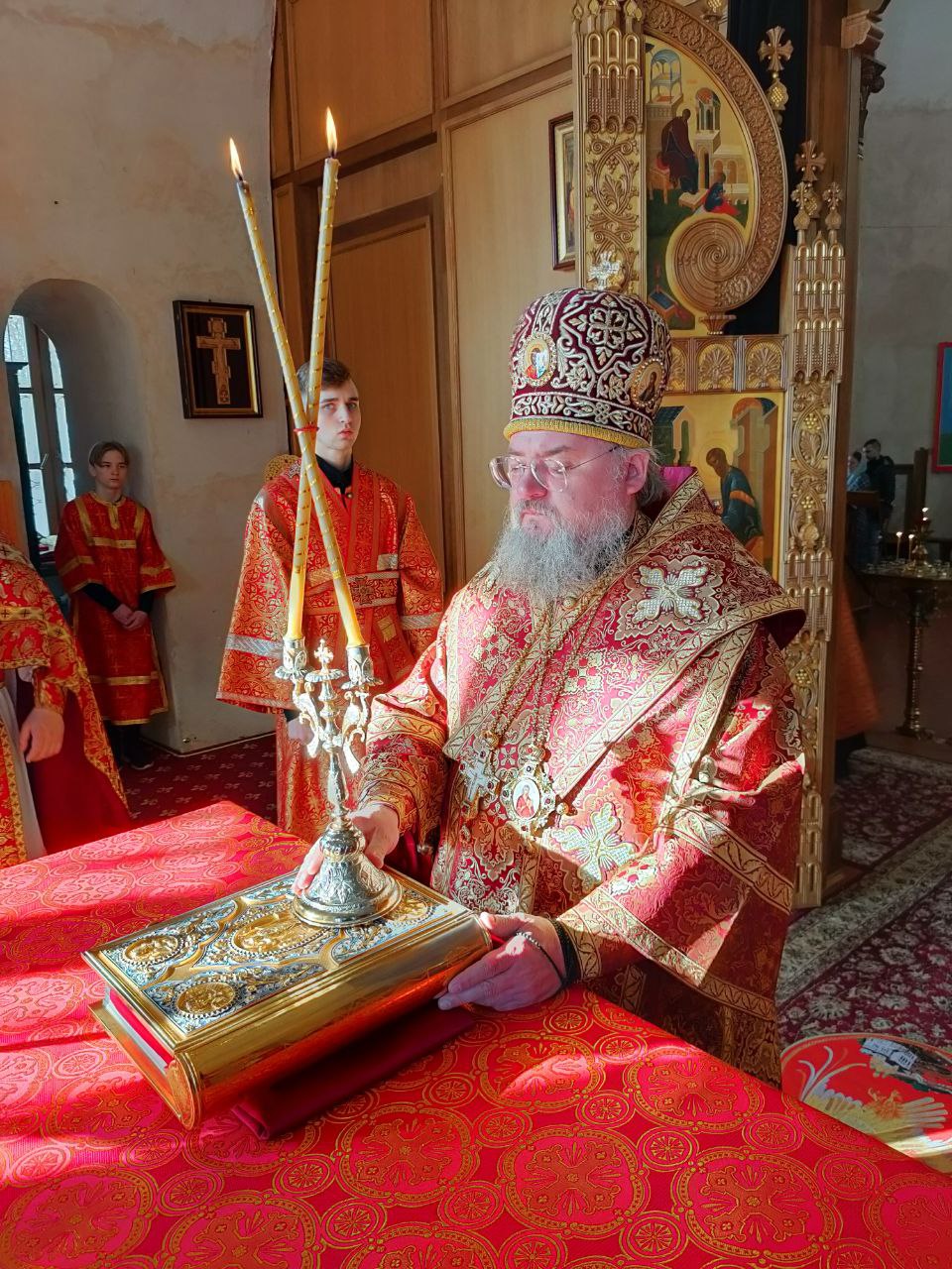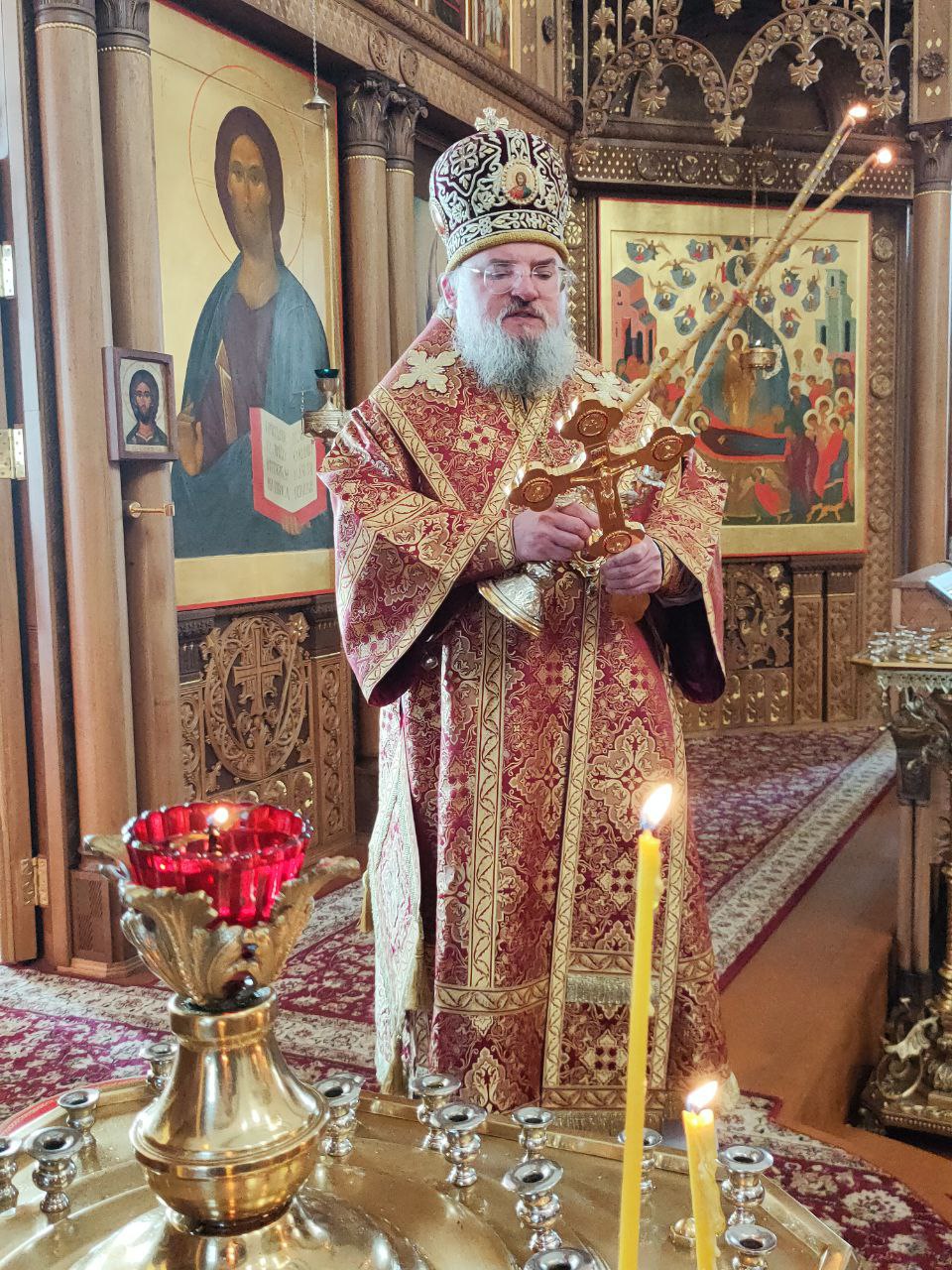 По отпусте литургии владыка с сослужащим духовенством совершили чин Торжества Православия. В завершении богослужения архипастырь произнес проповедь.