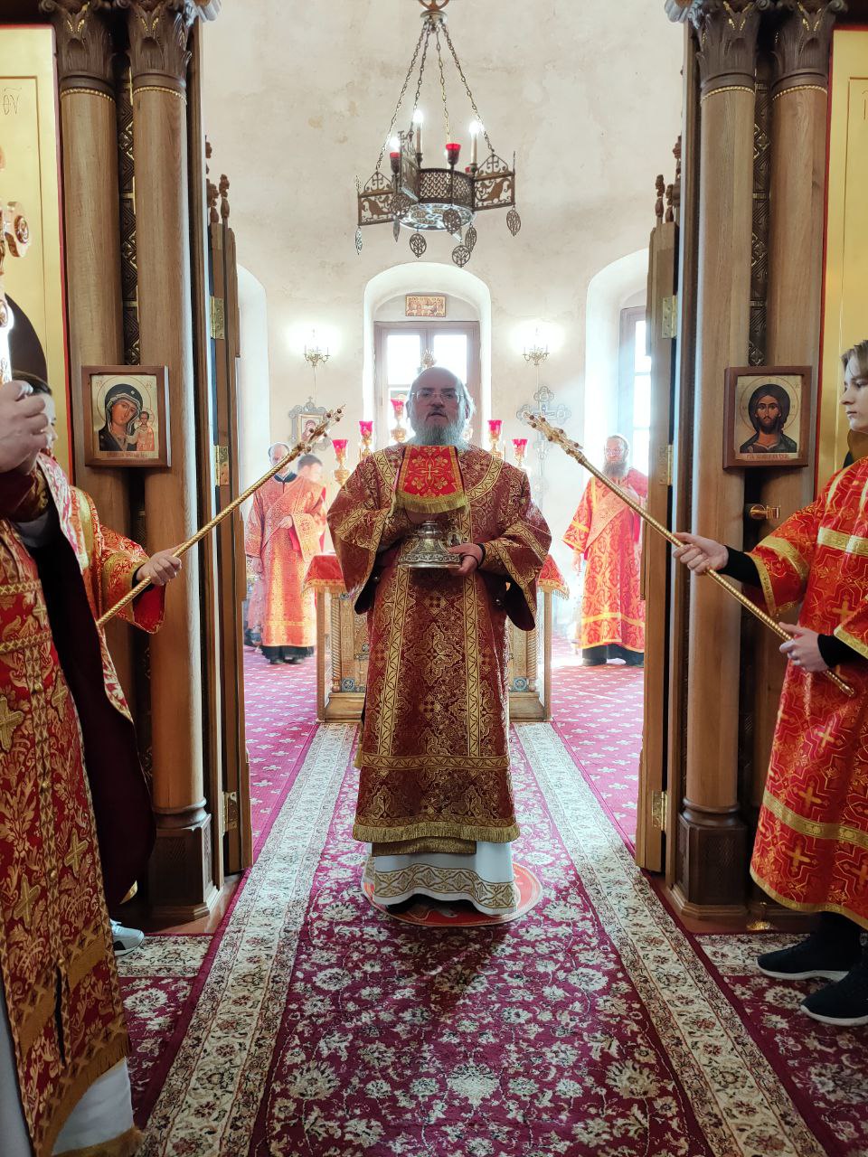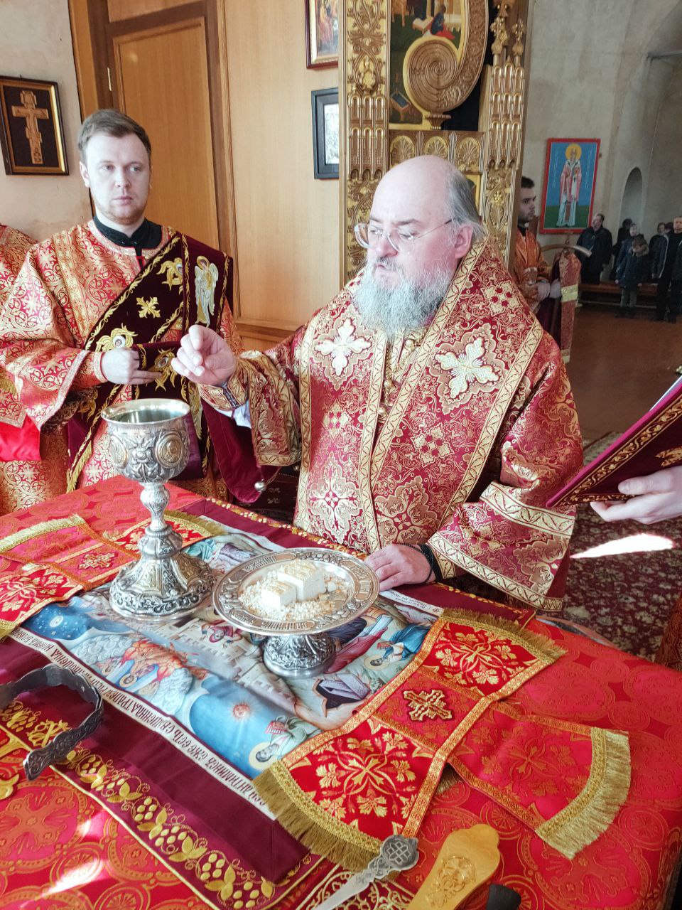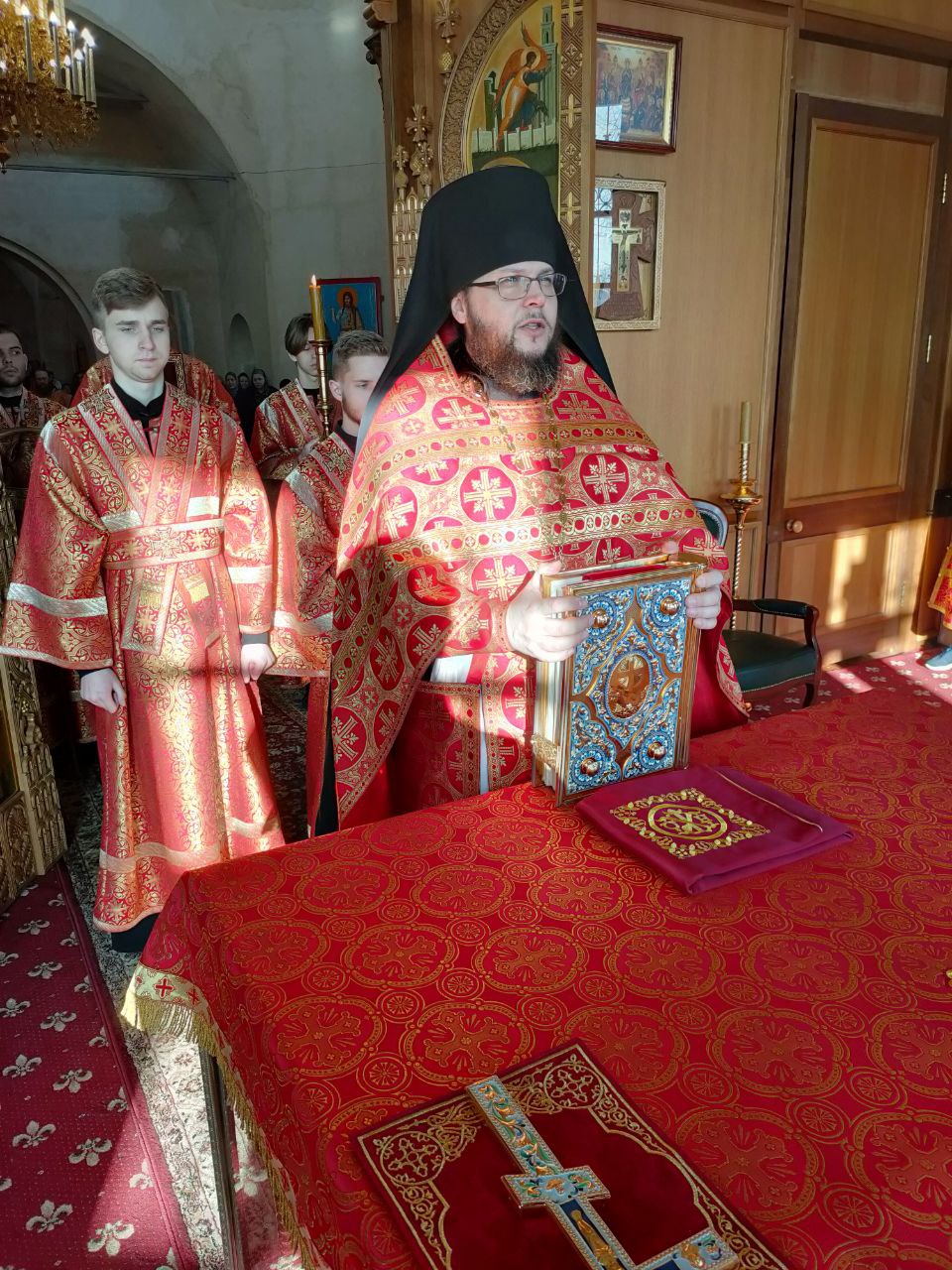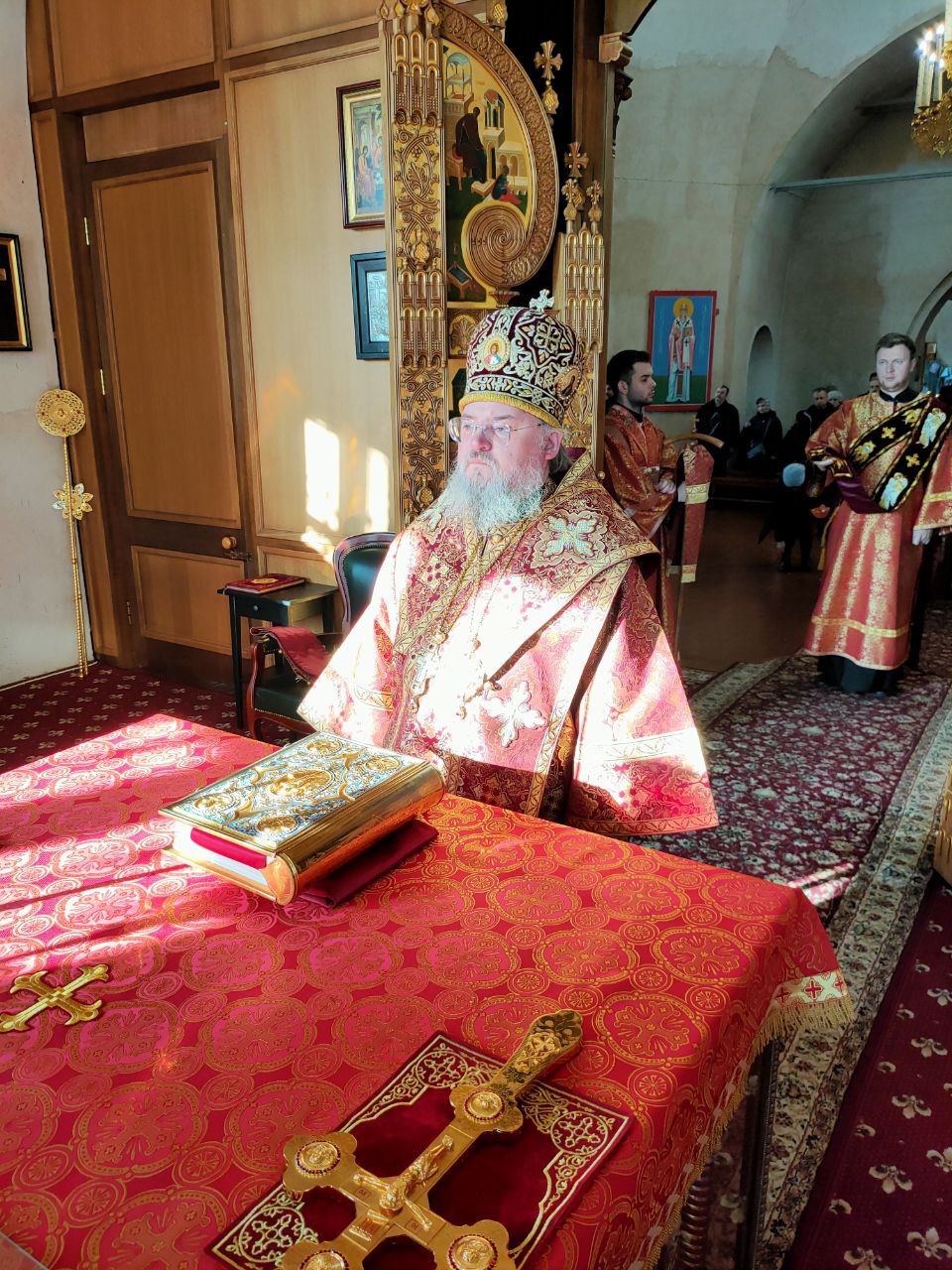 По отпусте литургии владыка с сослужащим духовенством совершили чин Торжества Православия. В завершении богослужения архипастырь произнес проповедь.
