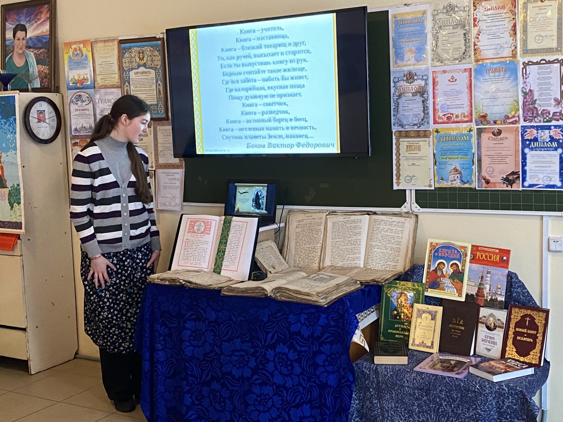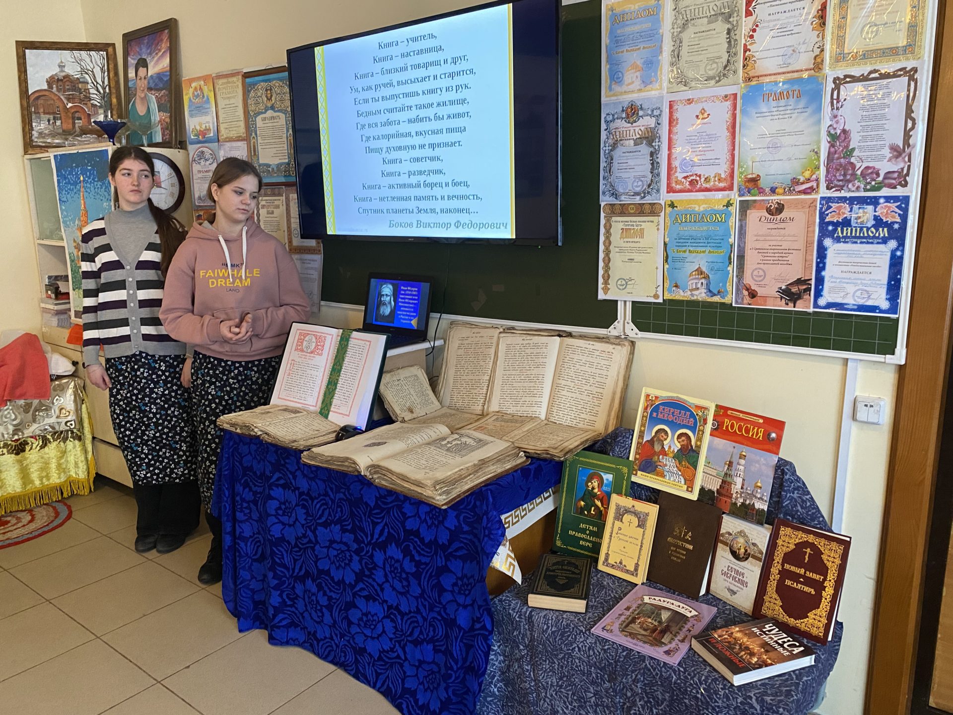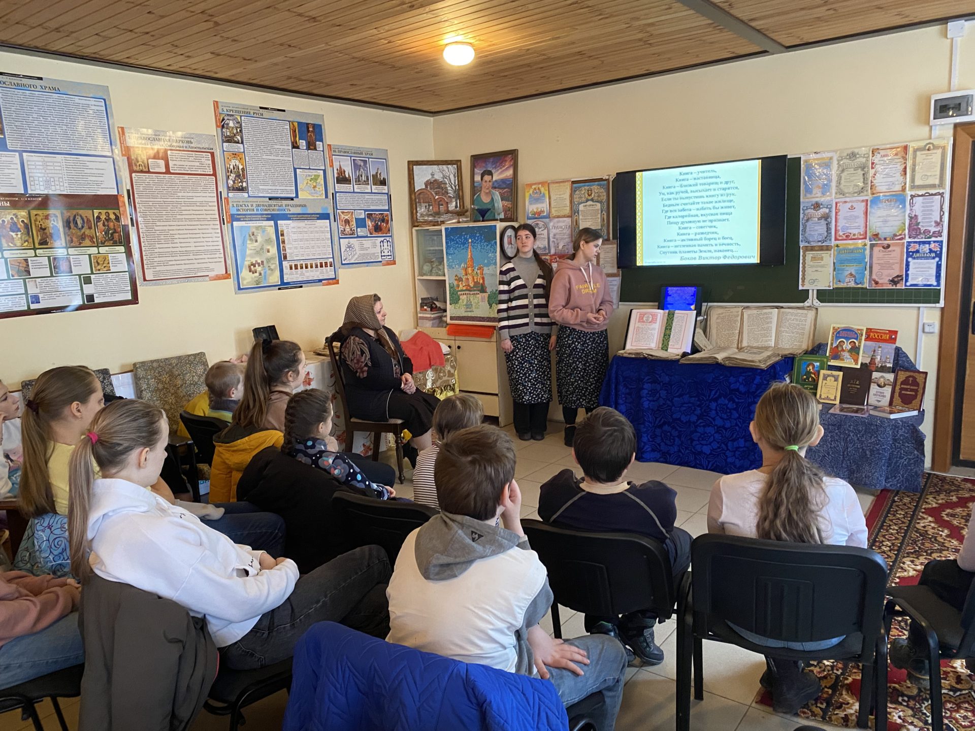 13 марта в воскресной школе «Радонеж» храма в честь преподобного Сергия Радонежского города Людиново прошел открытый урок-презентация, посвященный Дню Православной Книги «Книга и книжность на Руси». Из года в год мы празднуем День православной книги. Этот день приурочен к замечательному событию в истории нашего Отечества, к памятной исторической дате выпуска первой на Руси точно датированной печатной книги Ивана Федорова «Апостол», вышедшей в свет 14 марта 1564 года. Появление печатной книги изменило жизнь людей. Не в каждой книге Вы найдете хорошее содержание. Книги бывают разные. Первая и главная задача, которая стоит перед мыслящим читателем – отобрать для себя книги полезные, которые помогали бы формировать убеждения, укреплять нравственное начало, приобретать профессиональные навыки, становиться образованным, умным, сильным и добрым человеком! Книга несет нам этот опыт, эту историческую мудрость. Книга имеет огромное значение в жизни каждого человека и общества в целом. Она не только хранительница памяти о прошлом, но раскрывает перед человеком будущее. Ученица Воскресной школы Чеботаева Ева представила презентацию «Первопечатник Иван Федоров». В своей презентации Ева рассказала о житие Ивана Федорова о его трудах по созданию типографии. Затем Карпекина Полина представила свою презентацию «Первая русская печатная книга», в которой рассказала о создании первой книге «Апостол», почему и когда был установлен День православной книги, об истории книги. Преподаватель воскресной школы Клячина Татьяна Ивановна рассказала детям о значении книгопечатания для людей. Мы должны отдать должное тем, кто изобрел книгопечатание. Если бы не было печатной книги, то человечество не достигло бы такого уровня цивилизации, который есть сегодня. Изобретение книгопечатания дало большой толчок в развитии знаний. Через книгу научные достижения стали иметь широкое распространение и переходить от поколения к поколению; книгопечатание культурно обогатило народы, человечество стало передавать друг другу знания о Боге, о мире, основы своей веры и нравственности, через книгу получил развитие культурный обмен не только между разными народами, но между поколениями. Ее влияние на жизнь человечества определяющее, и мы можем предвидеть, каким будет будущее человека и общества по тому, что читают люди.