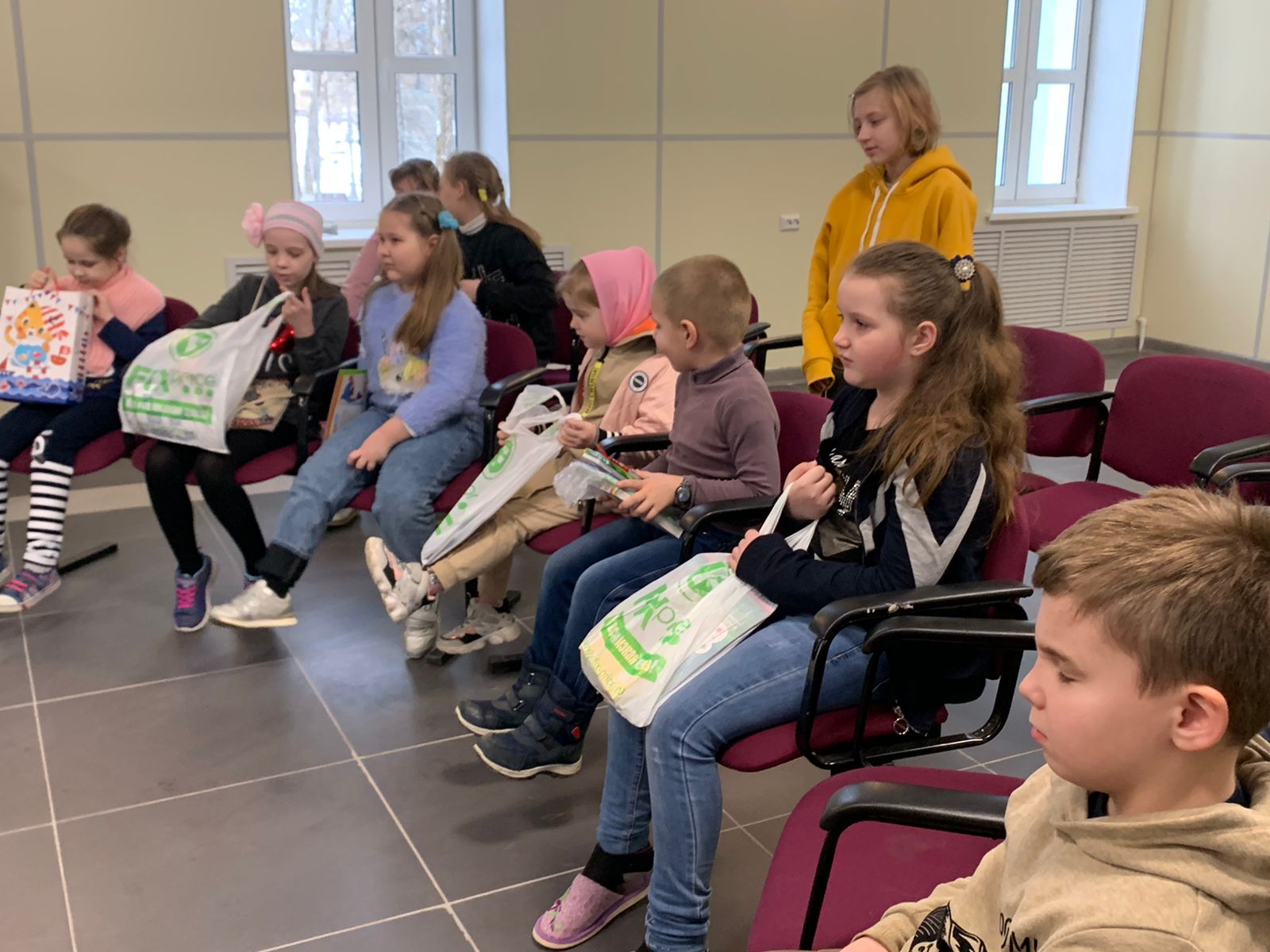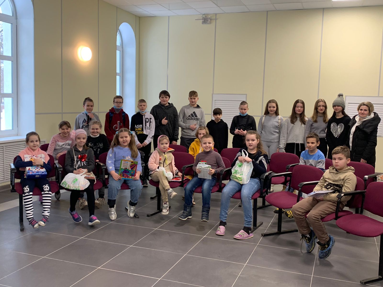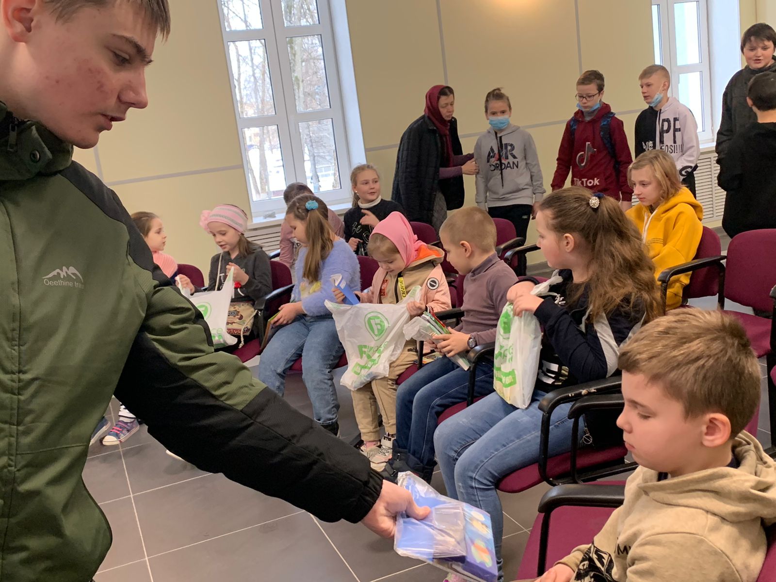 Встреча проводилась поэтапно. Сначала ученики со своим педагогом в рамках акции «Дела добра», проводимой в средней школе №1, подарили воспитанникам Воскресной школы «Светоч» канцтовары, а также передали вещи для многодетных и малоимущих семей.