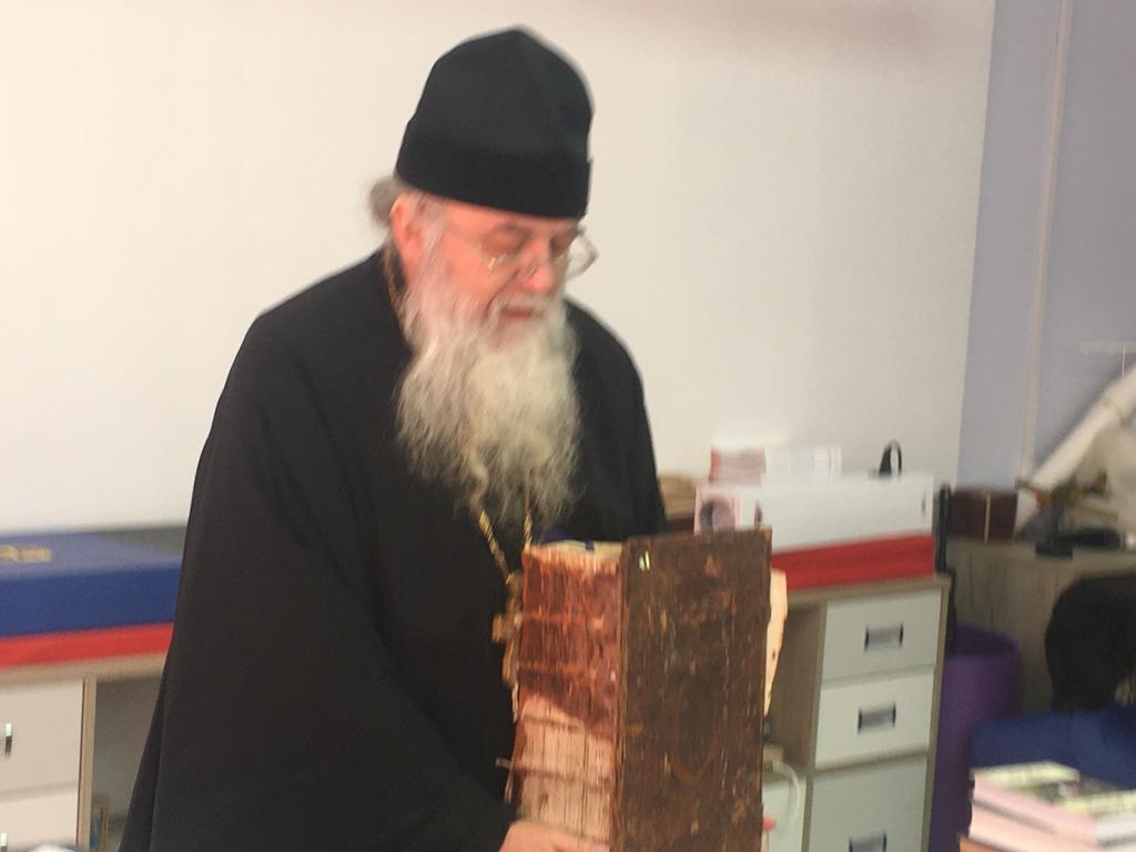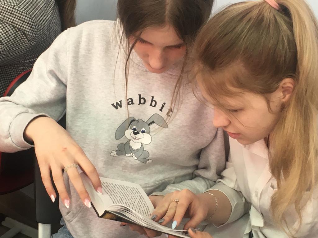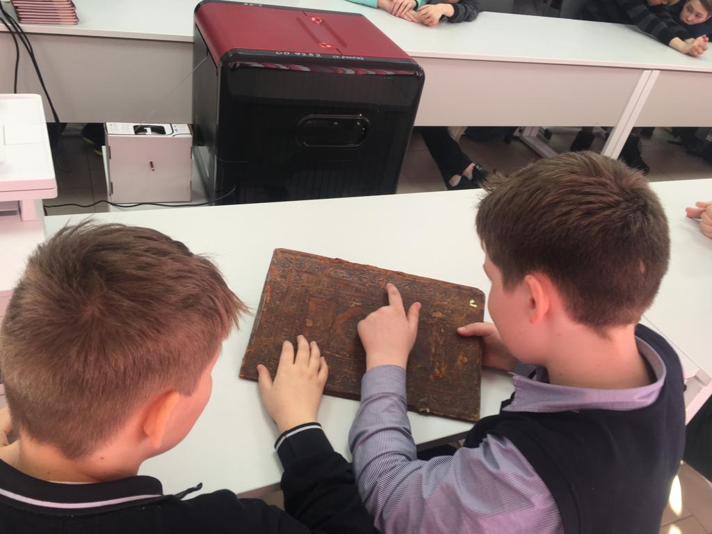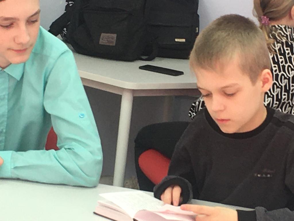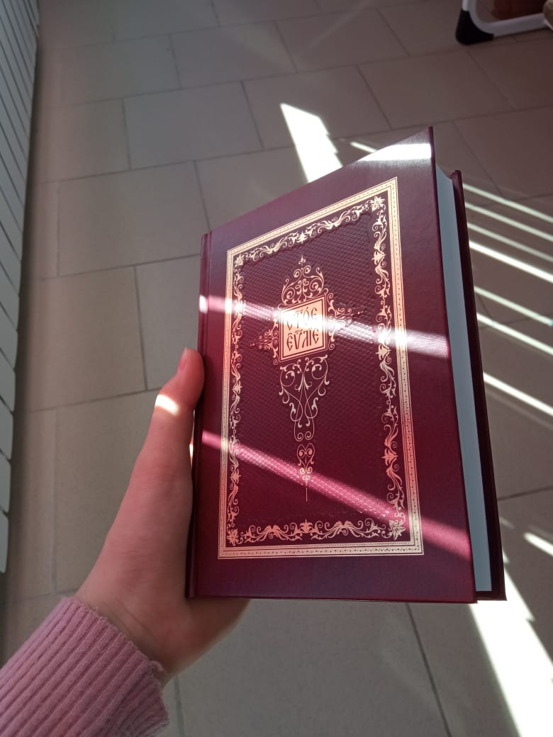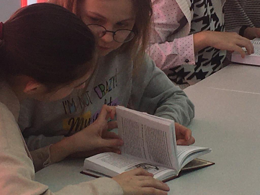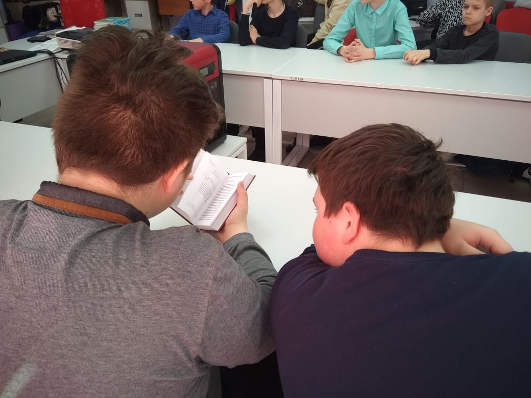 Священник представил ученикам старинное издание «Толковое Евангелие» и Псалтирь, а также небольшие по размеру издания Евангелия, Библии, Закона Божия и молитвослова. Цель этой встречи была в том, чтобы показать подросткам, что и современный русский язык в своей исторической части имеет основой Священное Писание.