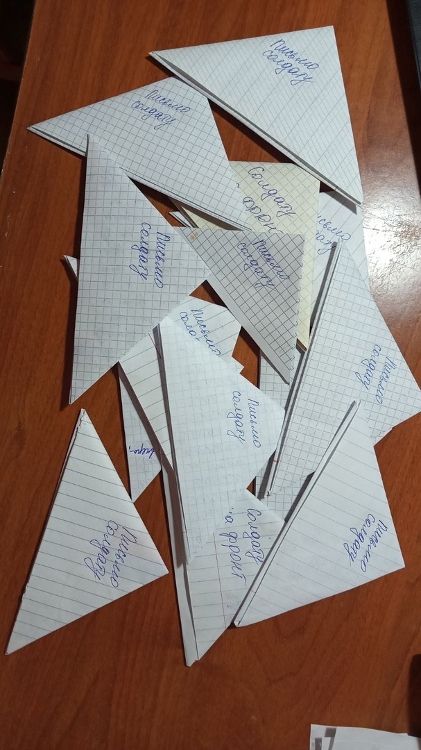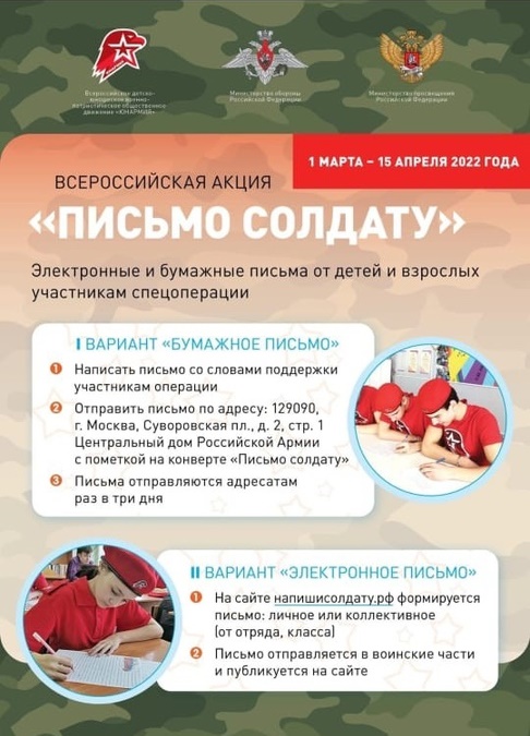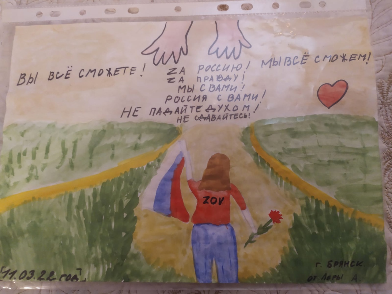 «Письмо солдату» Волонтеры Социальной службы «Милосердие» Казанского собора города Людиново, объединившись с координаторами города Брянска, приняли участие во Всероссийской акции «Письмо солдату». Дети школ и садиков пишут письма, оформляют рисунки, тем самым морально поддерживая военнослужащих, вдали от Родины.