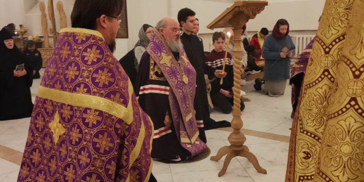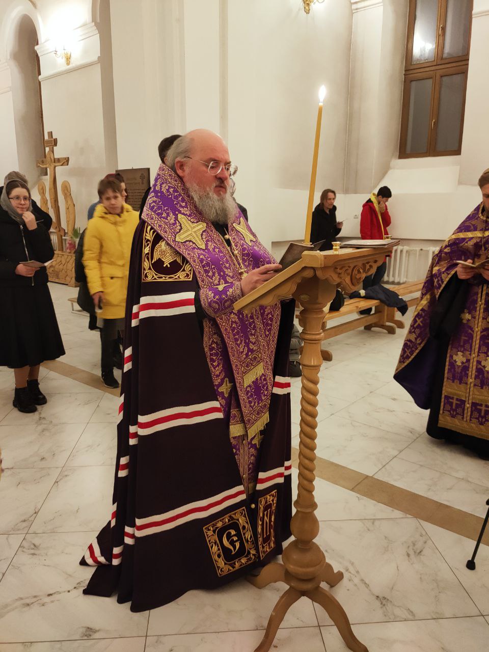 19 марта, по завершении всенощного бдения второй Недели Великого поста, епископ Козельский и Людиновский Никита совершил богослужение акафистного пения Пресвятой Богородице в Богоявленском храме города Козельска. Архипастырю сослужили: настоятель храма иерей Дионисий Куваев, иерей Лев Шиповский и диакон Евгений Васильев.  По окончании акафиста владыка коленопреклонно вознес молитву о восстановлении мира и молитву Царице Небесной.
