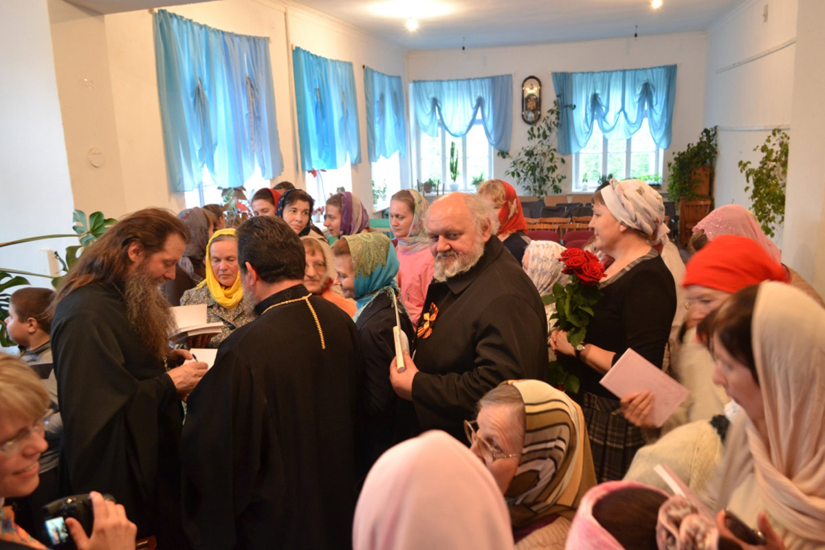 14 мая, в Казанском кафедральном соборе города Людиново протоиерей Артемий Владимиров в сослужении духовенства храма возглавил Божественную литургию. Затем, по окончании богослужения, в зале районной библиотеки состоялась встреча о. Артемия с педагогами общеобразовательных школ и воспитателями детских садов города, тема встречи — «Личная жизнь и педагогическое служение», так же прошла беседа со старшеклассниками общеобразовательных школ города и района на тему: «Что такое любовь?» Вечером того же дня, в Казанском соборе, о. Артемий Владимиров встретился с прихожанами храмов и православной общественностью города.