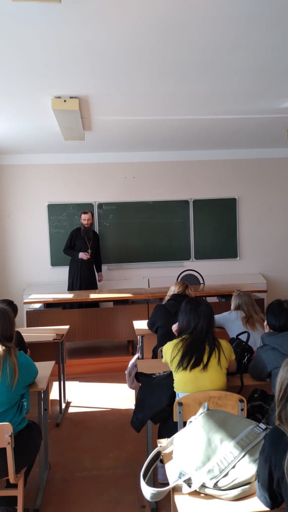 В четверг, 17 марта, состоялась встреча студентов Колледжа транспорта и сервиса города Сухиничи со священником Сергием Дроздом – настоятелем Свято-Никольского храма города Козельска, епархиальным координатором по утверждению трезвости.
