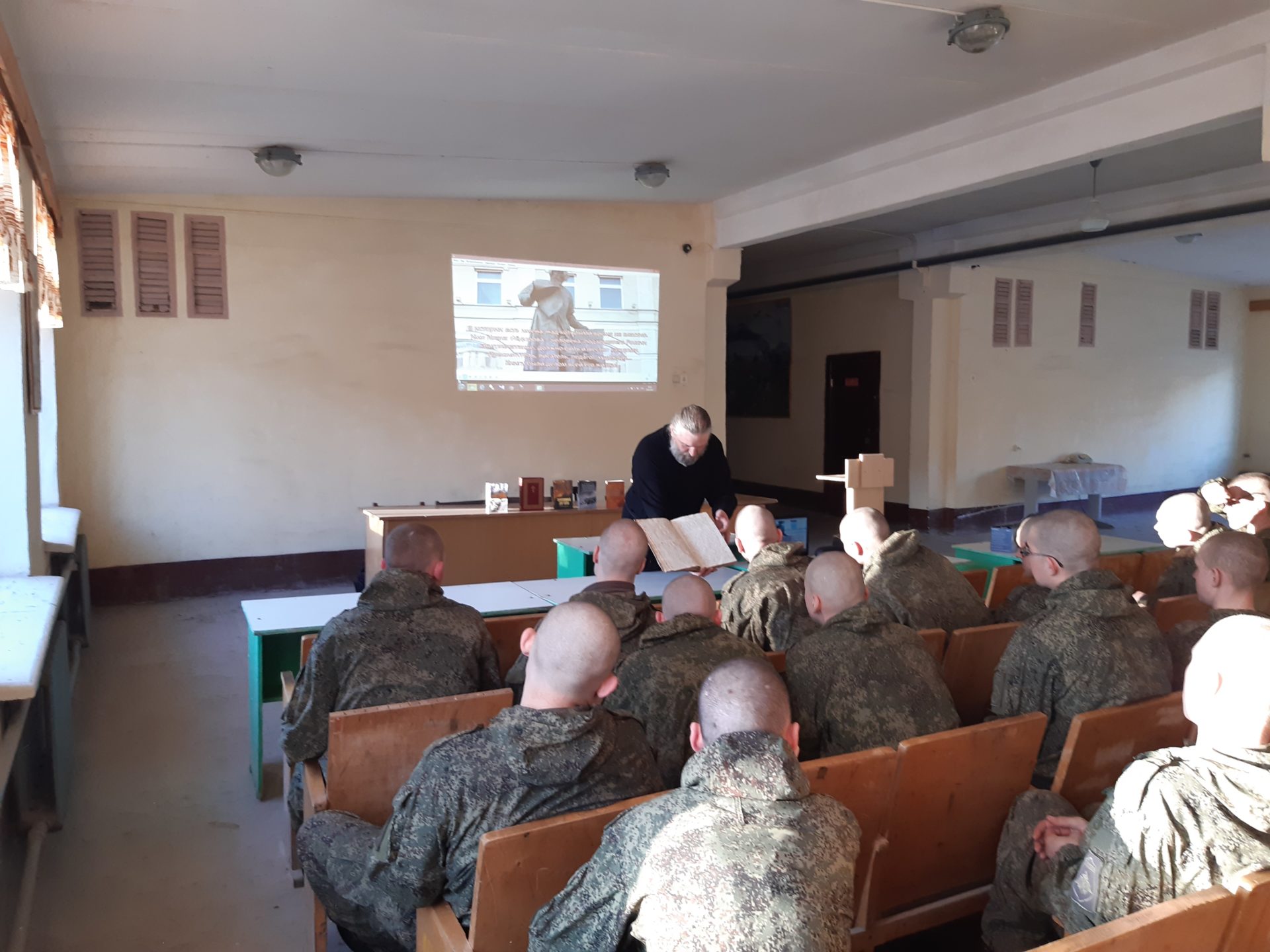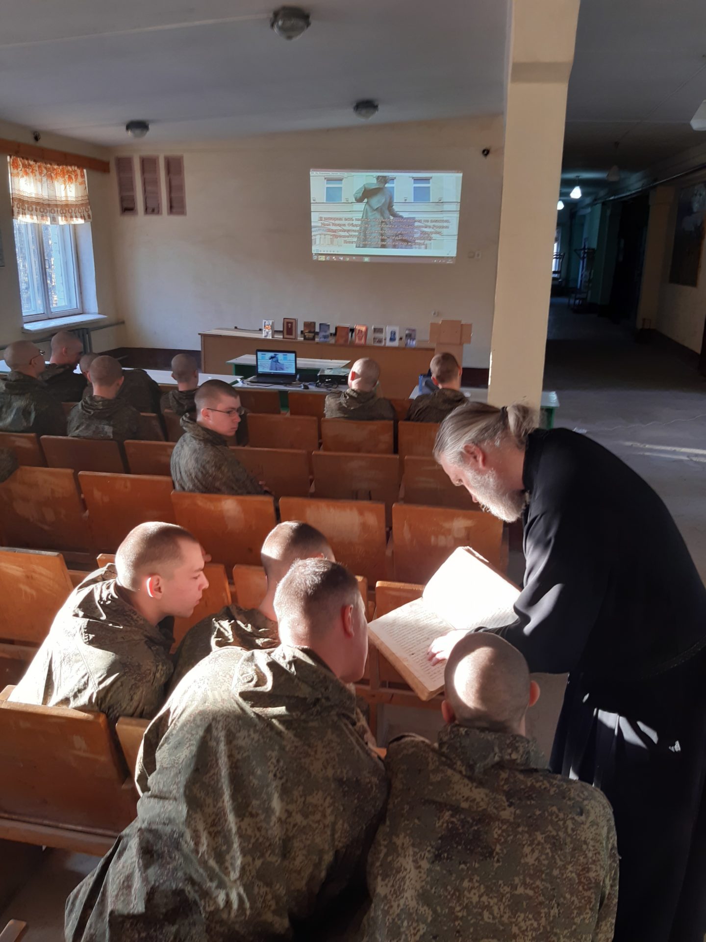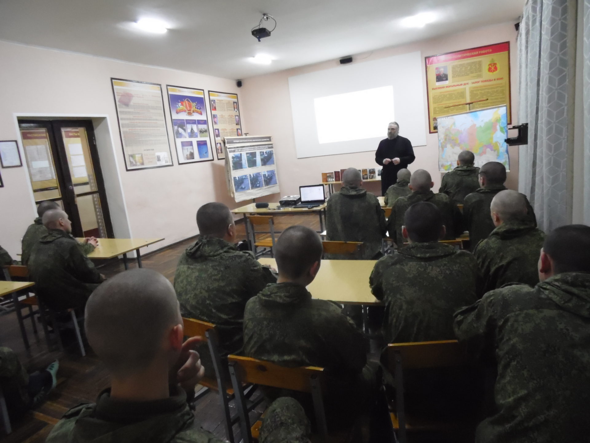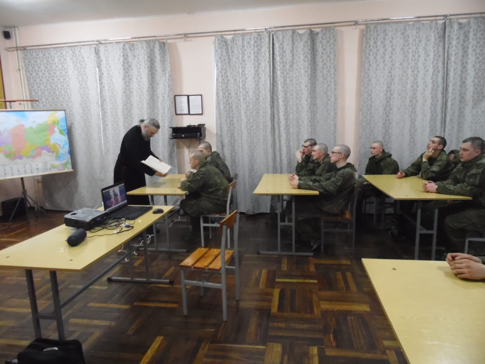 20 и 22 марта в Козельской 28 Гвардейской ракетной дивизии руководителем епархиального отдела по взаимодействию с Вооруженными Силами и правоохранительными органами Козельской епархии иереем Николаем Кузнецовым были проведены беседы с военнослужащими частей и подразделений соединения на тему: «День православной книги».