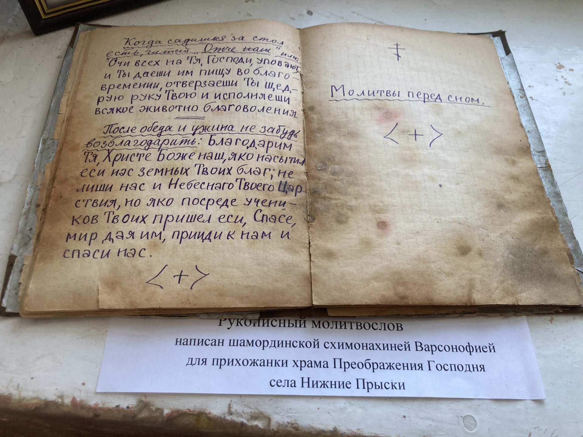 20 марта в Воскресный день в храме Преображения Господня села Нижние Прыски была представлена экспозиция старинных книг, сохранившихся при храме с дореволюционных времен, приуроченная ко дню Православной Книги. В экспозиции представлены Минеи храма за 1692-1693 годы Ртищевской печати, на страницах которых есть поминовение императора Петра I с его братом, так же представлены минеи, часослов, служебник, молитвословы за 18-19 века и начала прошлого столетия. Интересен и рукописный молитвослов, написанный по памяти вручную монахинями Шамординского монастыря для местных жителей в годы, когда богослужебные книги достать было невозможно.
