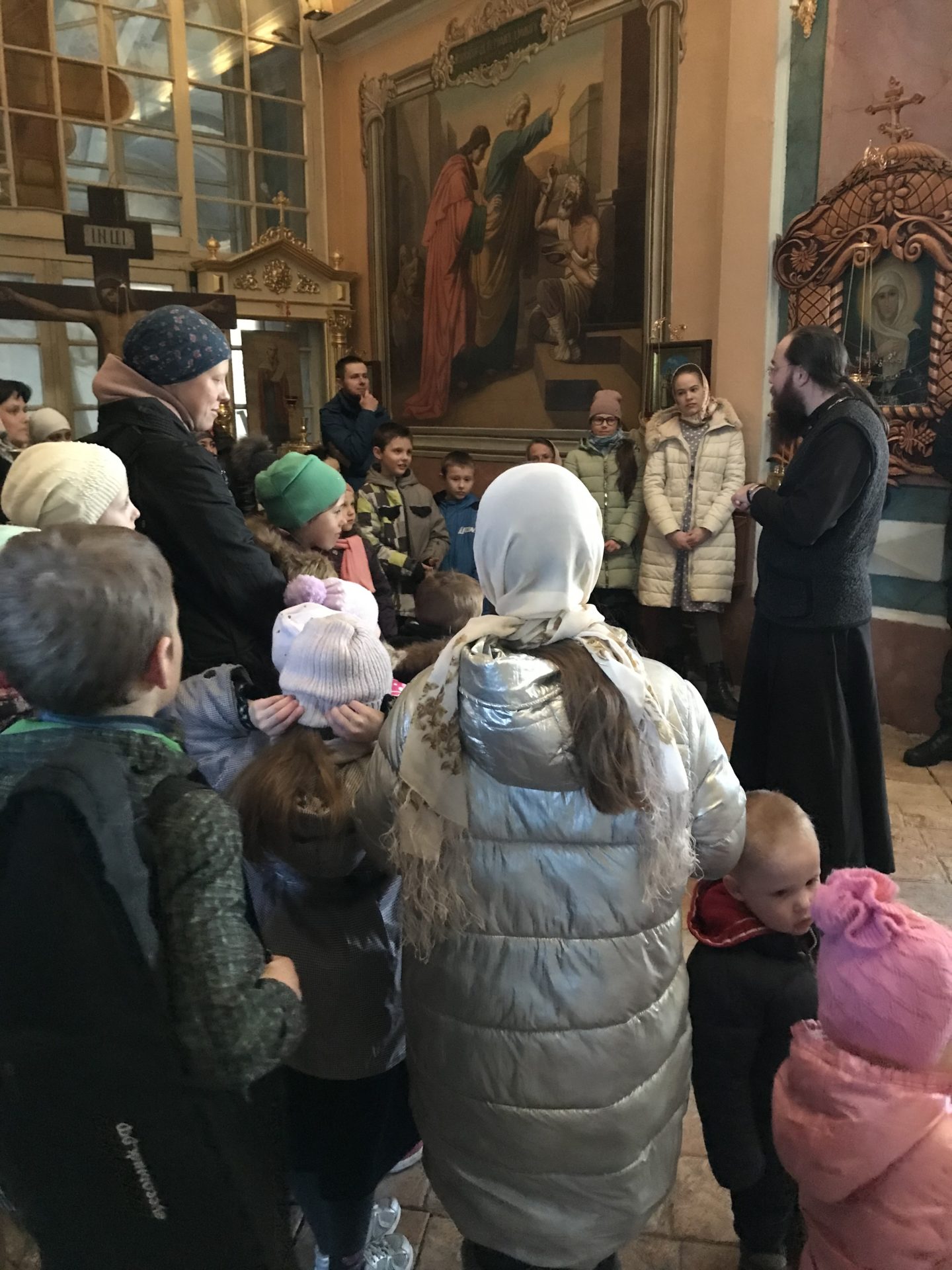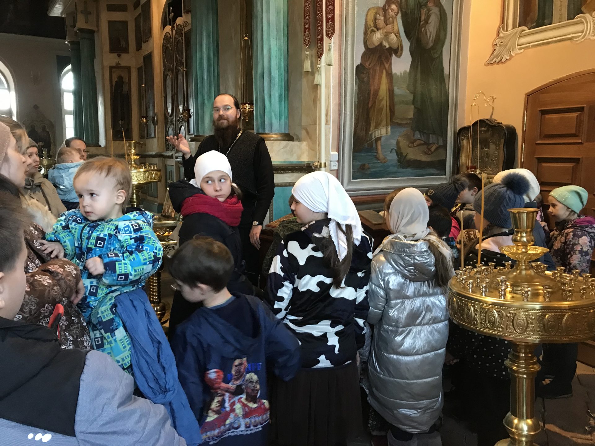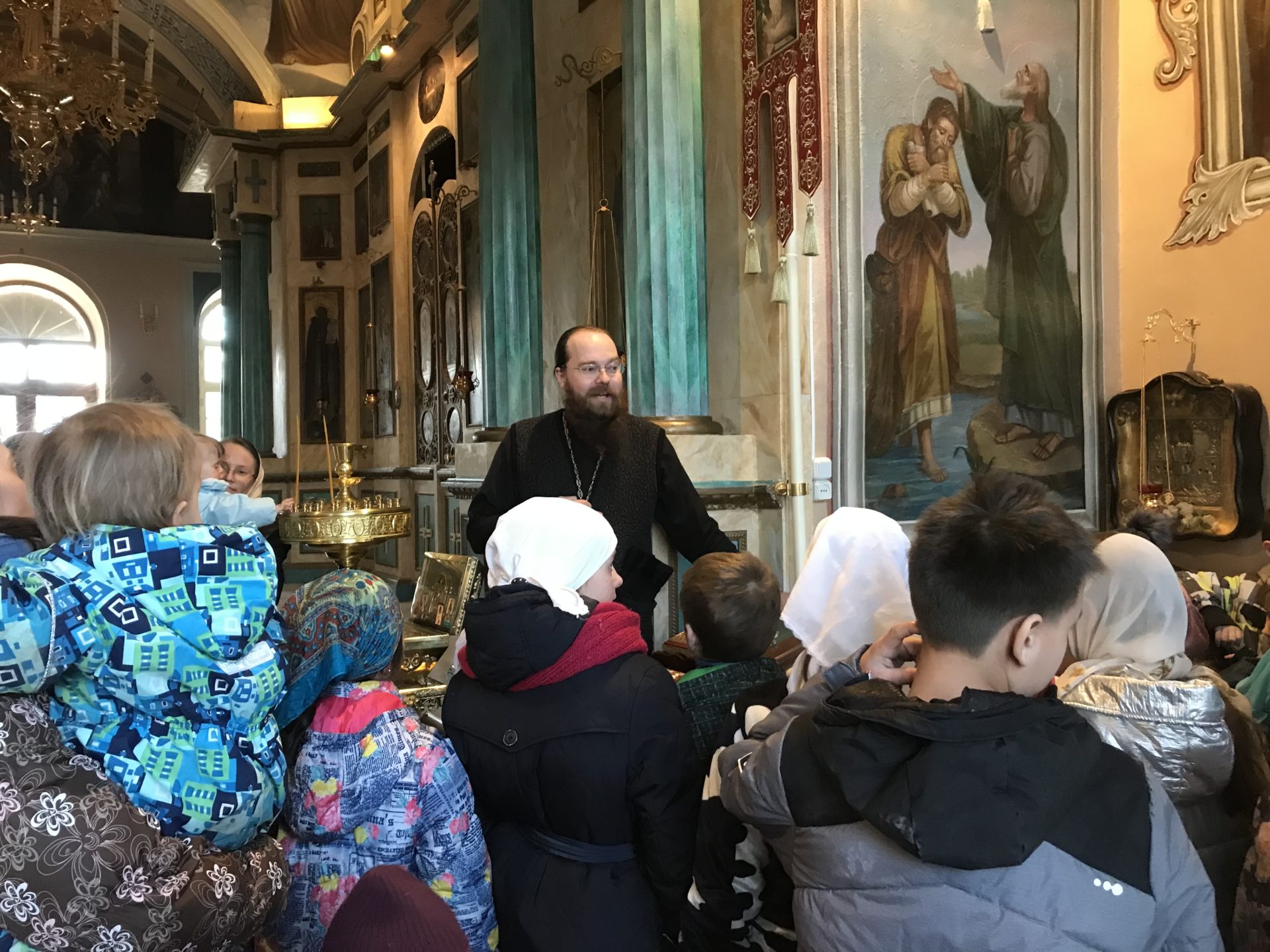 В самом храме после совместной молитвы перед началом доброго дела дети и их родители были ознакомлены с экспозицией старинных книг, а так же состоялась беседа с настоятелем храма иереем Тихоном Худяковым о первых книгоиздателях на Руси, о связи боярина Феодора Михайловича Ртищева с храмом и самим селом Нижние Прыски, (стоит заметить что потомок боярина Ртищева являлся владельцем села и одним из тех кто начал строительство большого трехпрестольного храма, а так же сохранились книги Ртищевской печати принадлежащие с тех пор храму) об особенностях славянской письменности и издательского дела, а так же о пользе душеспасительного чтения.