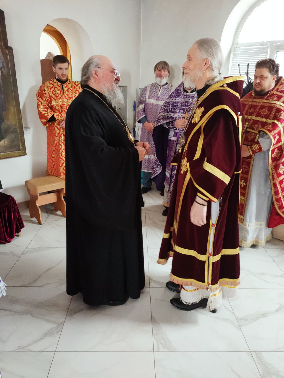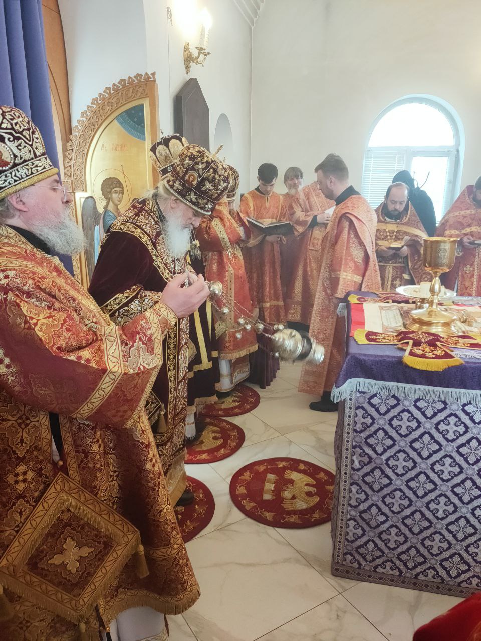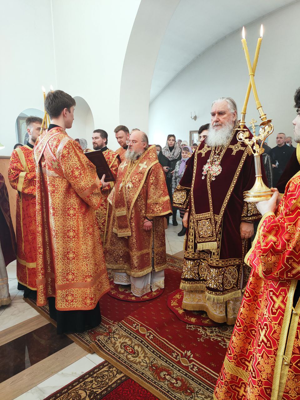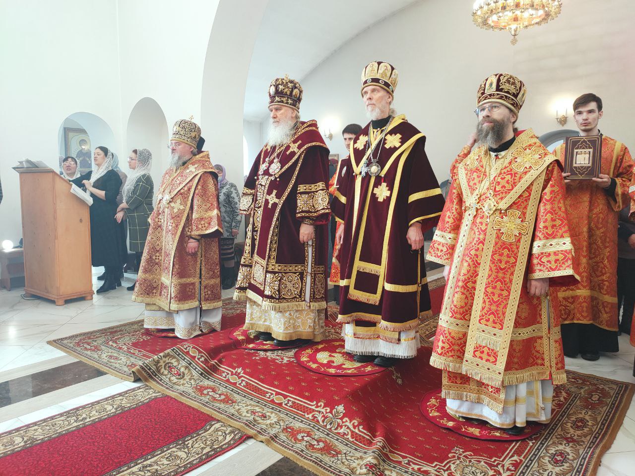 Архипастырям сослужили протоиерей Александр Рябов, протоиерей Алексий Пелевин, протоиерей Антоний Хатунцев, иерей Дионисий Лобанов, иерей Сергий Азаркин. Диаконский чин возглавил протодиакон Сергий Комаров.