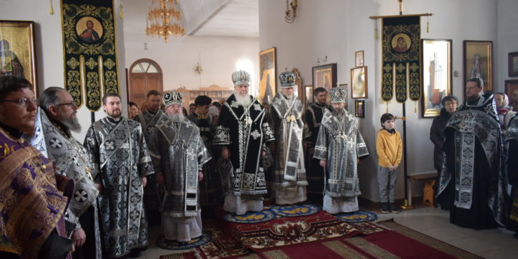 27 марта 2022 года, митрополит Калужский и Боровский Климент, архиепископ Песоченский и Юхновский Максимилиан, епископ Козельский и Людиновский Никита, епископ Тарусский Леонид, викарий Калужской епархии совершили Чин Пассии с чтением акафиста Страстям Христовым в храме в честь святых бессребреников Космы и Дамиана в поселке Думиничи.