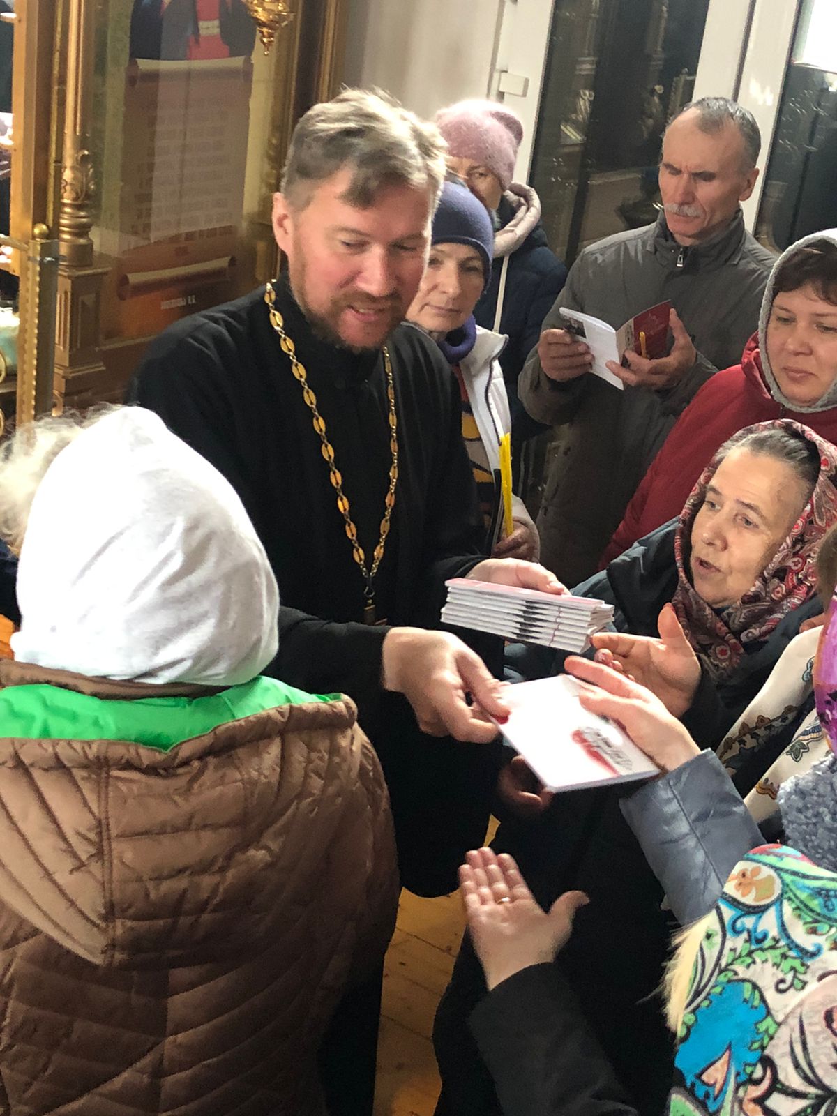 27 марта, в Неделю Крестопоклонную, благочинный Хвастовичского округа Козельской епархии протоиерей Александр Карпов в храме в честь Успения Пресвятой Богородицы в селе Хвастовичи, по окончании Божественной литургии, в рамках празднования Дня православной книги, провел для прихожан и гостей села презентацию книги митрополита Калужского и Боровского Климента (Капалина) «Одна из тысячи». После приветственных слов и ответов на вопросы экземпляры данной книги были подарены всем присутствующим.