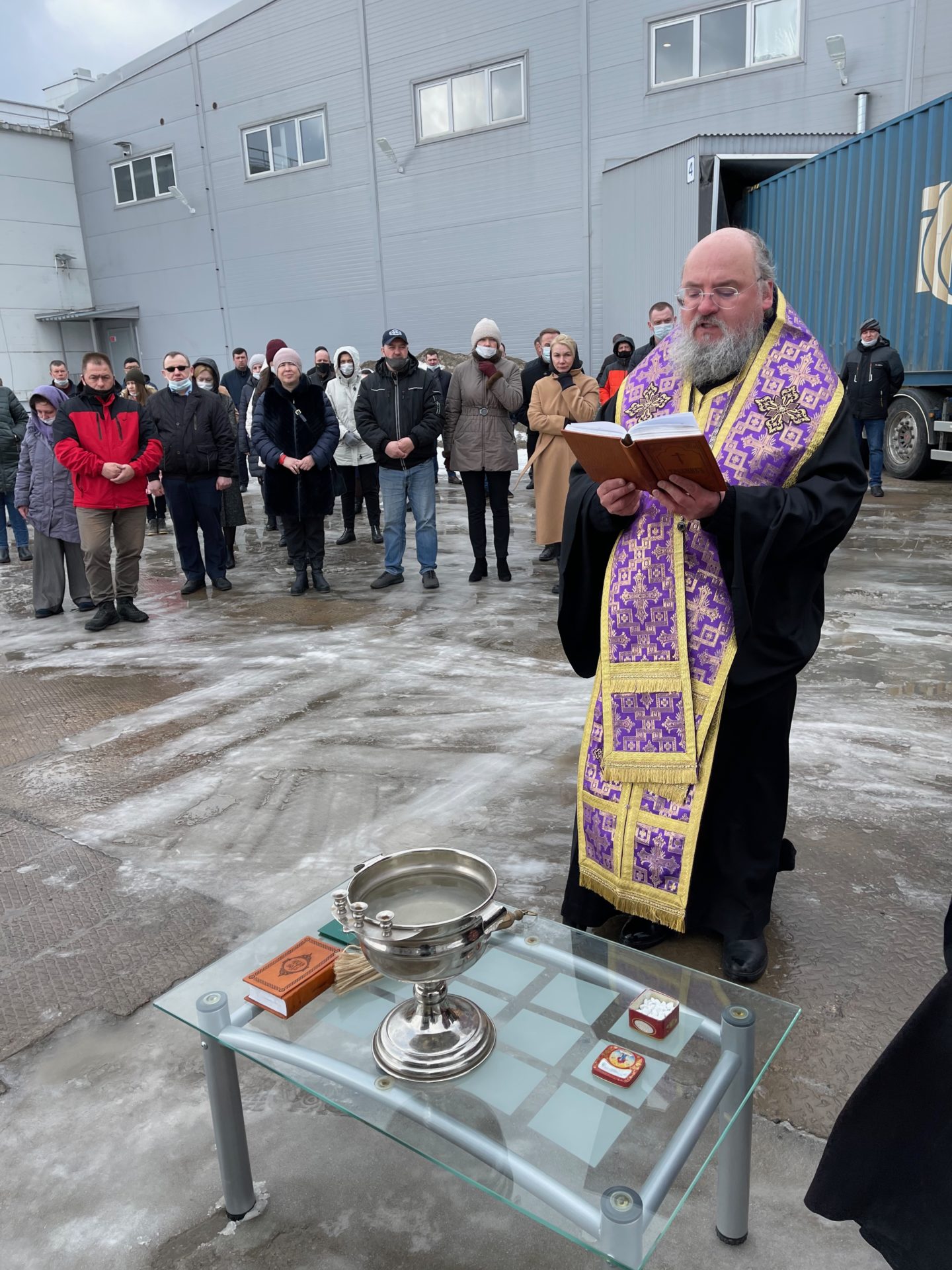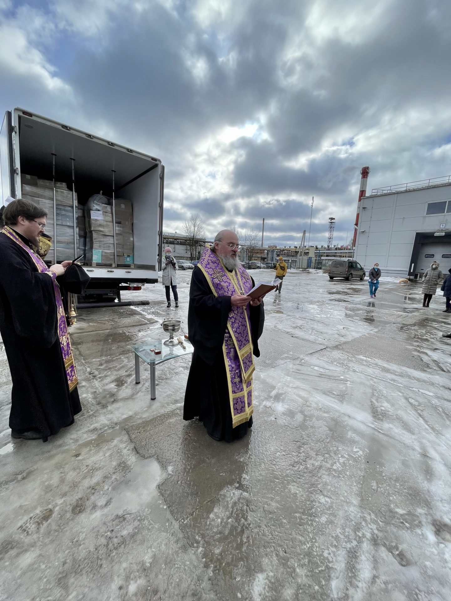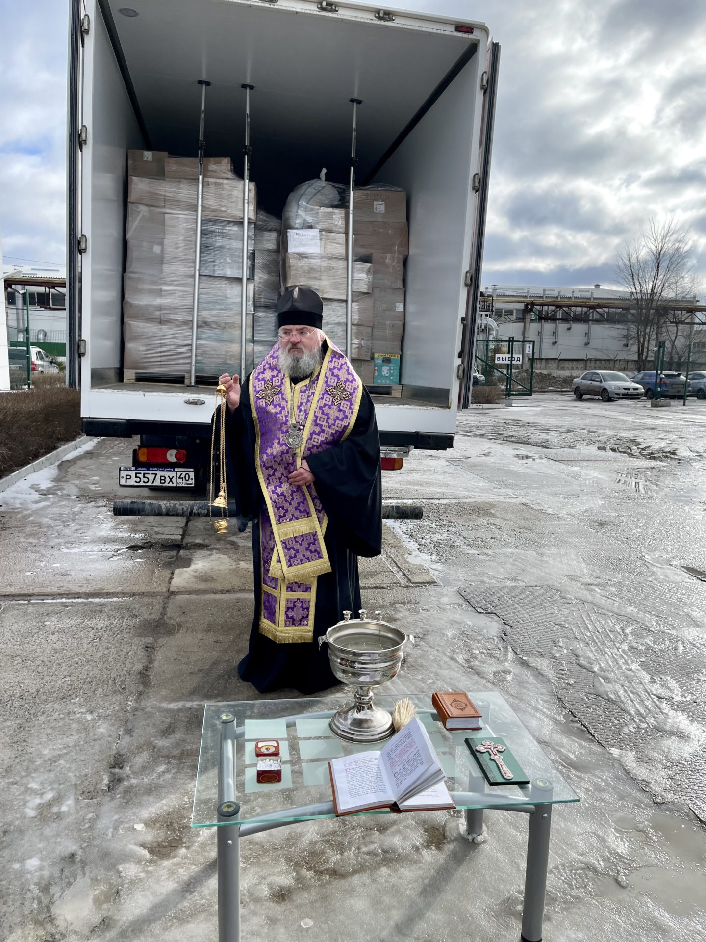 29 марта епископ Козельский и Людиновский Никита совершил молебное пение перед путешествием и благословил отправку машины.