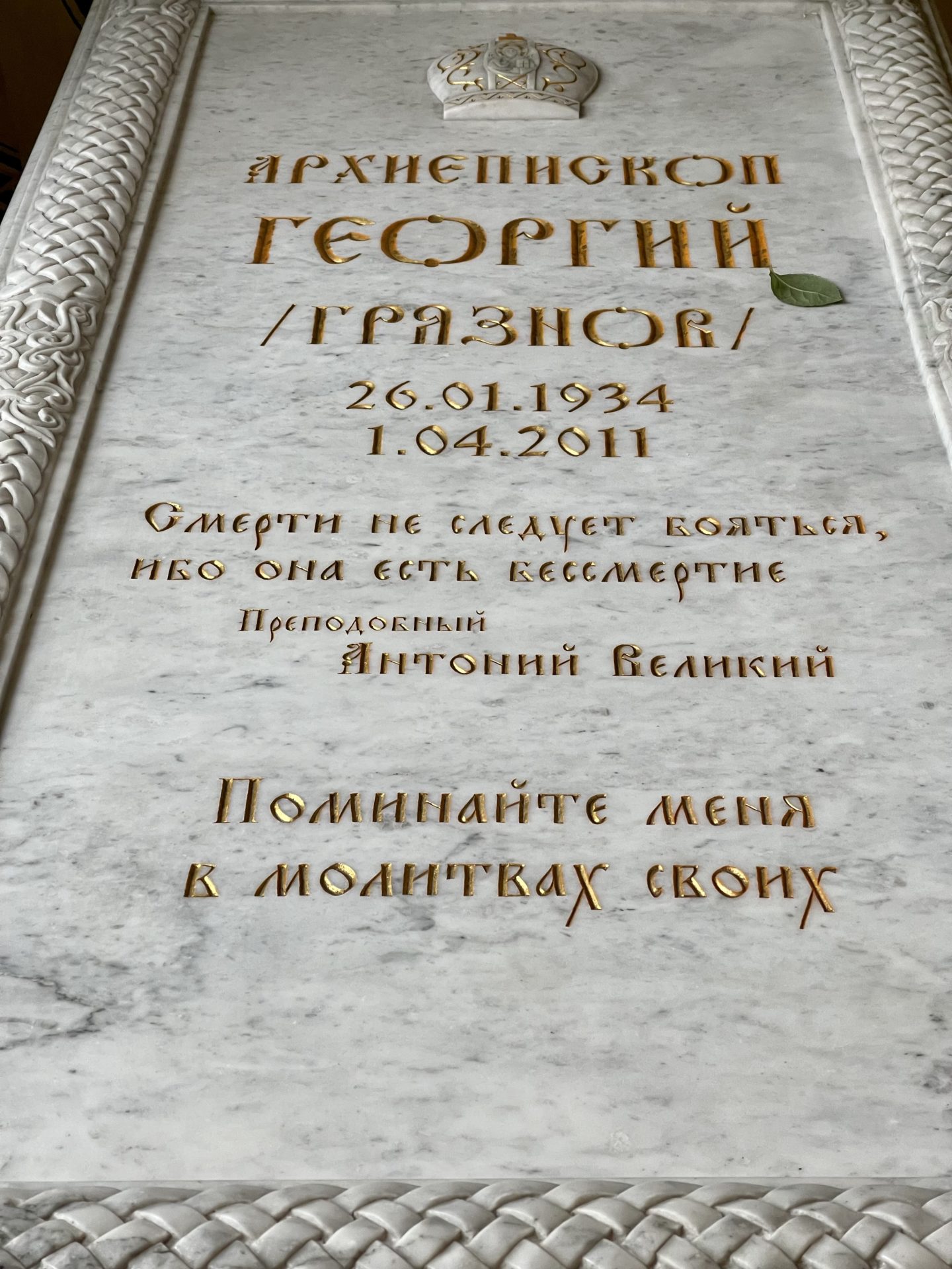 ***Усыпальница архиепископа Георгия (Грязнова) (26.04.1934 – 01.04.2011) находится в северном флигеле Никольского храма города Калуги.