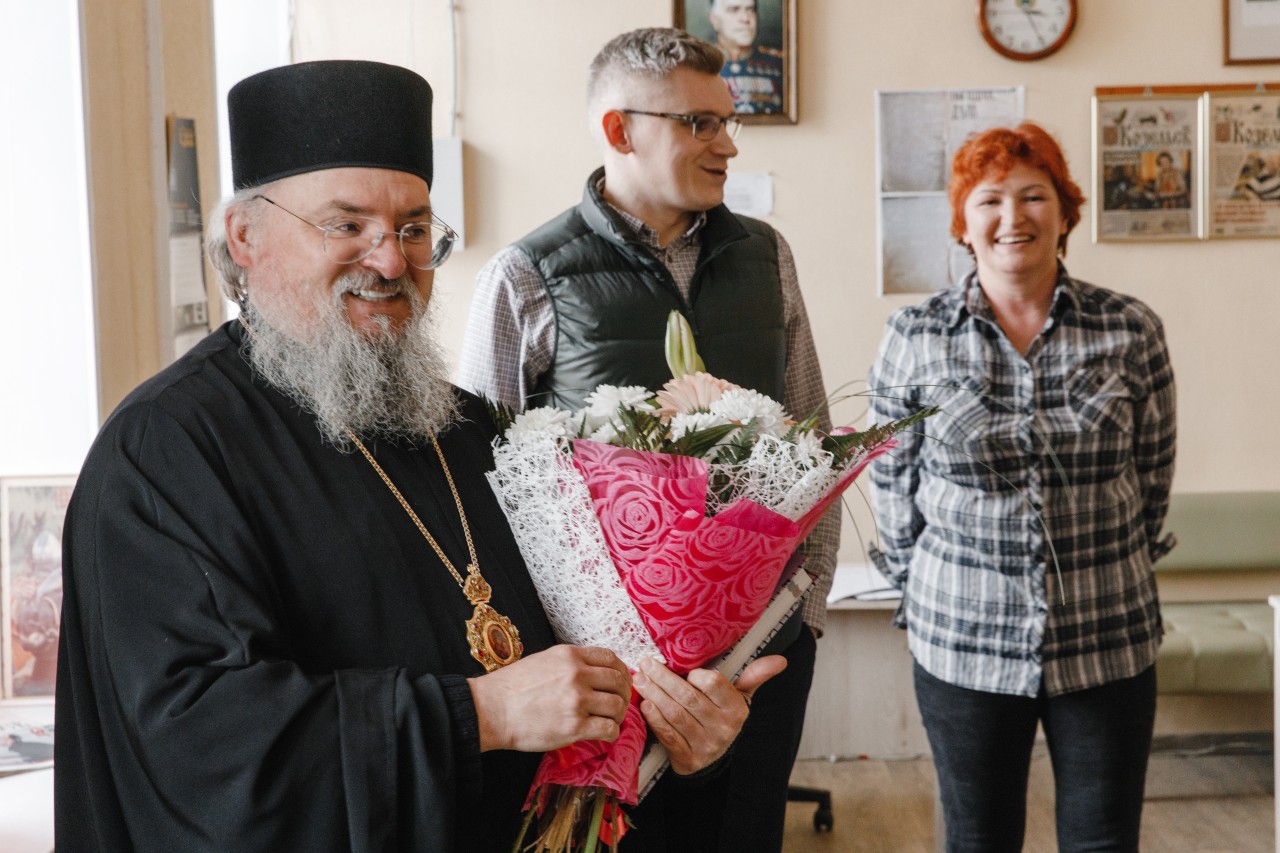 30 марта епископ Козельский и Людиновский Никита посетил районную газету «Козельск». Владыка поздравил главного редактора Васюнова Максима Александровича и коллектив газеты с юбилейной датой – 105 летием со дня основания, пожелал плодотворной работы во славу благословенного Козельского края и передал в библиотеку редакции подарочное издание книги о Москве.