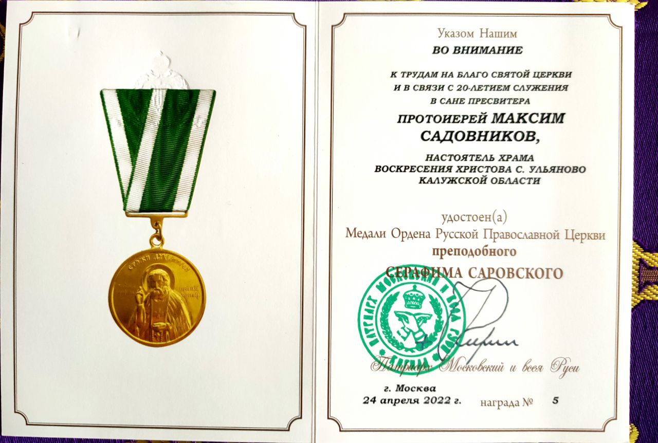4 апреля. 4-я Неделя Великого поста. Преподобного Иоанна Лествичника. Епископ Козельский и Людиновский совершил Божественную литургию в Воскресенском приходе села Ульяново. Его Преосвященству сослужили: благочинный округа, настоятель прихода – протоиерей Максим Садовников, протоиерей Антоний Хатунцев, диакон Евгений Ковригин и иеродиакон Лука (Старостин). После сугубой ектении епископ Никита коленопреклонно вознес молитву о восстановлении мира. По отпусте литургии владыка обратился к богомольцам с проповедью. Архипастырь поздравил настоятеля прихода протоиерея Максима Садовникова с двадцатилетием служения в сане пресвитера и вручил ему, по благословению Святейшего Патриарха Московского и всея Руси КИРИЛЛА, награду Русской Православной Церкви — медаль ордена преподобного Серафима Саровского.