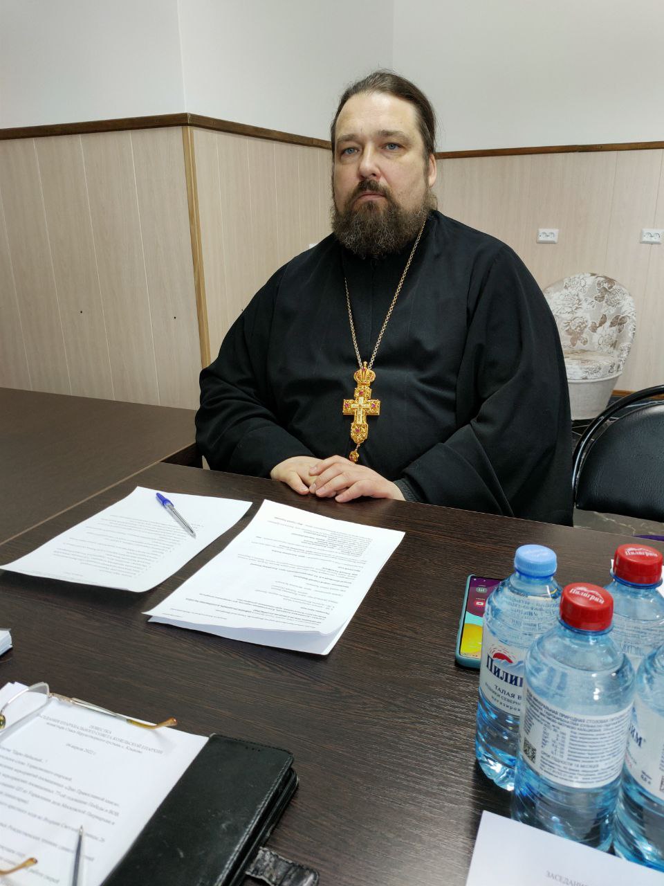 Сообщение по вопросам взаимодействия с епархиальным управлением сделал секретарь-референт Владимир Валерьевич Лужков.