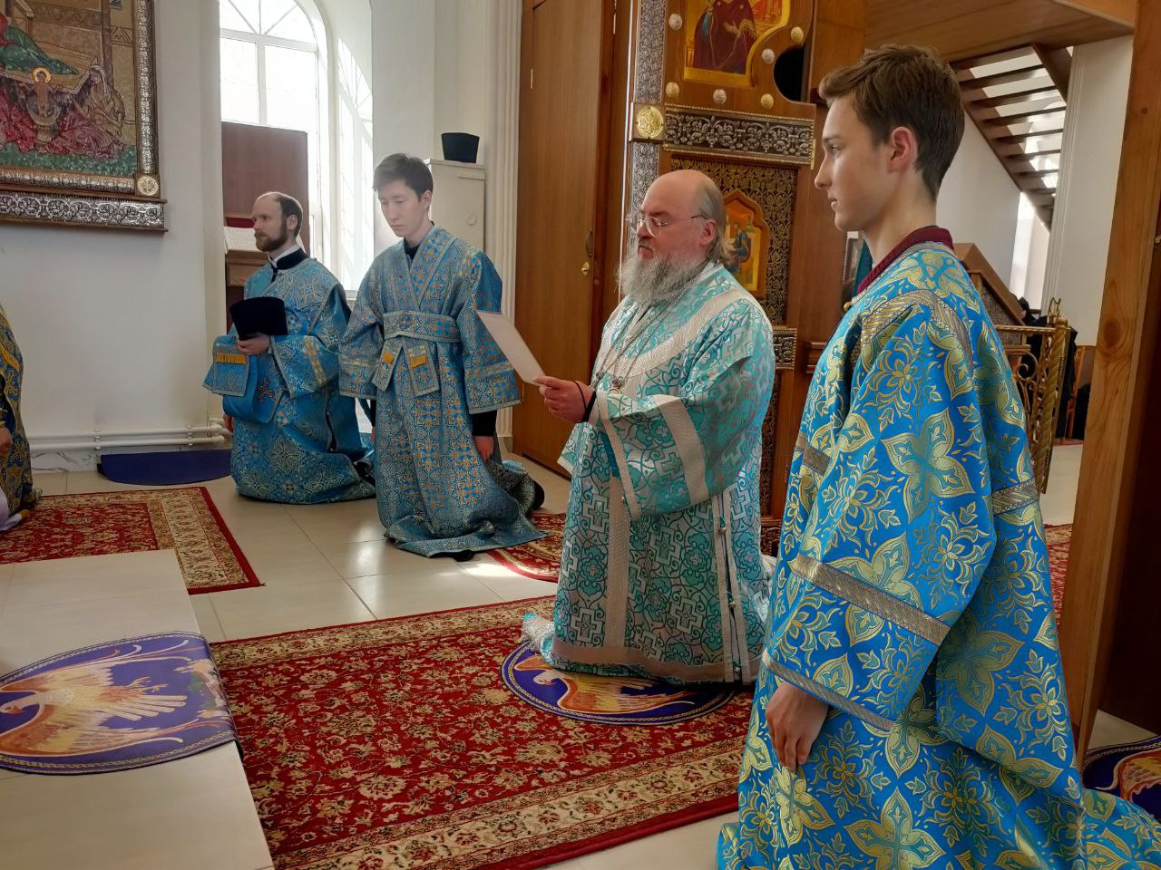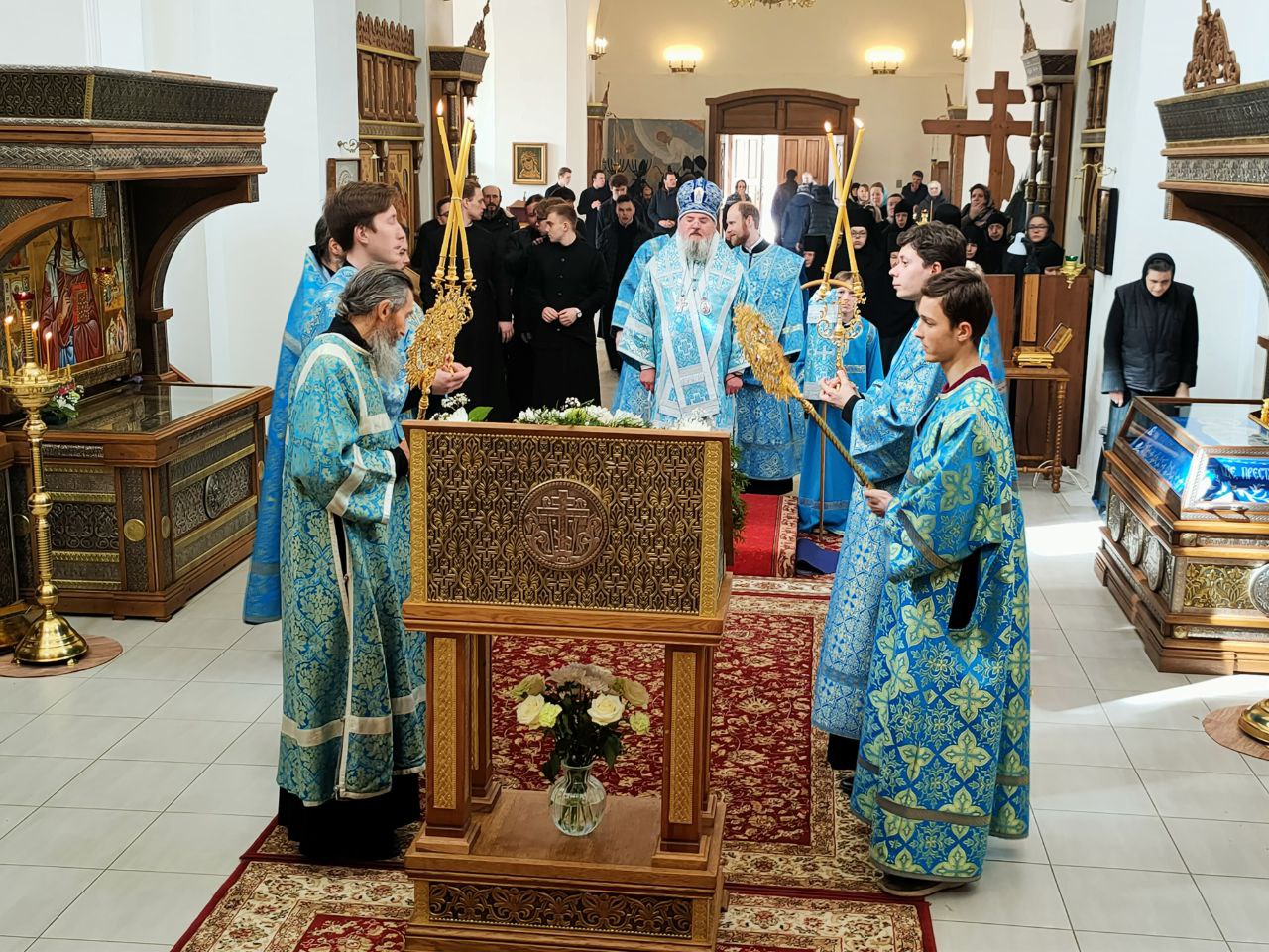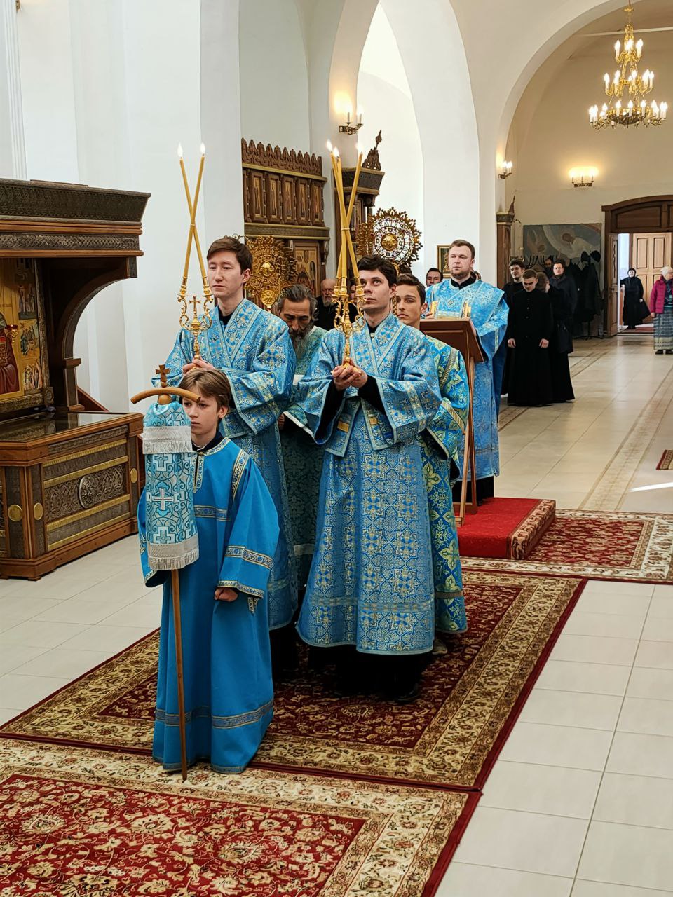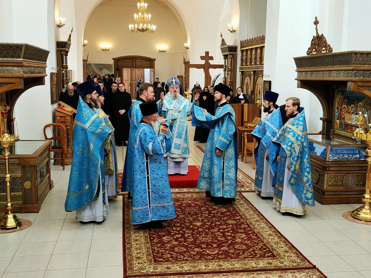 Архипастырю сослужили: протоиерей Антоний Хатунцев, иерей Антоний Лунин, иерей Алексий Боков, иерей Лев Шиповский, диакон Евгений Ковригин, иеродиакон Лука (Старостин) и иеродиакон Алексий (Гудименко).