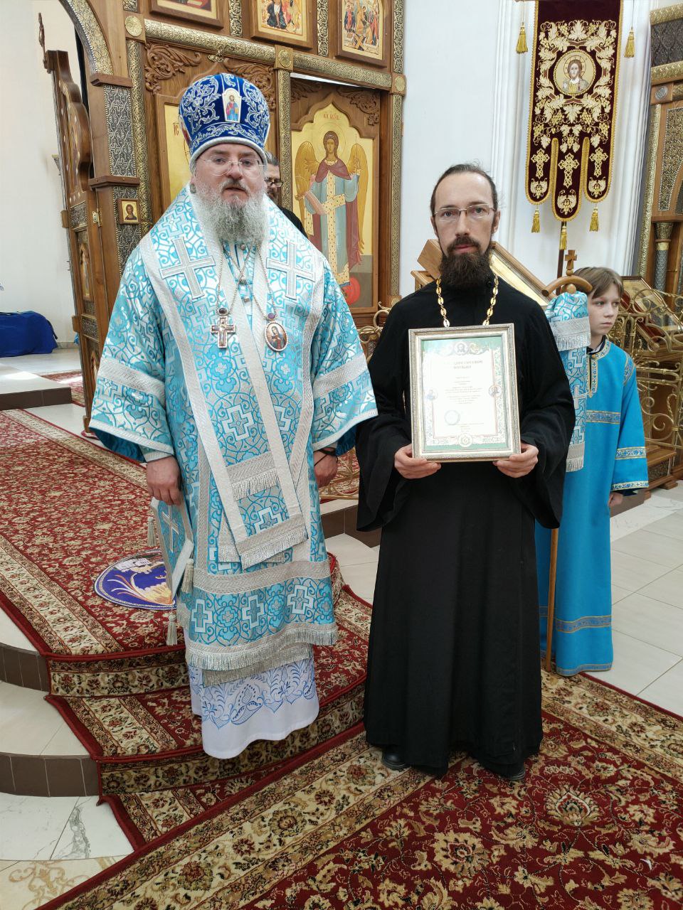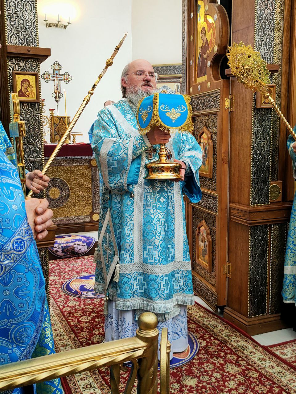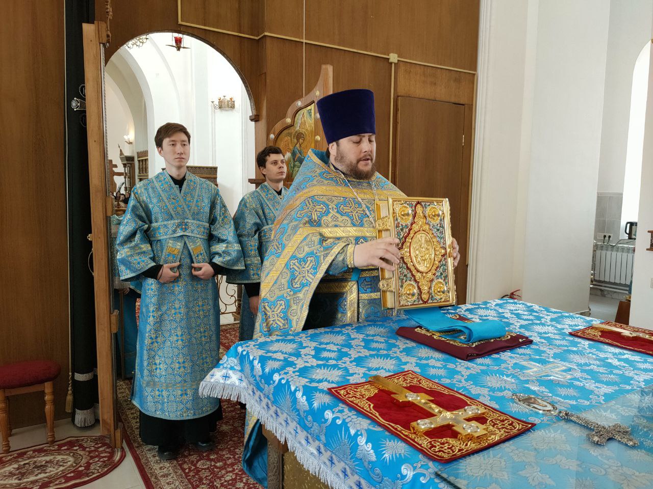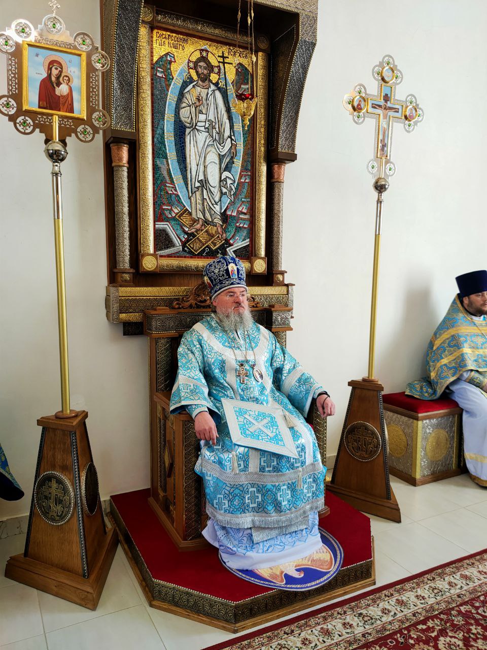 Архипастырю сослужили: протоиерей Антоний Хатунцев, иерей Антоний Лунин, иерей Алексий Боков, иерей Лев Шиповский, диакон Евгений Ковригин, иеродиакон Лука (Старостин) и иеродиакон Алексий (Гудименко).