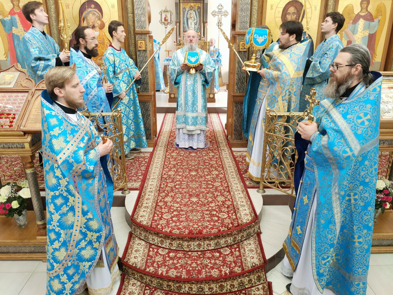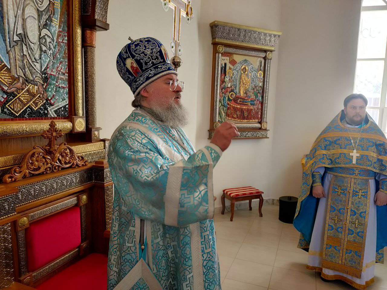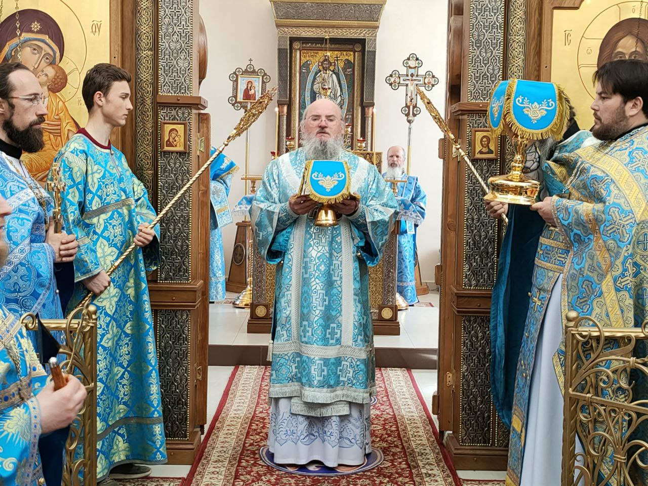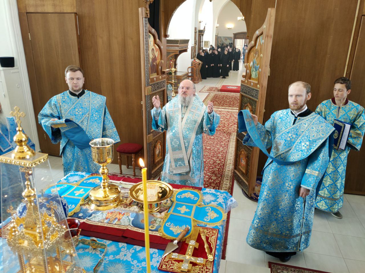9 апреля. Суббота Акафиста. Епископ Козельский и Людиновский Никита совершил Божественную литургию в Успенском соборном храме женского монастыря Успенская Феклина пустынь в селе Сенино Козельского района.
