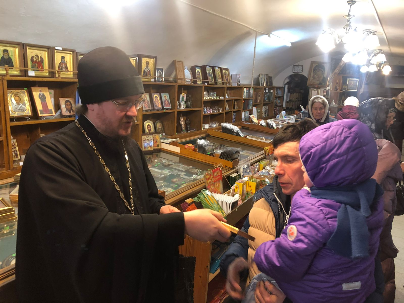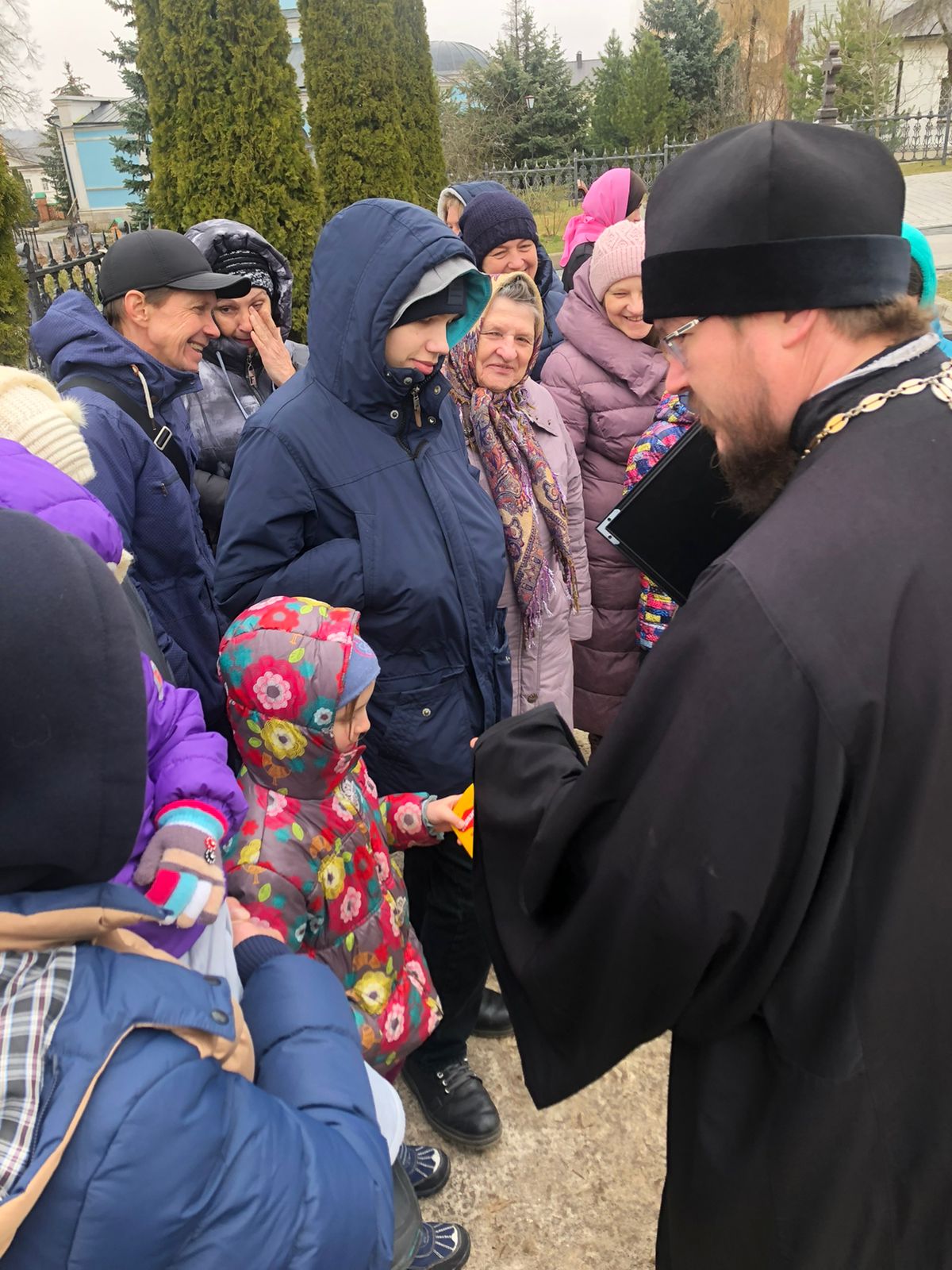 В завершении пребывания в стенах святой обители, всем участникам поездки были вручены памятные сувениры, самым маленьким из присутствующих паломников были подарены колокольчики в память о предстоящем празднике Светлого Христова Воскресения.