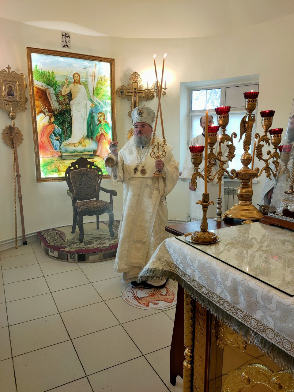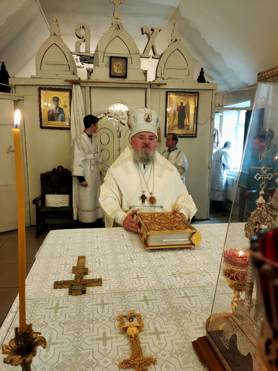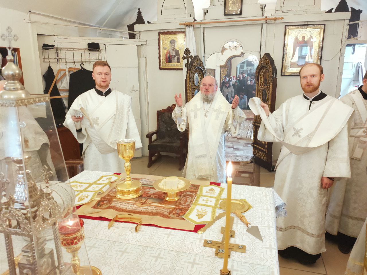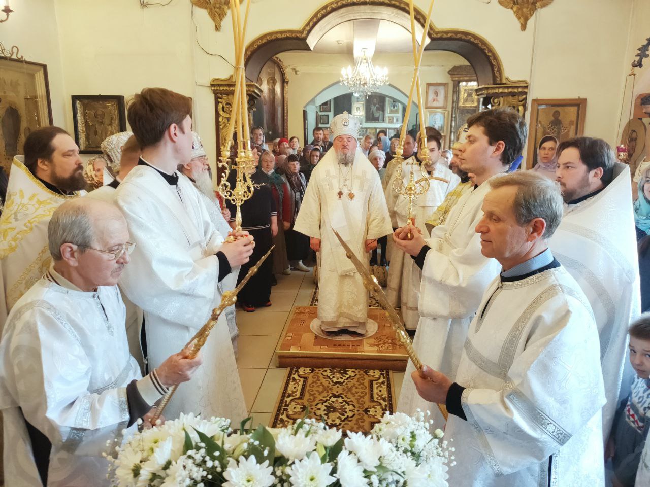 16 апреля. Лазарева суббота. Воскрешение праведного Лазаря. Епископ Козельский и Людиновский Никита совершил Божественную литургию в Лазаревском храме города Людиново. Его Преосвященству сослужили: протоиерей Алексий Жиганов – благочинный округа, духовник епархии; протоиерей Константин Гипп, архимандрит Георгий (Евдачев), протоиерей Михаил Карпенко – настоятель храма, протоиерей Антоний Хатунцев, иерей Георгий Краснов, иерей Николай Безручкин, диакон Евгений Ковригин и иеродиакон Лука (Старостин). После сугубой ектении владыка коленопреклонно вознес молитву о восстановлении мира. По отпусте литургии священнослужители совершили славление праведному Лазарю Четверодневному, в завершении которого, вознеся молитву угоднику Божию, владыка обратился к богомольцам с проповедью.