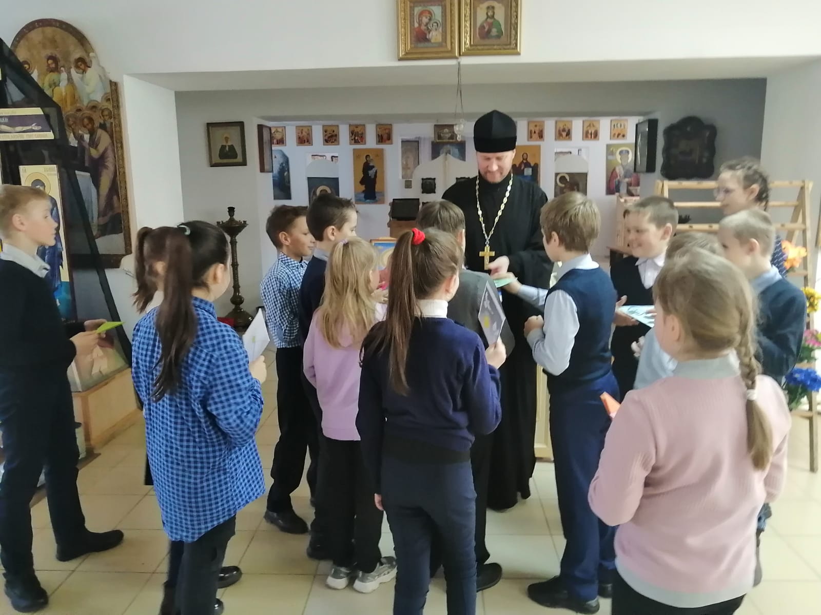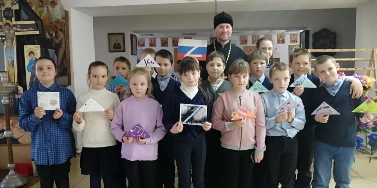 По всей стране проходит акция «Письмо солдату». Ученики 4 А класса общеобразовательной школы в селе Хвастовичи, изучающие «Основы православной культуры», стали её участниками. Они написали письма со словами поддержки воинам-участникам спецоперации по демилитаризации и денацификации Украины. Свои письма ребята передали благочинному 4-го округа Козельской епархии, настоятелю храма в честь Успения Пресвятой Богородицы в селе Хвастовичи протоиерею Александру Карпову, который поблагодарил ребят за неравнодушие и вручил каждому ребёнку Святое Евангелие и православную литературу.