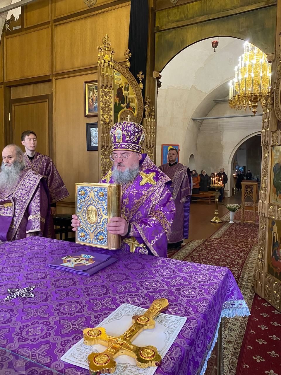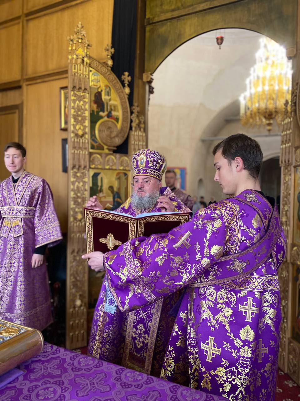 21 апреля в Четверг Страстной Седмицы епископ Козельский и Людиновский Никита совершил вечерню с литургией святителя Василия Великого в Успенском кафедральном соборе города Козельска. Архипастырю сослужили: настоятель собора иеромонах Паисий (Курмаз), иерей Елисей Тимофеев, иерей Евгений Чуркин, диакон Евгений Ковригин, диакон Димитрий Лутков и иеродиакон Виталий (Павленко). После сугубой ектении владыка вознес молитву о восстановлении мира.