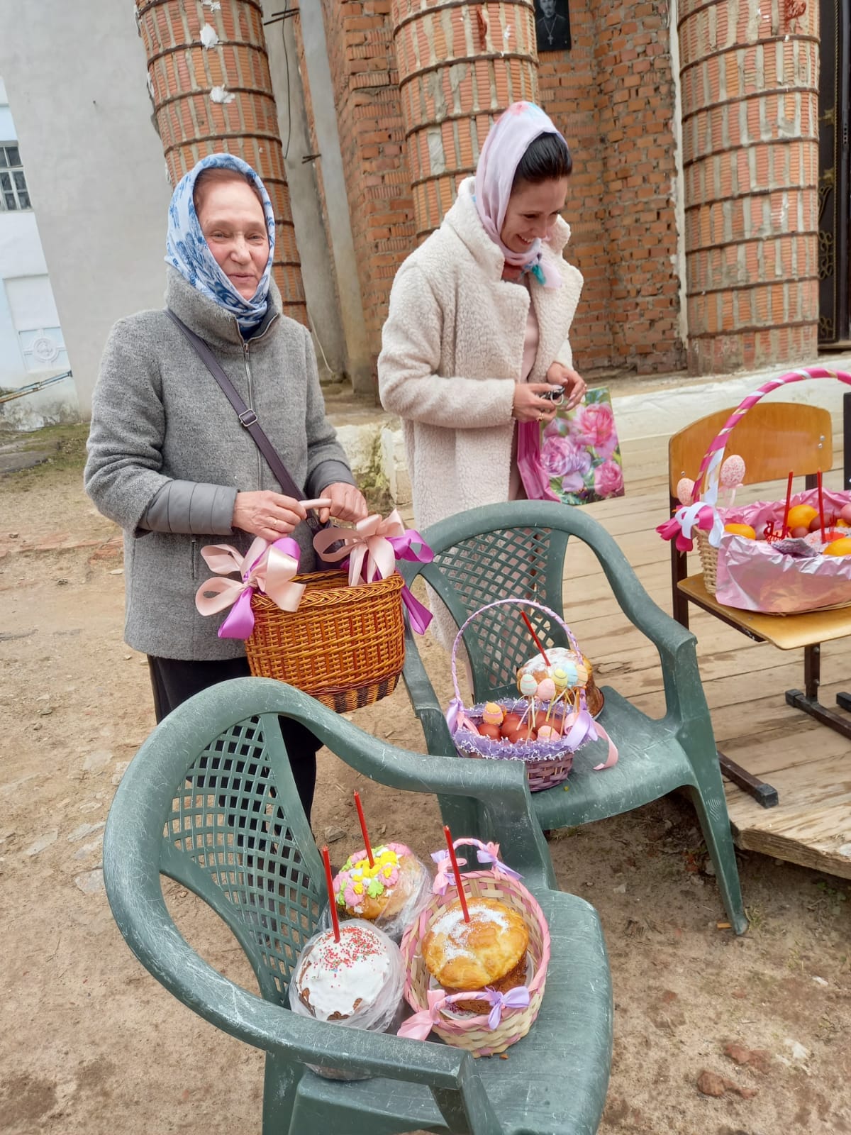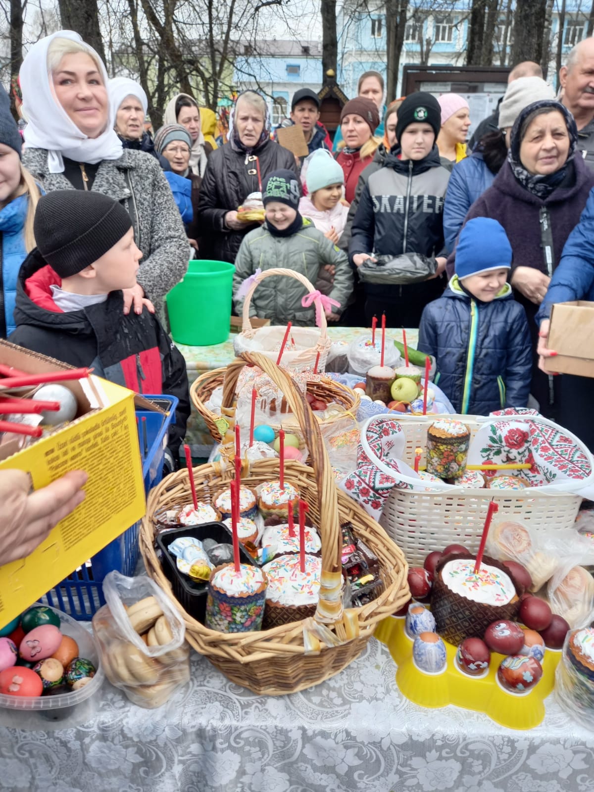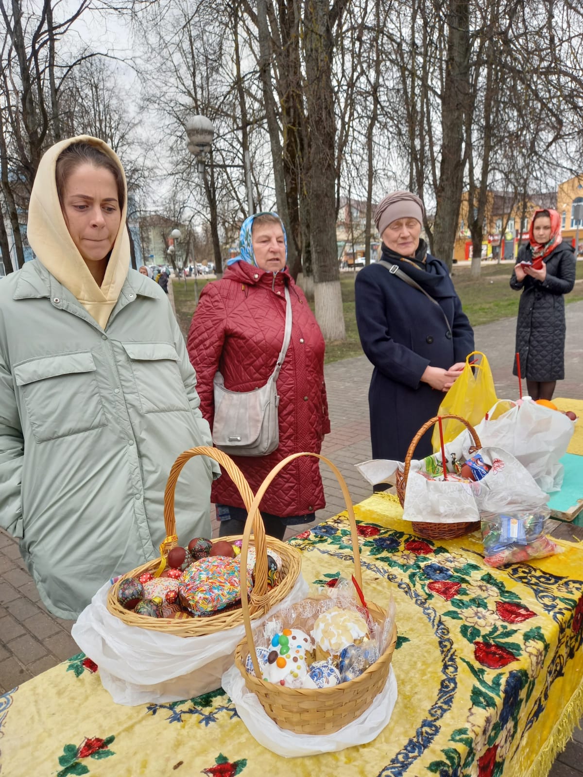 23 апреля 2022 года в Великую Субботу, после богослужений, в ограде Казанского собора города Людиново настоятель храма протоиерей Алексий Жиганов и клирик иерей Алексий Сначёв в течение дня совершали освящение куличей и пасхальных яиц.