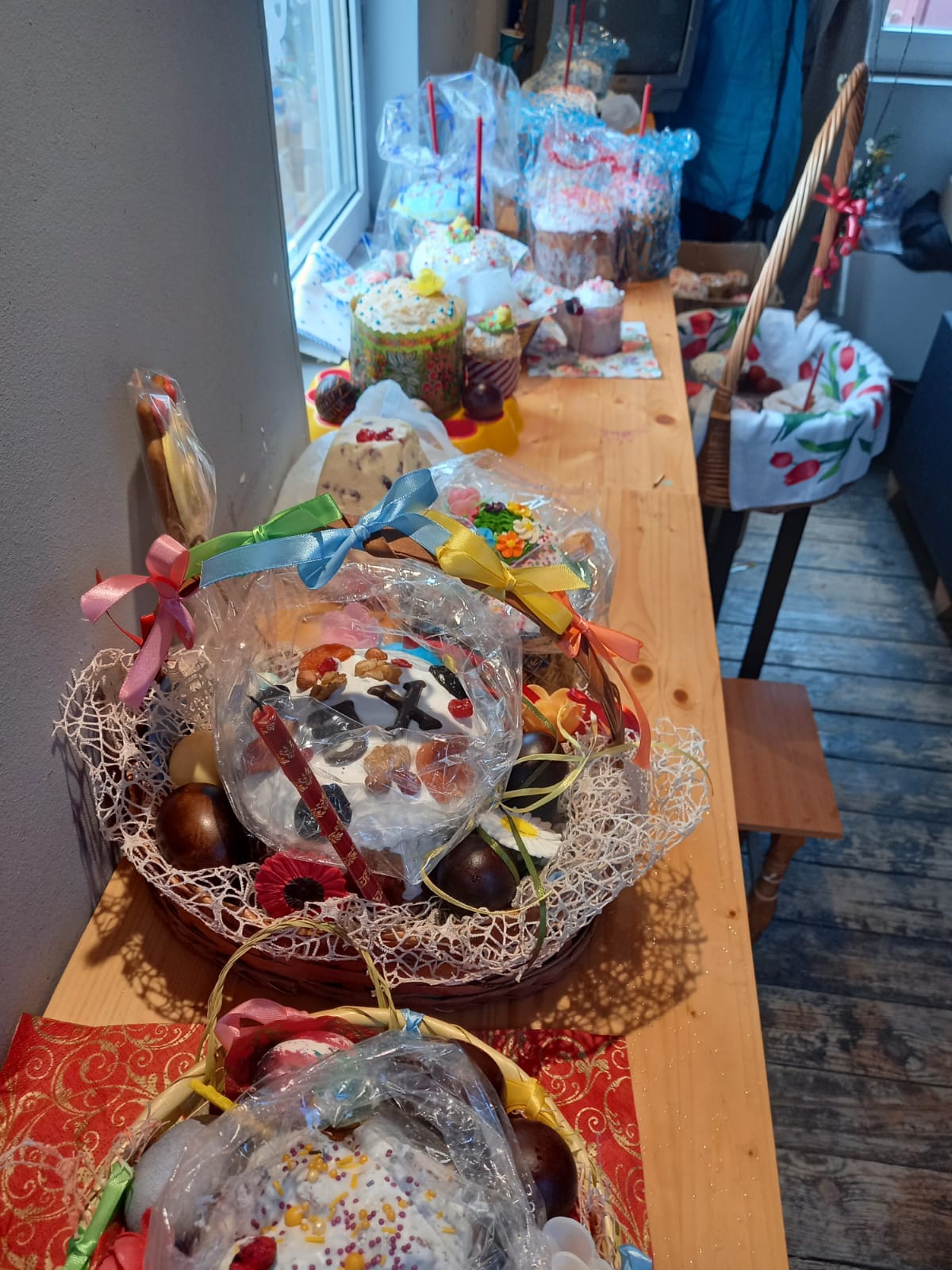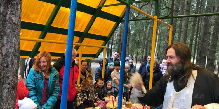 В этот же в санатории «Спутник» настоятель храма в честь святого благоверного князя Александра Невского поселка Заречный Людиновского района иерей Георгий Краснов (ответственный за работу с беженцами) освятил Пасхальные угощения для вынужденных переселенцев из Украины.