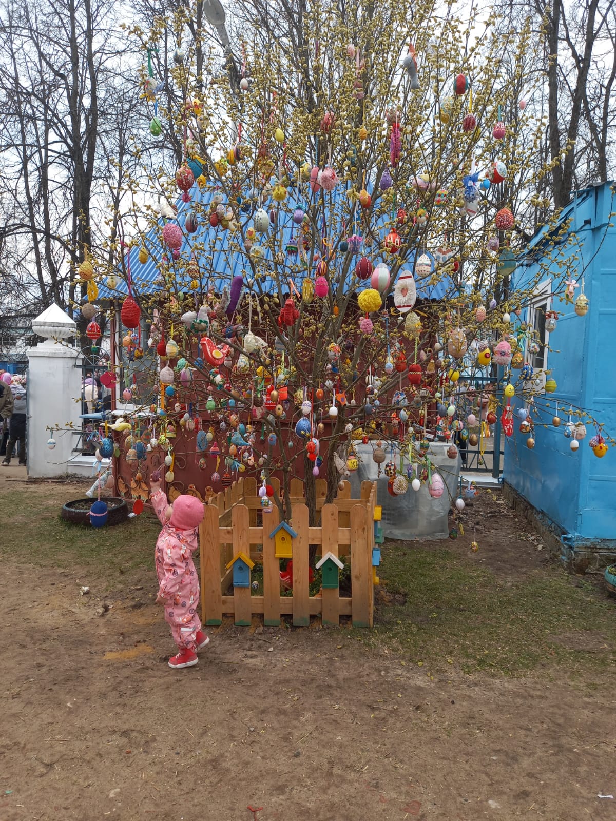 ПАСХАЛЬНОЕ ДЕРЕВО В ОГРАДЕ КАЗАНСКОГО СОБОРА ГОРОДА ЛЮДИНОВО