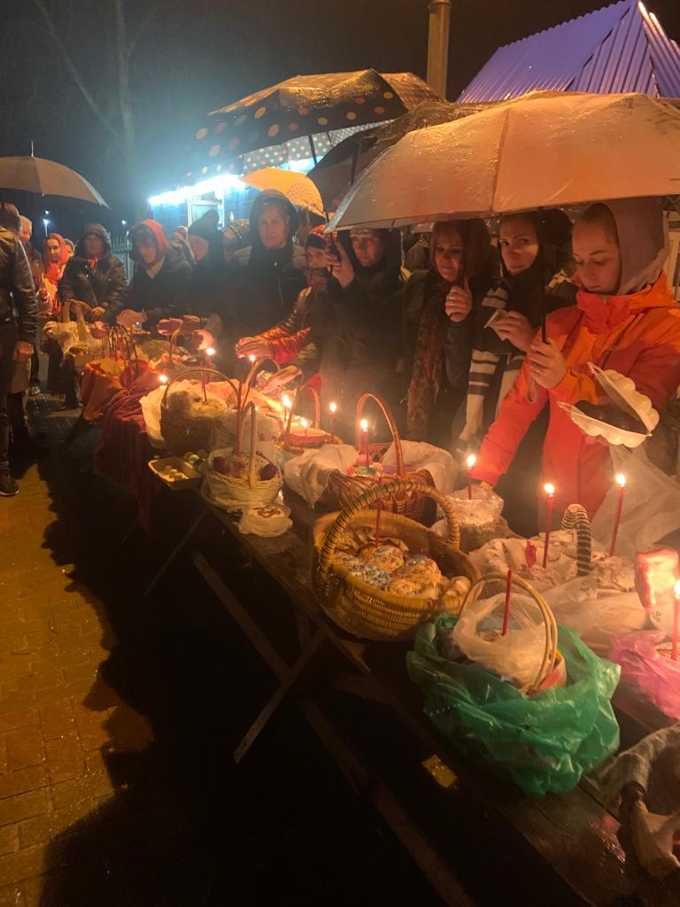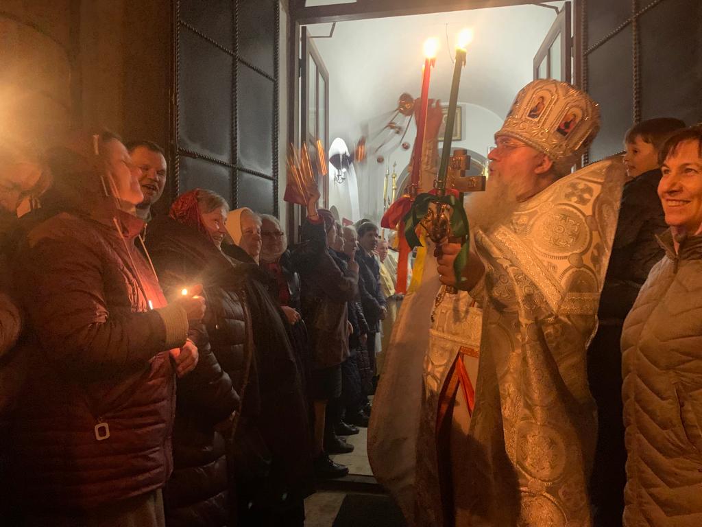 «Христос Воскресе! Воистину Воскресе Христос!» 24 апреля 2022 года в Казанском кафедральном соборе города Людиново прошло Пасхальное ночное богослужение. Возглавил праздничную службу настоятель собора протоиерей Алексий Жиганов в сослужении клириков храма иерея Алексия Сначёва и диакона Андрея Соколова. Верующие в преддверии праздника начали собираться в храм заранее. За полчаса до двенадцати часов ночи началась полунощница: было совершено каждение перед Плащаницей, затем Плащаницу перенесли в алтарь, возложив на Святой Престол, где она будет находиться до Отдания Пасхи. Ровно в полночь начался Крестный ход. Под колокольный звон и пение «Воскресение Твое, Христе Спасе…» священники и верующие со свечами обошли храм, настоятель собора возгласил первое «Христос Воскресе!» и началось Пасхальное Богослужение. В утешение всех прихожан и верующих Казанского собора, пришедших в эту ночь прославить Христа, уже по сложившейся традиции, священники с радостными возгласами «Христос Воскресе!» бросали легкие (из пенопласта) разноцветные пасхальные яйца, а прихожане, получив долгожданный подарок, отвечали с радостью: «Воистину Воскресе!». Взрослые люди искренне радовались, принимая неожиданный и удивительный подарок, как бы из рук Самого Христа. В Пасхальную ночь были оглашены праздничные Послания, звучали Пасхальные песнопения и поздравления, освящались Пасхальным чином куличи и пасхи. С искренней радостью приветствовали друг друга люди «Христос Воскресе! Воистину Воскресе Христос!»