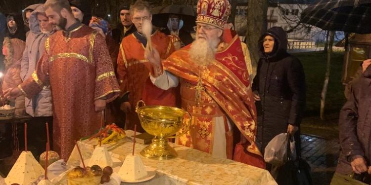 Пасхальное богослужение в Казанском соборе города Людиново