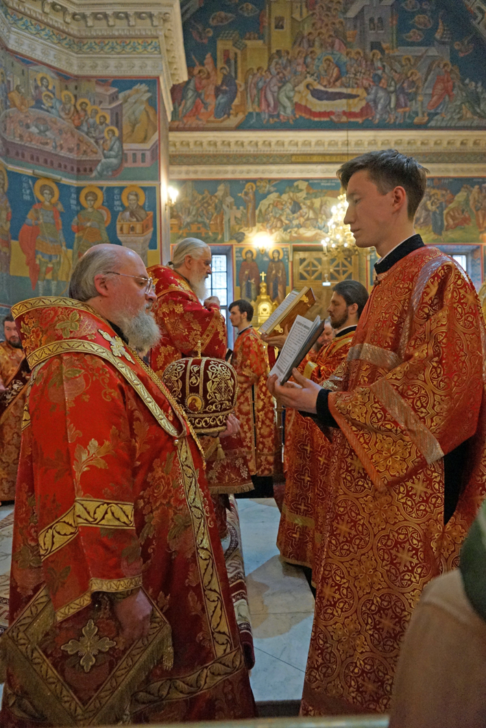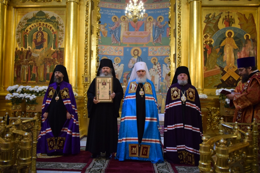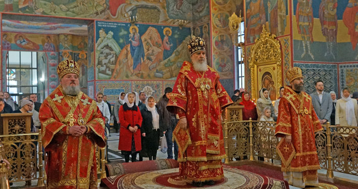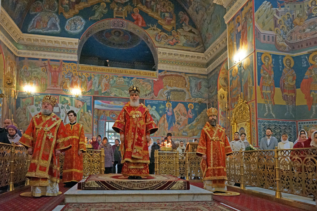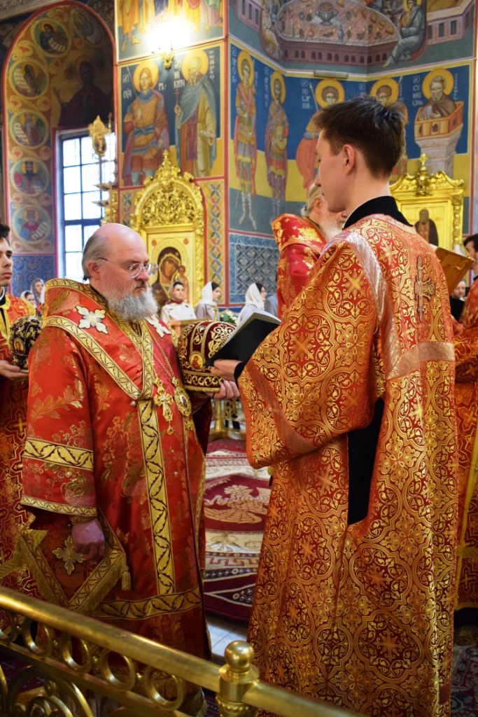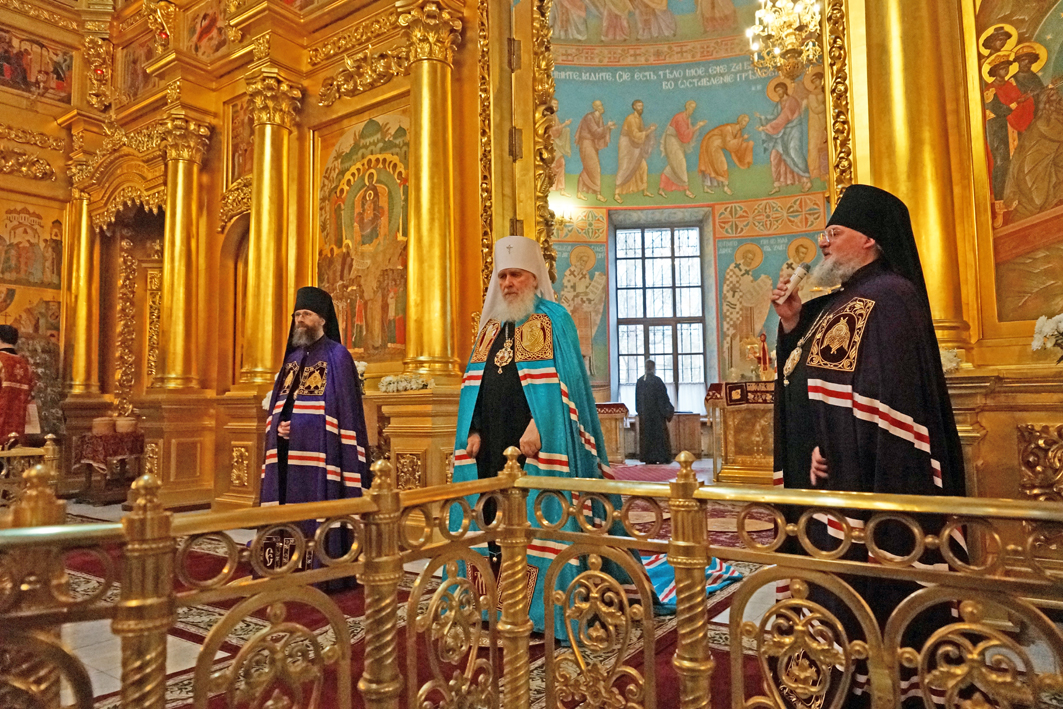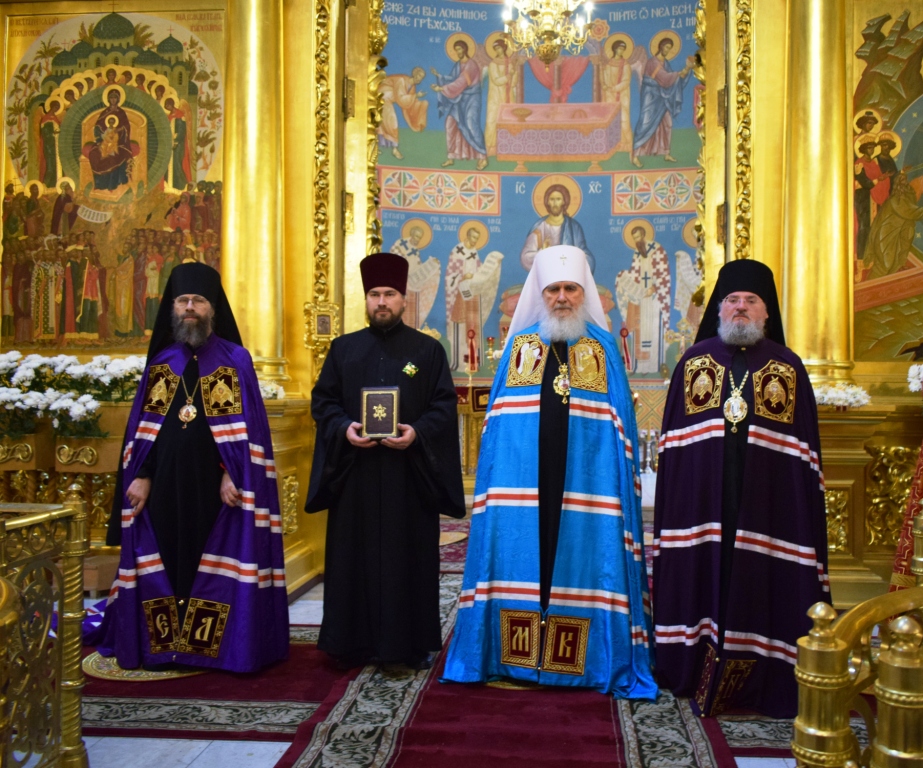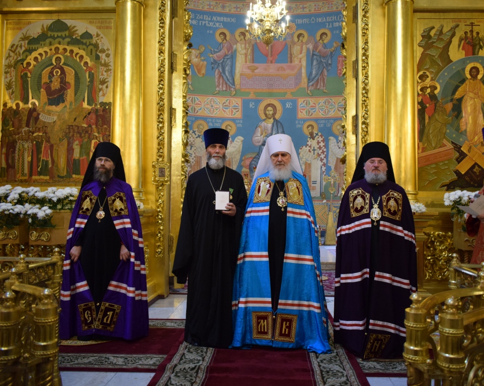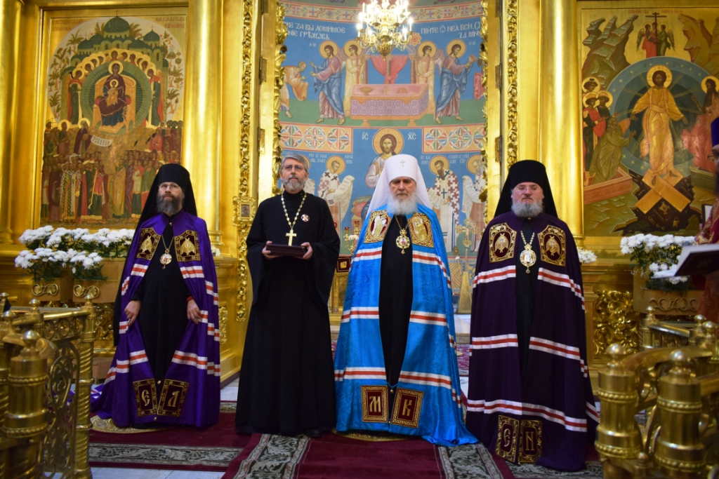За богослужением Митрополит Климент возложил ряд богослужебно-иерархических и общецерковных наград к празднику Святой Пасхи.
