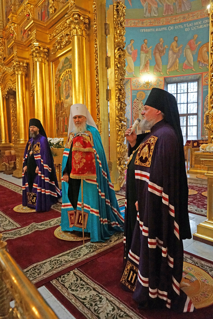 За богослужением молились настоятельница Казанского девичьего монастыря (Калуга) игуменья Анастасия (Мордмиллович) с сестрами, настоятельница женского монастыря в честь Калужской иконы Божией Матери игуменья Параскева (Ляхова) с сестрами, настоятельница Свято-Успенского Лихвинского женского монастыря игуменья Михаила (Осипова) с сестрами и многочисленные прихожане.