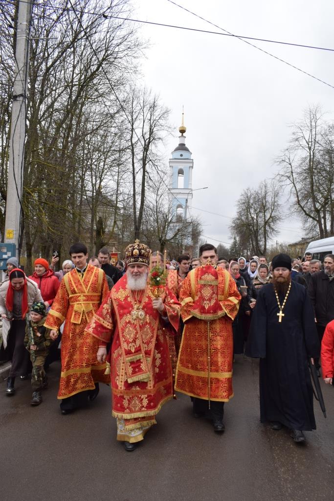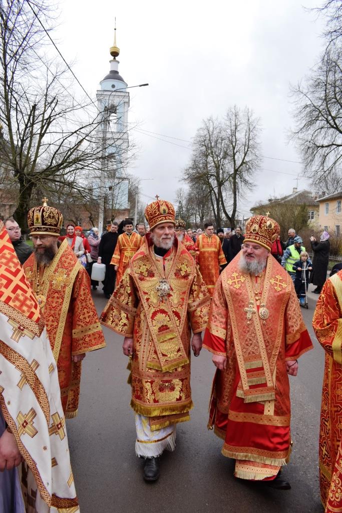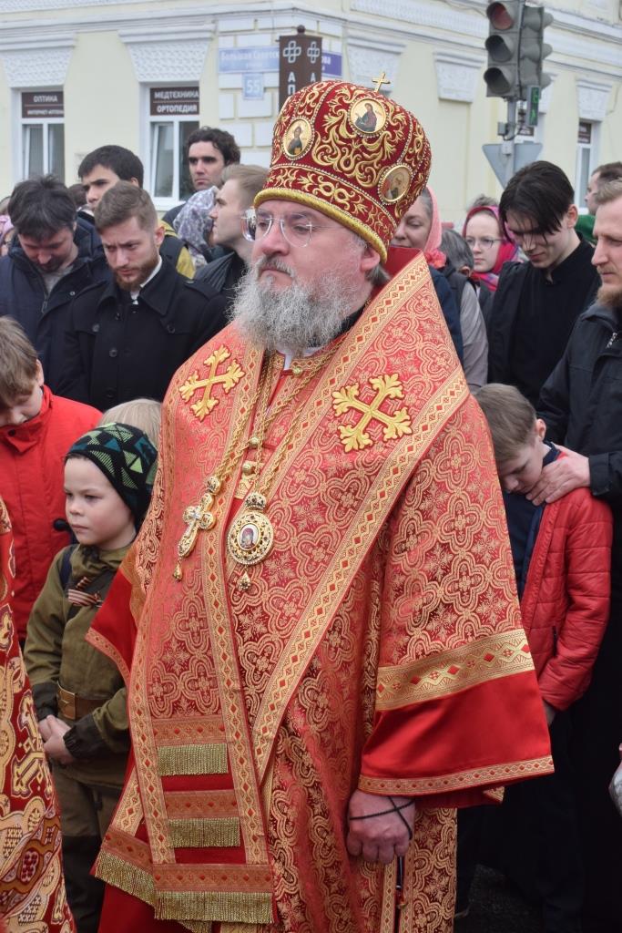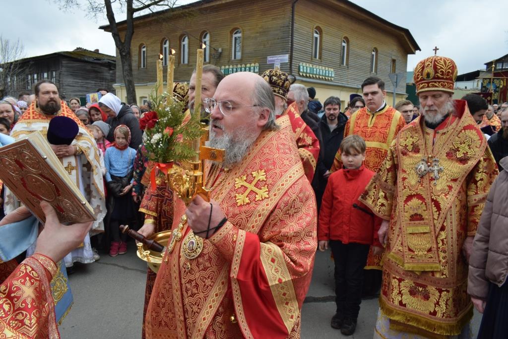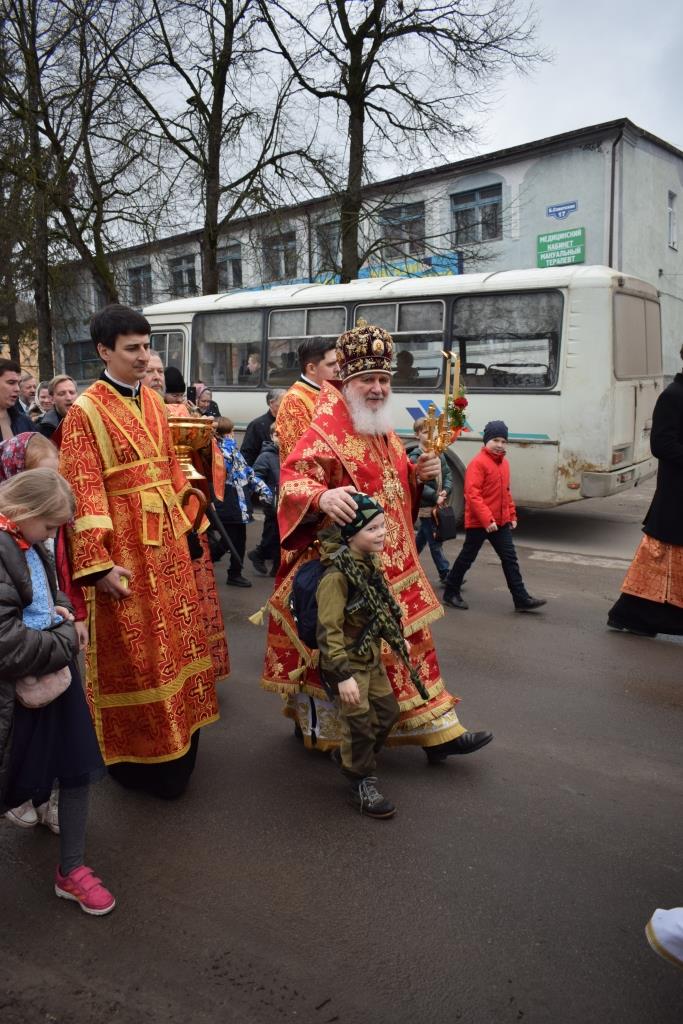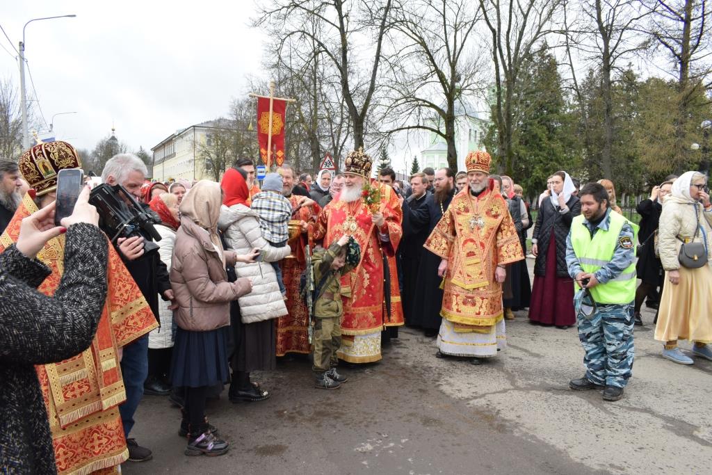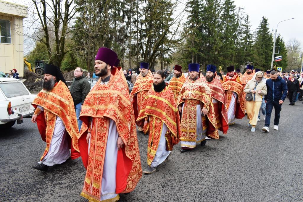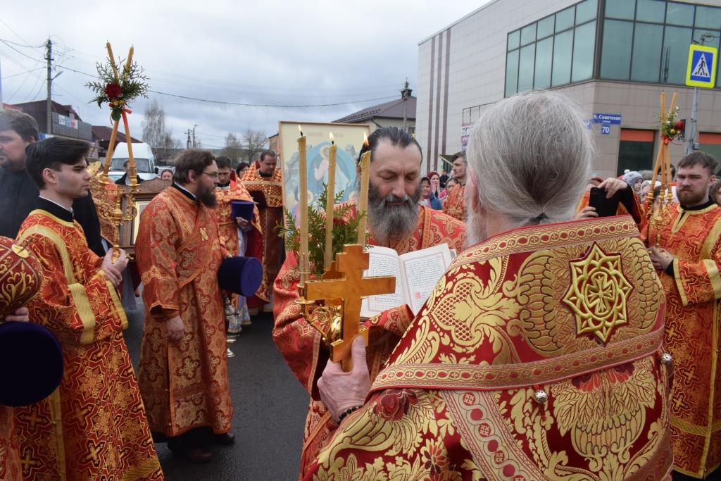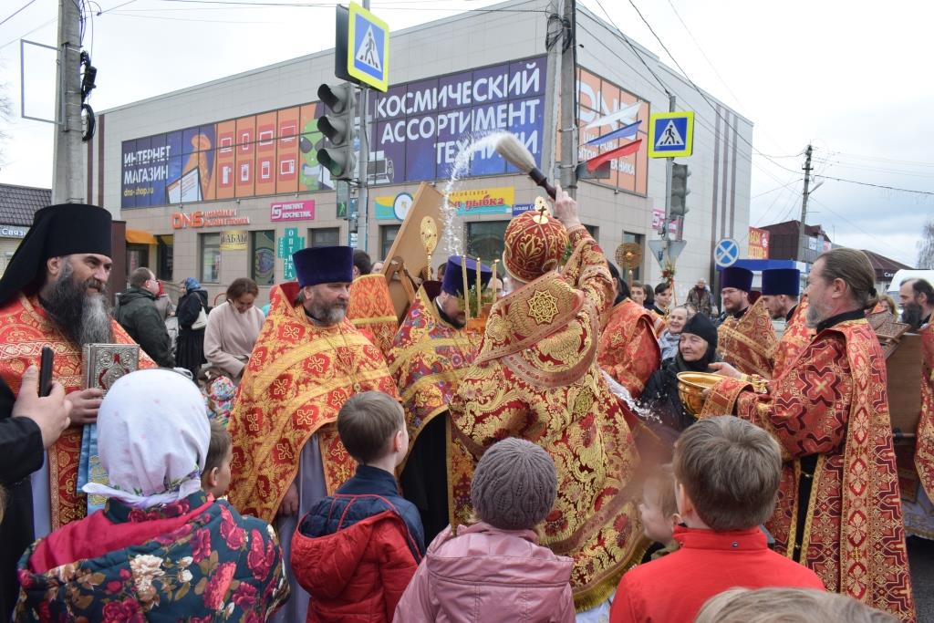 26 апреля 2022 года, вторник Светлой седмицы, митрополит Калужский и Боровский Климент, архиепископ Посоченский и Юхновский Максимилиан, епископ Козельский и Людиновский Никита и епископ Тарусский Леонид возглавили праздничную пасхальную Литургию и шествие традиционного Крестного хода в Козельске. Архипастырям сослужили духовенство Калужской, Козельской и Песоченской епархий. Диаконский чин возглавил протодиакон Алексей Хамтеев. На малом входе епископ Никита возложил ряд богослужебно-иерархических наград клирикам Козельской епархии к празднику Святой Пасхи. По благословению Святейшего Патриарха Кирилла правом ношения наперстного креста с украшениями были удостоены: настоятель Лазаревского храма города Людиново протоиерей Михаил Карпенко и настоятель Успенского храма села Хвастовичи, благочинный Хвастовичского округа протоиерей Александр Карпов, а права ношения палицы – клирик Благовещенского храма города Козельска протоиерей Антоний Хатунцев и настоятель Козельского Богоявленского храма иерей Дионисий Куваев. Богослужебные песнопения исполнили архиерейский хор Свято-Успенского кафедрального собора города Козельска и хор духовенства Козельской епархии. Далее началось шествие традиционного Крестного хода по улицам города Козельска от Успенского собора до храма Благовещения Пресвятой Богородицы.