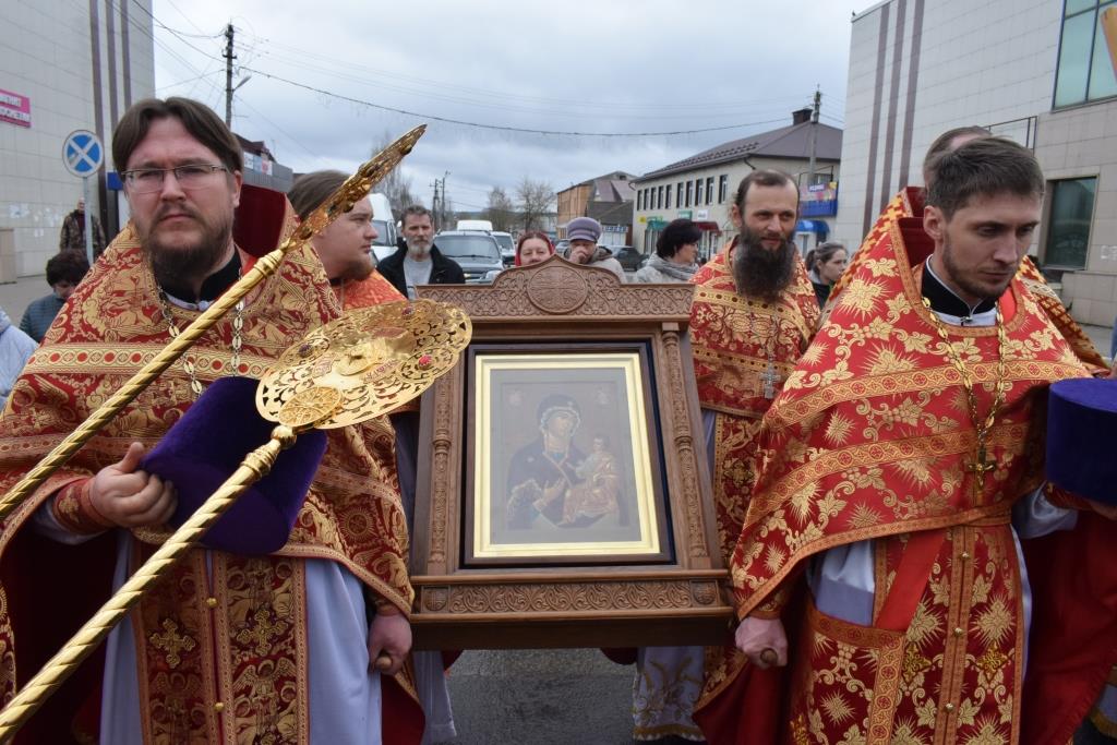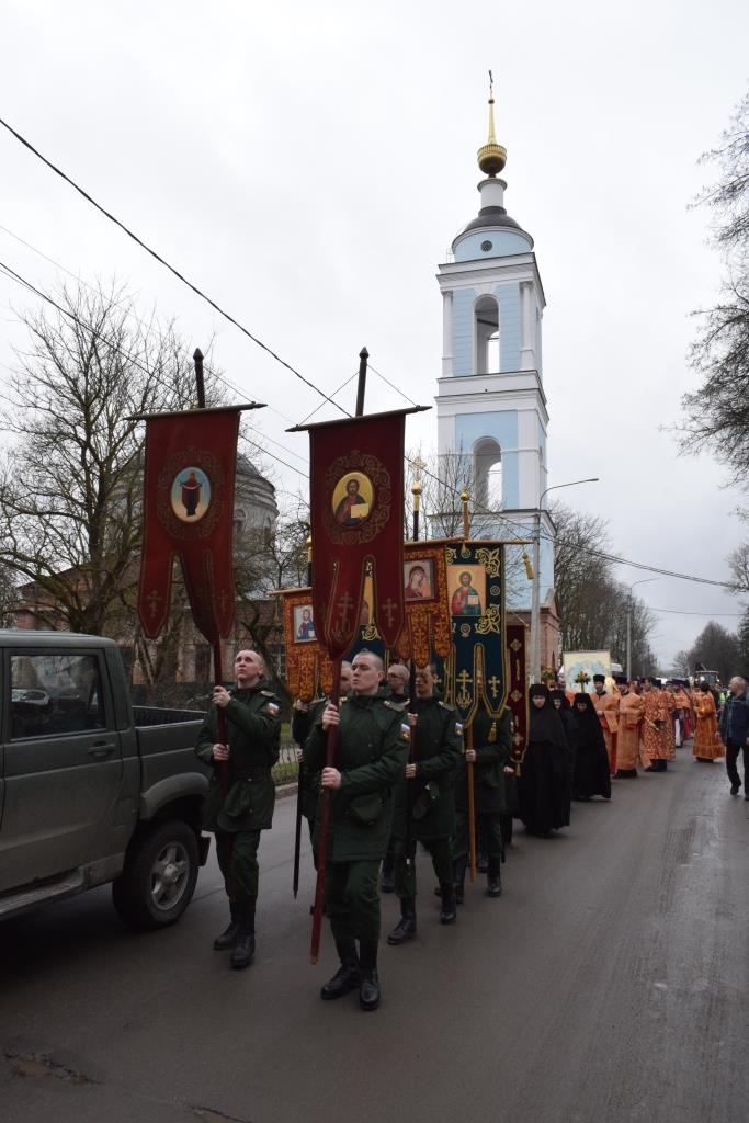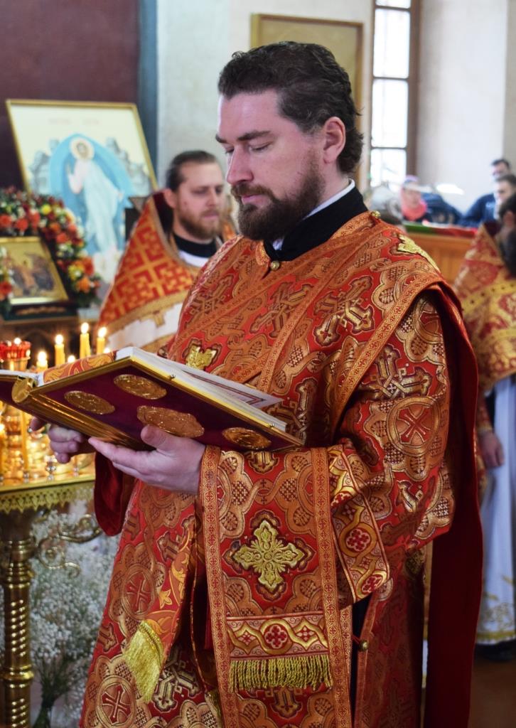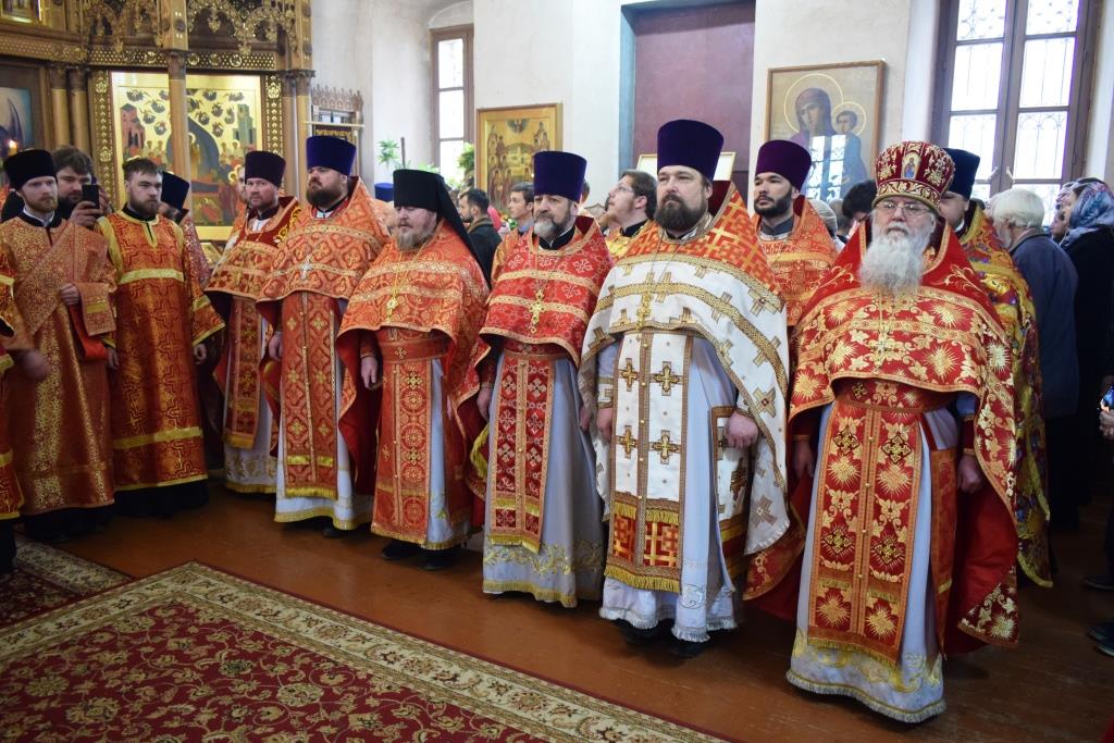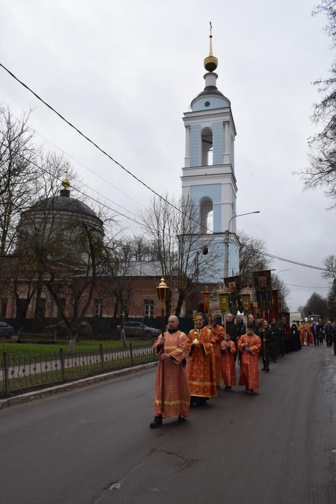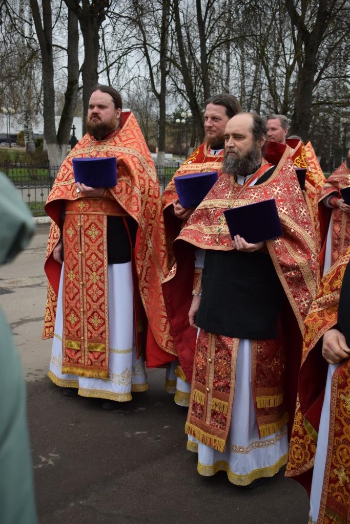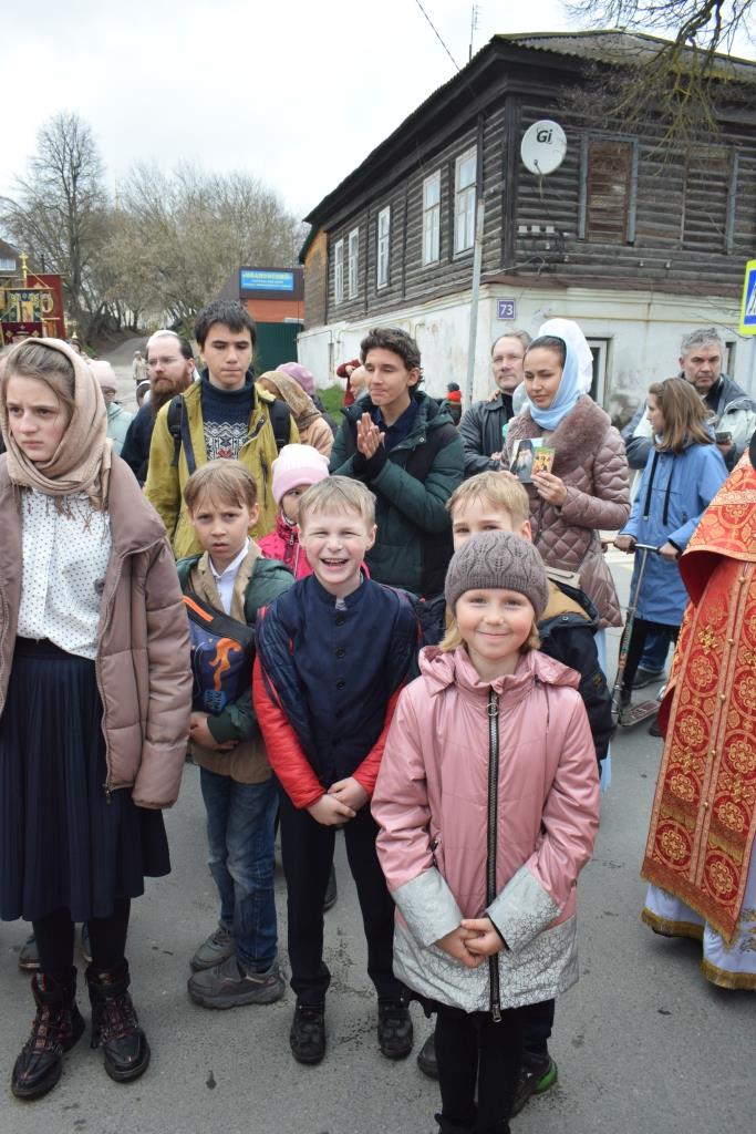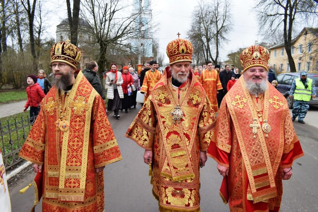26 апреля 2022 года, вторник Светлой седмицы, митрополит Калужский и Боровский Климент, архиепископ Посоченский и Юхновский Максимилиан, епископ Козельский и Людиновский Никита и епископ Тарусский Леонид возглавили праздничную пасхальную Литургию и шествие традиционного Крестного хода в Козельске. Архипастырям сослужили духовенство Калужской, Козельской и Песоченской епархий. Диаконский чин возглавил протодиакон Алексей Хамтеев. На малом входе епископ Никита возложил ряд богослужебно-иерархических наград клирикам Козельской епархии к празднику Святой Пасхи. По благословению Святейшего Патриарха Кирилла правом ношения наперстного креста с украшениями были удостоены: настоятель Лазаревского храма города Людиново протоиерей Михаил Карпенко и настоятель Успенского храма села Хвастовичи, благочинный Хвастовичского округа протоиерей Александр Карпов, а права ношения палицы – клирик Благовещенского храма города Козельска протоиерей Антоний Хатунцев и настоятель Козельского Богоявленского храма иерей Дионисий Куваев. Богослужебные песнопения исполнили архиерейский хор Свято-Успенского кафедрального собора города Козельска и хор духовенства Козельской епархии. Далее началось шествие традиционного Крестного хода по улицам города Козельска от Успенского собора до храма Благовещения Пресвятой Богородицы.