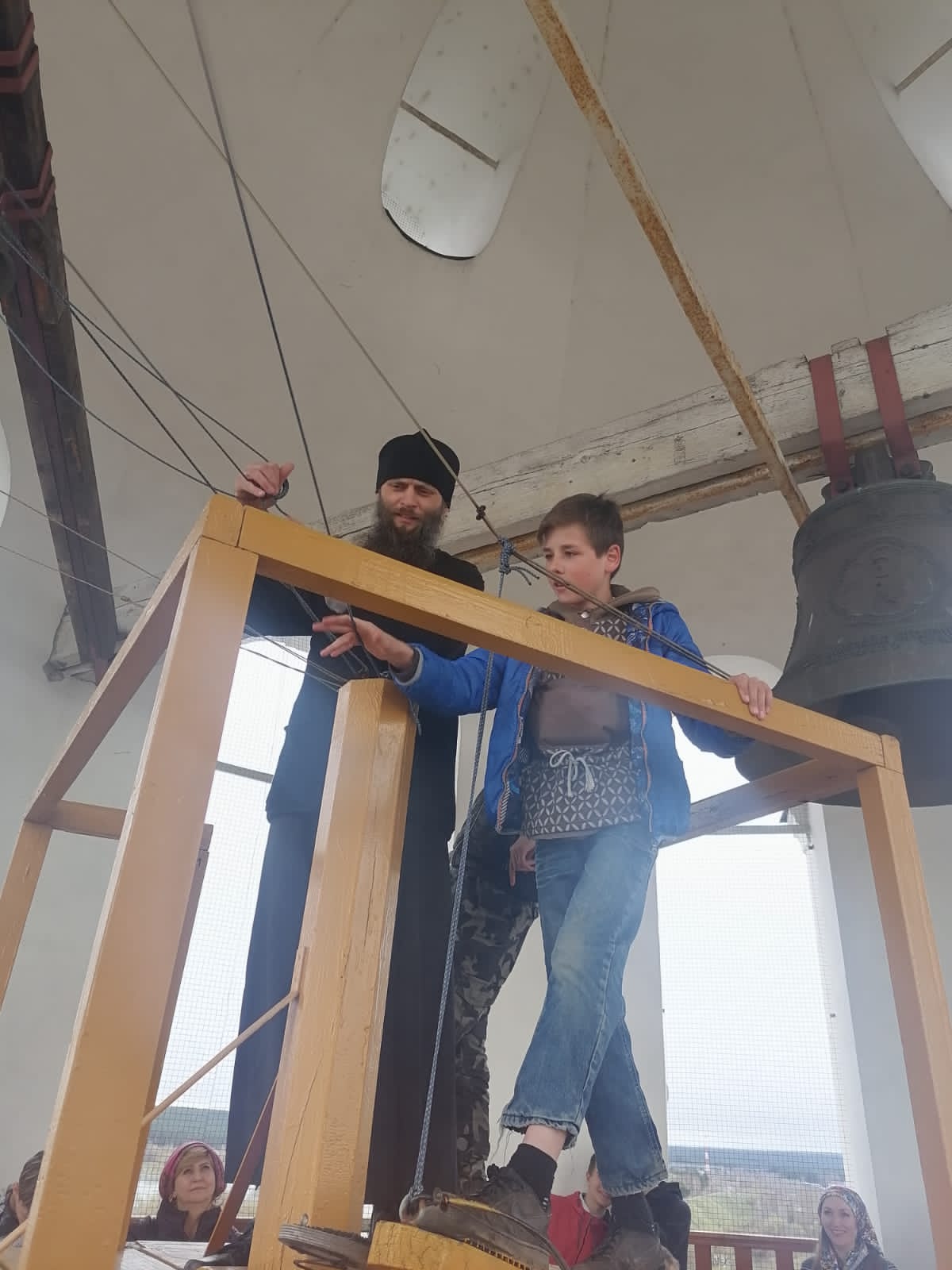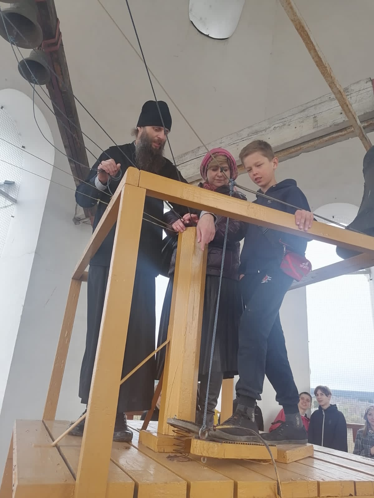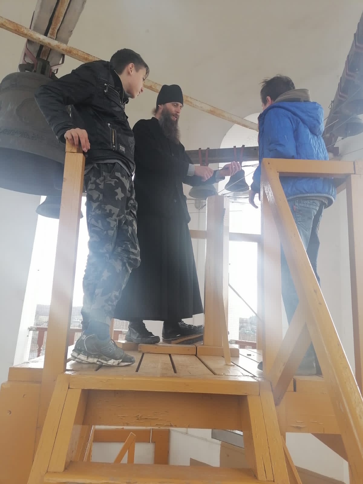 Ребята были великим постом на экскурсии в храме и, когда узнали, что на светлой седмице можно будет позвонить в колокола, ждали с нетерпением этого момента. Каждый желающий вместе с настоятелем храма иереем Сергием Дроздом смог исполнить несложный, но красивый звон, потом были куличи, пасхальные яйца, вкусный чай и интересная беседа о самом главном. Ребята большие молодцы. Через тернии непростых жизненных обстоятельств они пробираются к светлой счастливой жизни, и мы надеемся, что каждое посещение храма приближает их к этой заветной цели. Христос воскресе!