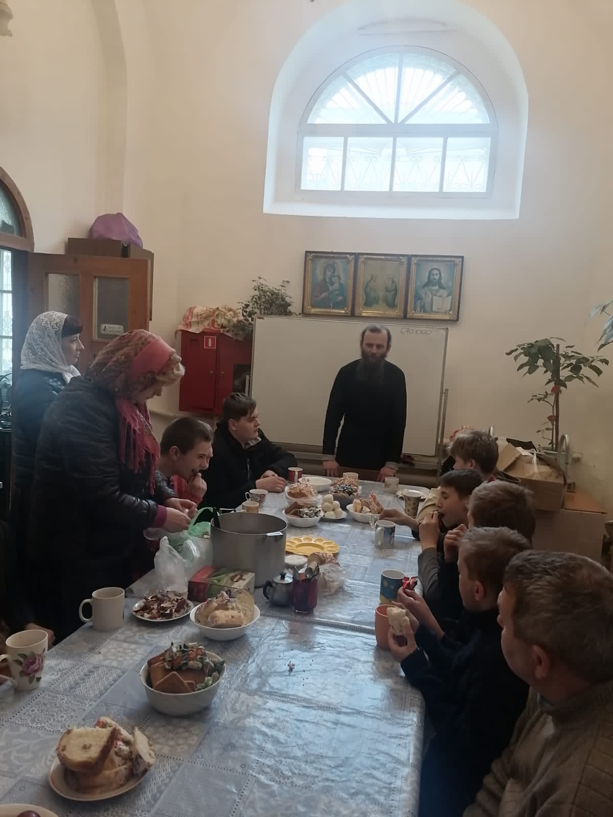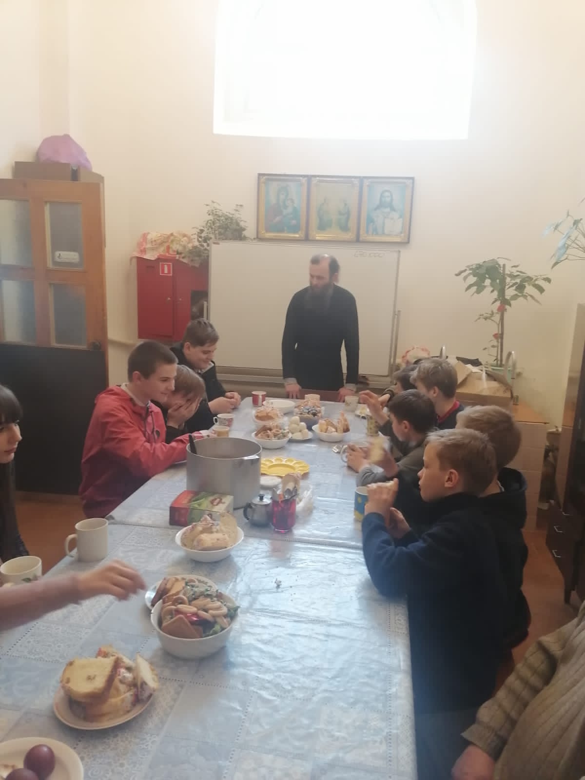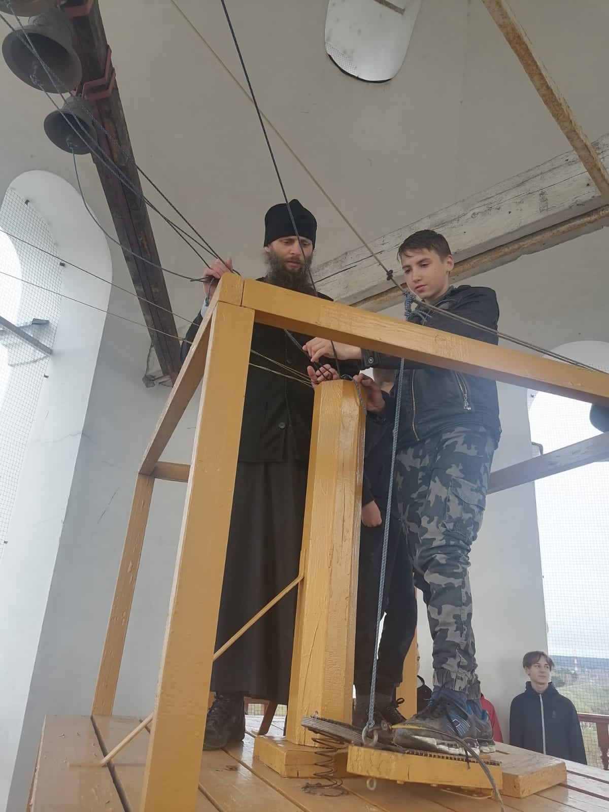 Ребята были великим постом на экскурсии в храме и, когда узнали, что на светлой седмице можно будет позвонить в колокола, ждали с нетерпением этого момента. Каждый желающий вместе с настоятелем храма иереем Сергием Дроздом смог исполнить несложный, но красивый звон, потом были куличи, пасхальные яйца, вкусный чай и интересная беседа о самом главном. Ребята большие молодцы. Через тернии непростых жизненных обстоятельств они пробираются к светлой счастливой жизни, и мы надеемся, что каждое посещение храма приближает их к этой заветной цели. Христос воскресе!