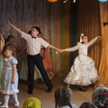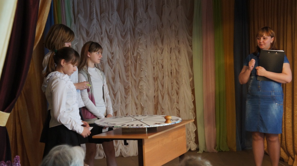 Воспитанники театральной студии «Образ» приготовили для всех ребят и гостей поздравления, показали небольшую сценку, и исполнили песни «Пасха» и «Под звездами Балканскими» под руководством Виноградовой Нины Юрьевны. Затем продолжив военную тематику, танцевальный коллектив исполнил танец под названием «Берлинская полька». После этого официальная часть праздника подошла к концу, и ребятам предложили поиграть. Первая игра прошла в форме «Поле чудес». В игре участвовали воспитанники объединений: керамика, бисероплетение, рукоделие, сувенир. Ведущая приготовила для участников вопросы, связанные непосредственно с тем мастерством, которому они обучались в своих объединениях. Ребята с удовольствием называли буквы, пытаясь угадать зашифрованное слово. Победителю вручали подарок, а другим участникам сладкий приз. После игры «Поле чудес» ребята из танцевальной студии исполнили танец «Русский лирический», а солистки ансамбля «Седмица» Аленичева Анна и Сутормина Татьяна спели песня «Говорят, что в мире нет чудес». Вторая игра прошла в виде музыкальной телепередачи «Угадай мелодию». Ребятам включали отрывки из песен, взятых из известных детских мультфильмов, а задача участников была угадать название песни или самого мультфильма. Победителю вручили подарок музыкальный диск. В завершении праздника воспитанники ансамбля «Седмица» исполнили песню «Казаки», а в исполнении Суторминой Татьяны прозвучала песня «Ангел хранитель».