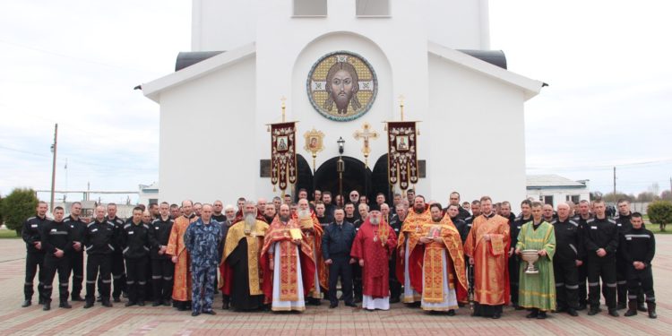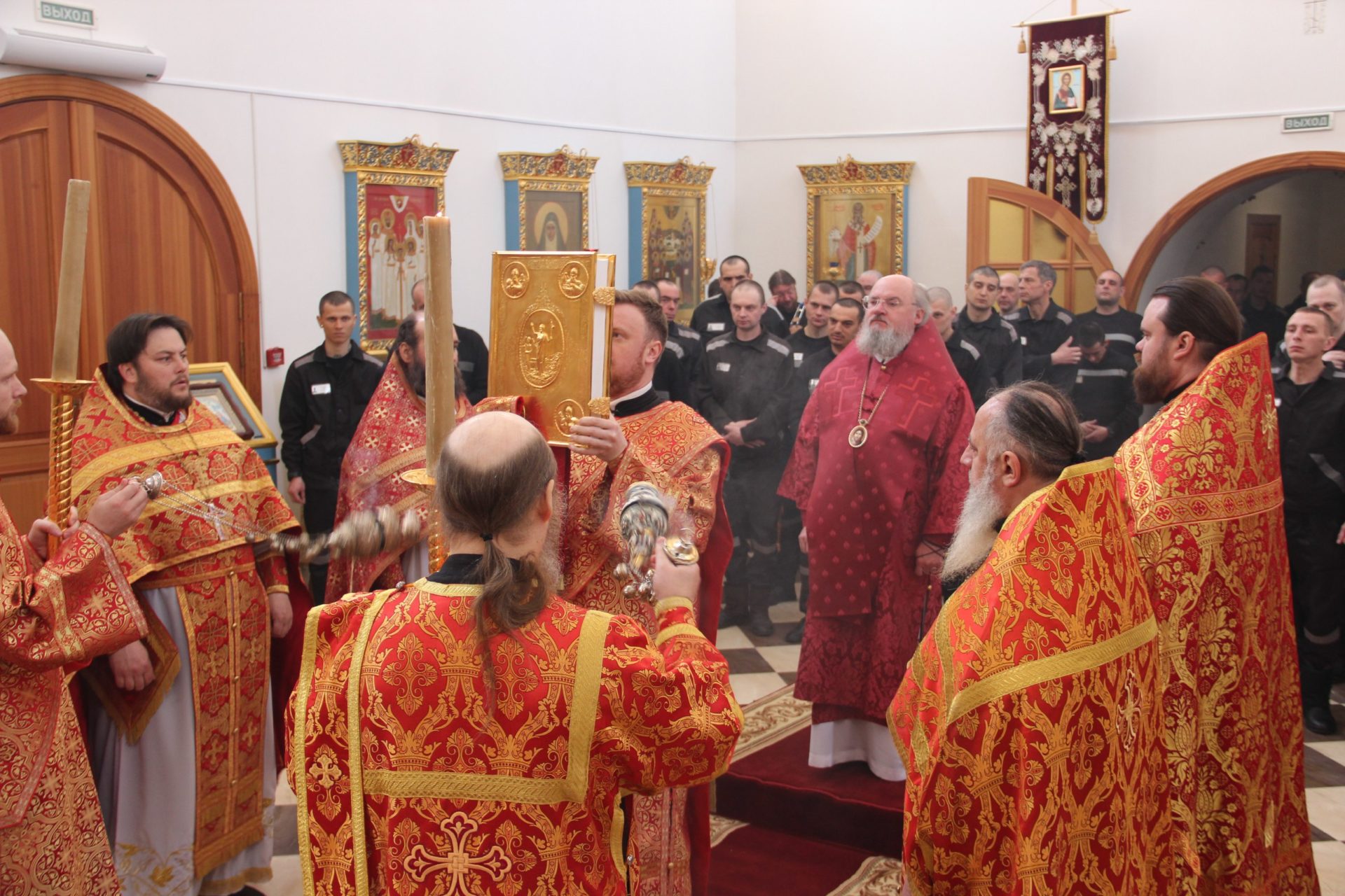 28 апреля, в Четверг Светлой седмицы, епископ Козельский и Людиновский Никита, председатель Комиссии по благотворительности Калужской митрополии, совершил Божественную литургию в храме Всех святых в земле Российской просиявших исправительной колонии № 5 города Сухиничи.