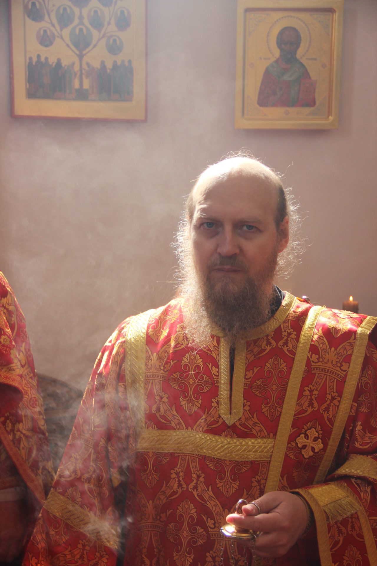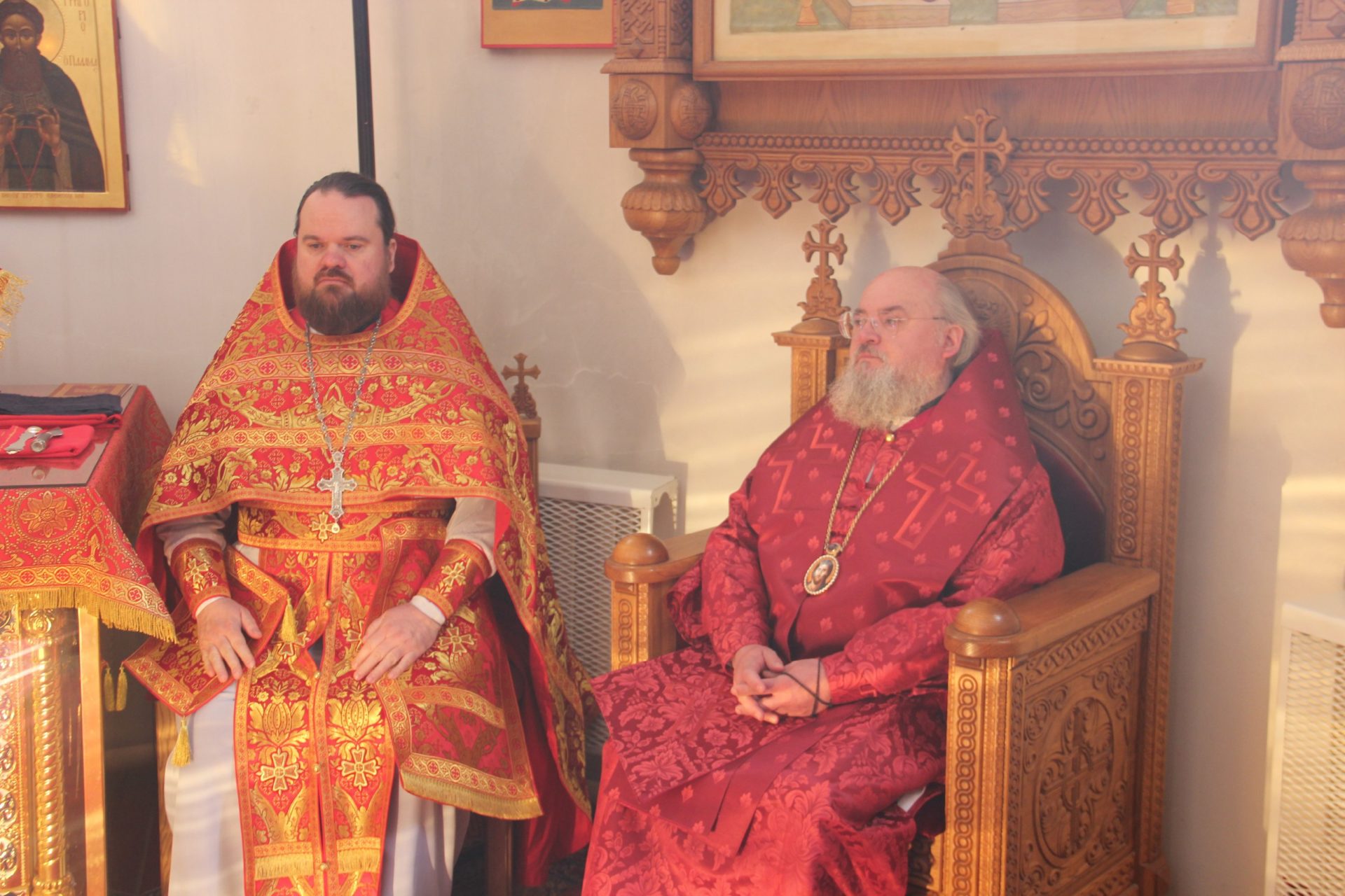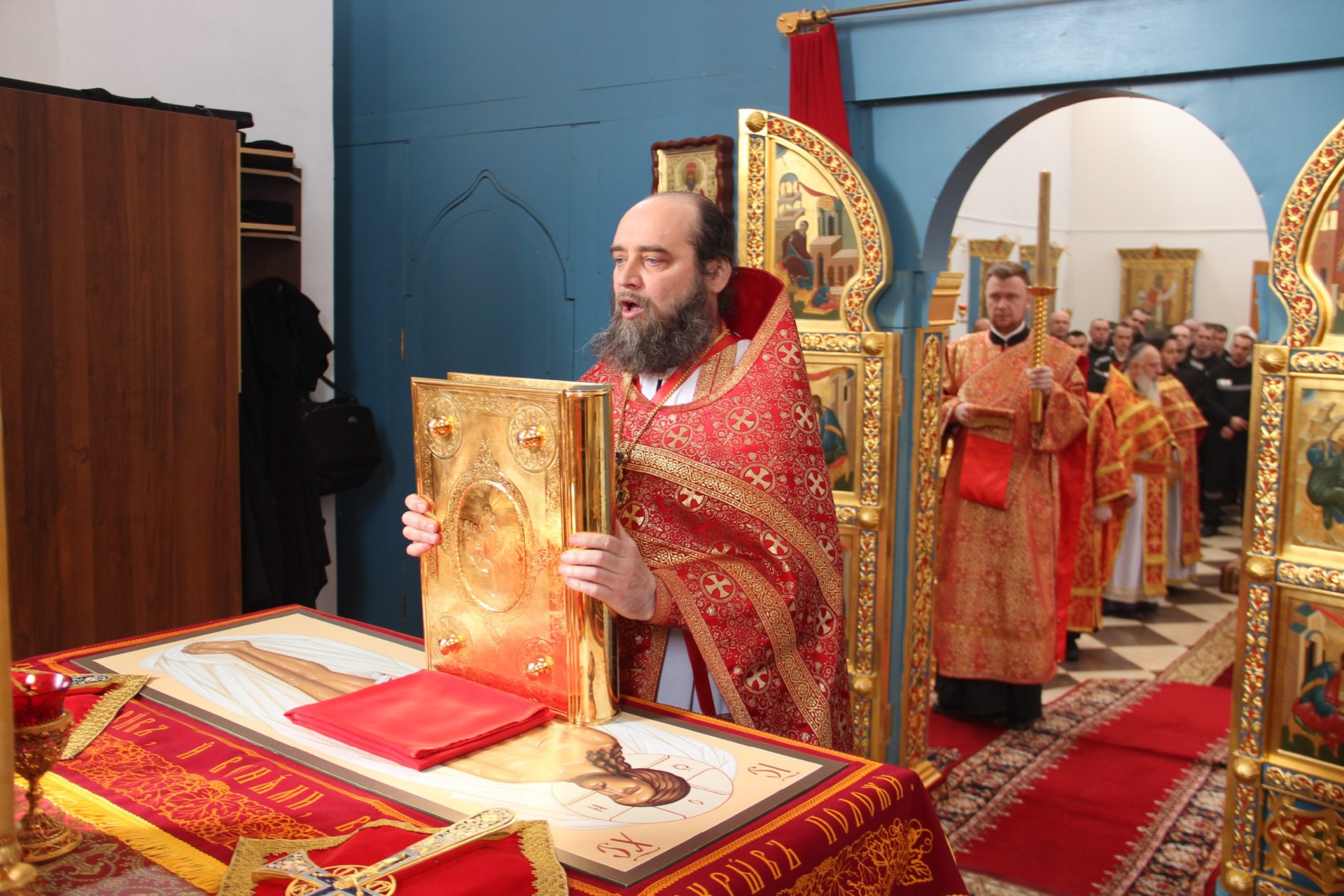 Архипастырю сослужили протоиерей Дмитрий Сахаров, протоиерей Сергий Сычев, протоиерей Антоний Хатунцев – священнослужители Козельской епархии, иерей Вадим Ваньков и насельники Свято-Введенской Оптиной пустыни, окормляющие заключенных колонии. Диаконский чин возглавил диакон Евгений Ковригин.