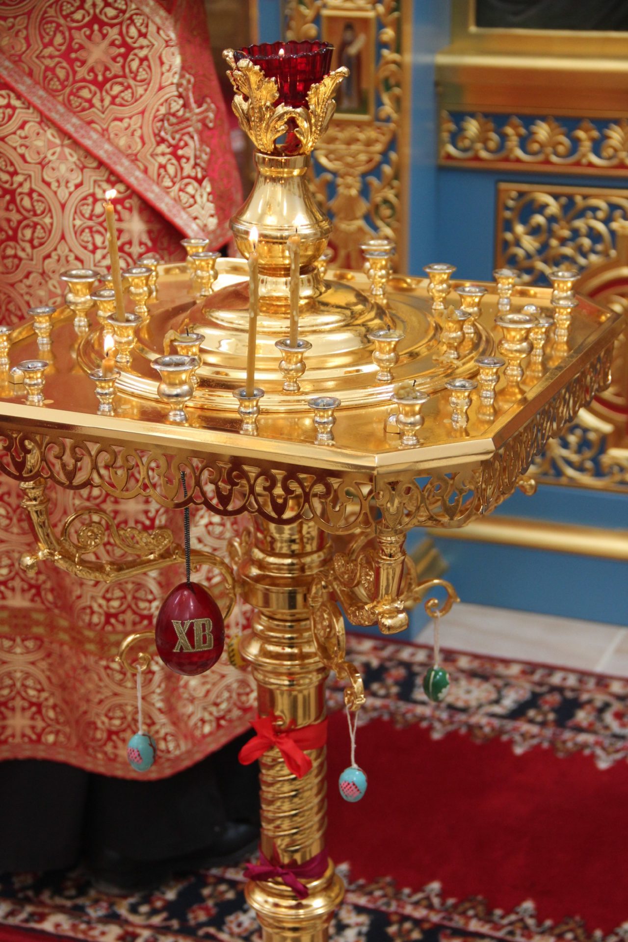 В завершении литургии состоялся пасхальный крестный ход, после которого владыка поздравил прихожан храма с праздником Светлого Христова Воскресения и раздал им пасхальные подарки.