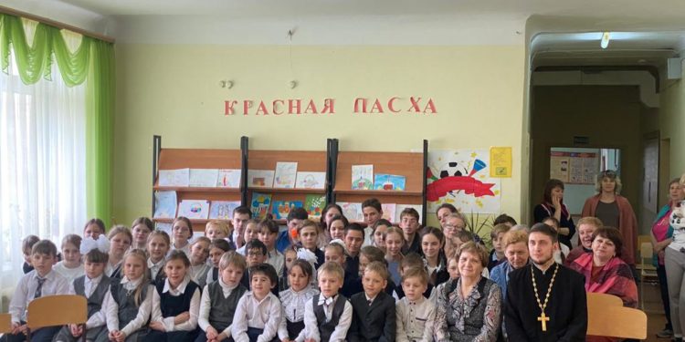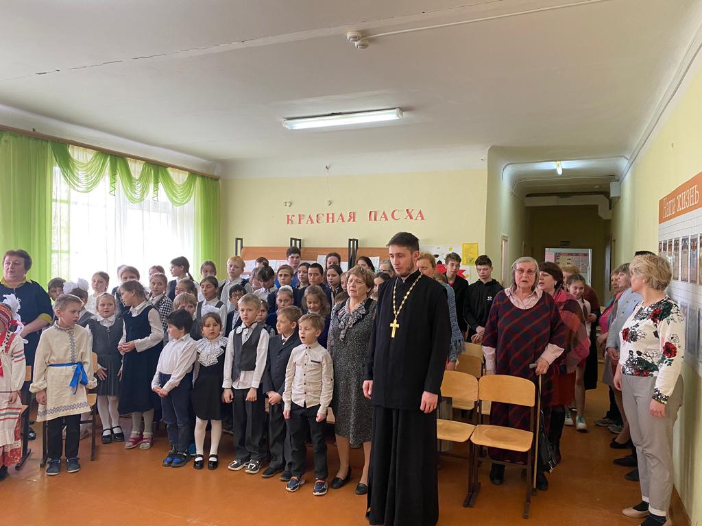 28 апреля, в четверг Светлой седмицы, настоятель храма в честь святителя Николая Чудотворца села Березичи Козельского района иерей Евгений Мягков посетил Общеобразовательную школу деревни Дешовки. Дети и учителя подготовили Пасхальный утренник, посвящённый Светлому Христову Воскресению. Иерей Евгений поздравил всех с Великим праздником, рассказал о его событиях и о доброй традиции всю Пасхальную неделю звонить в колокола. С поздравлениями выступили директор школы Татьяна Николаевна Злобина и почетный педагог школы Галина Эдуардовна Горохова. В конце праздника все участники утренника спели тропарь Воскресения Христова, и отец Евгений пригласил всех желающих приходить в храм и звонить в колокола.