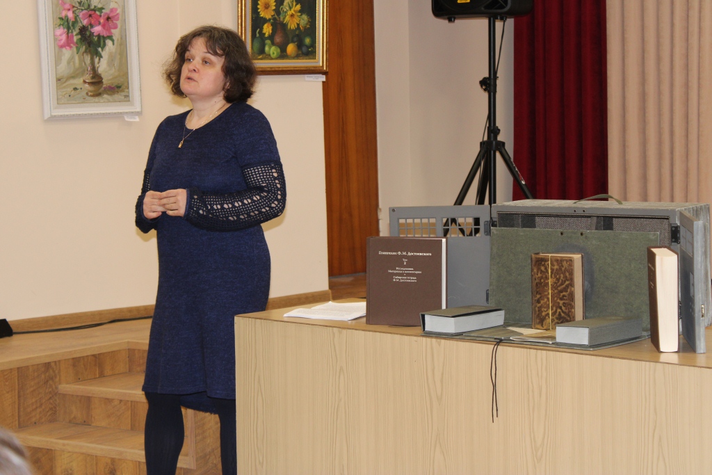 В начале своего выступления Валентина Алексеевна привела факты, подтверждающие связь великого русского писателя с благословенной землёй Калужской, и подчеркнула, что Евангелие Ф. М. Достоевский читал с раннего детства всю жизнь – до самой смерти. Отметки писателя на страницах Евангелия, которое писатель читал на каторге, считали навсегда утраченными.