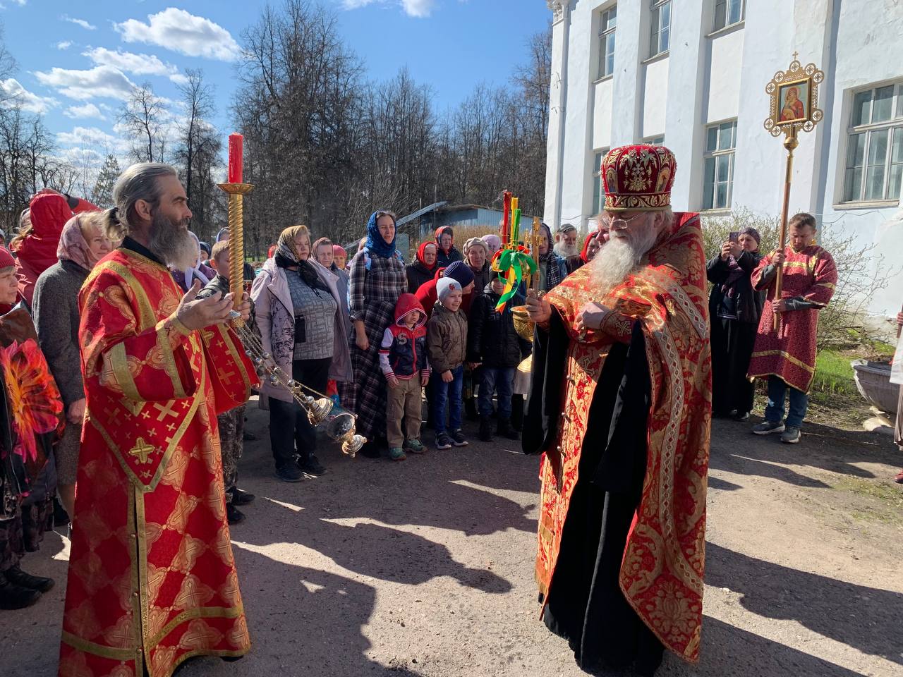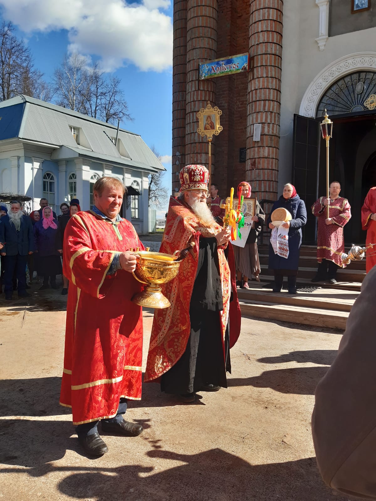 В субботу Светлой Седьмицы в Казанском соборе города Людиново прошло праздничное богослужение. Вся седмица, называемая Светлой, есть как бы один великий праздник Пасхи. Отцы Церкви и 66-е правило VI Вселенского Собора повелевают верующим в течение всей Светлой седмицы в храмах упражняться в псалмах и пениях духовных, торжествуя и радуясь о Воскресшем Господе. Богослужения на Светлой седмице совершаются при открытых Царских Вратах — в знак того, что Господь Своим Воскресением отверз верующим двери Рая. Они остаются открытыми после богослужения, начиная с первого дня Пасхи, во всю седмицу и закрываются только в субботу перед 9-м часом. Во всю Пасхальную седмицу начало и конец церковных служб совершается так же, как и в первый день.
