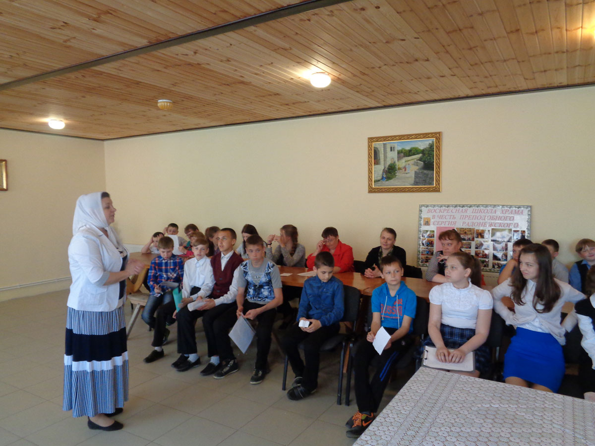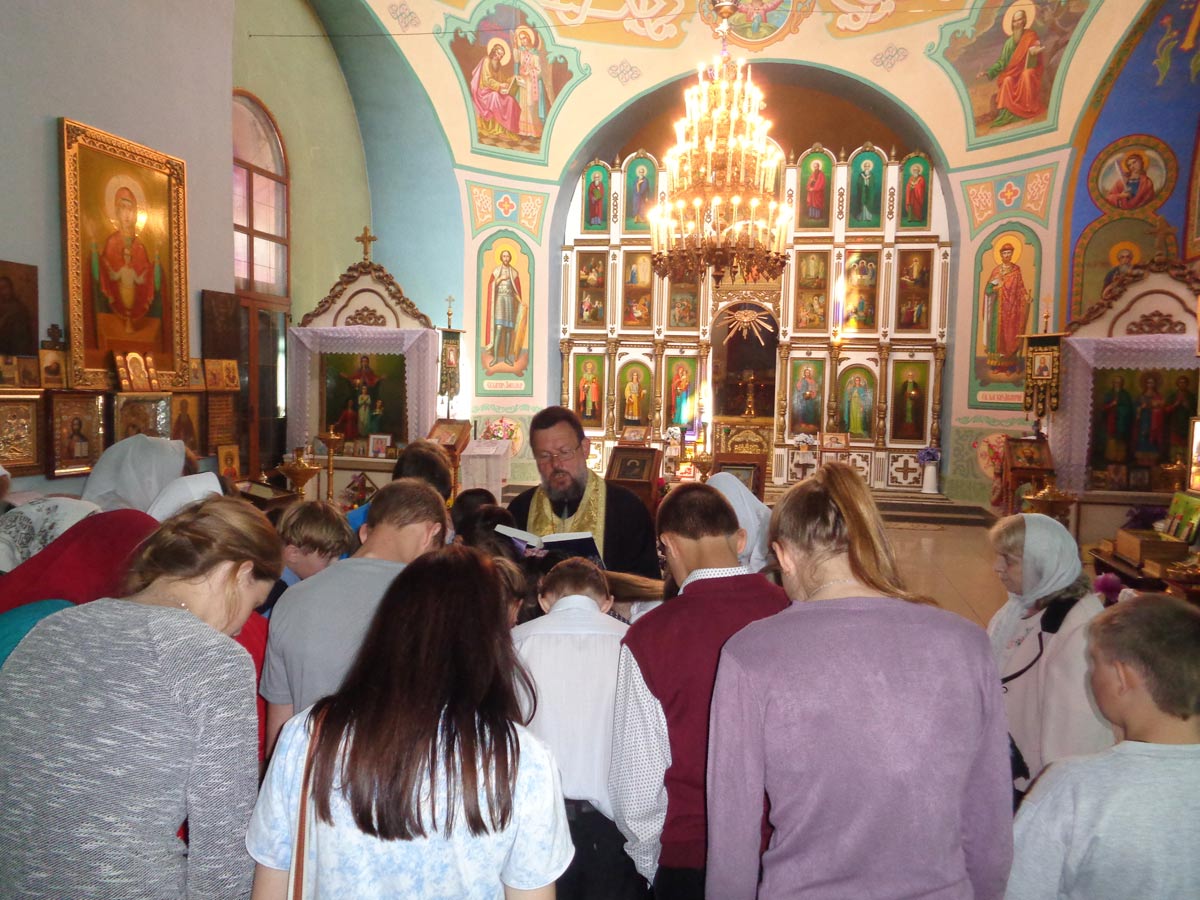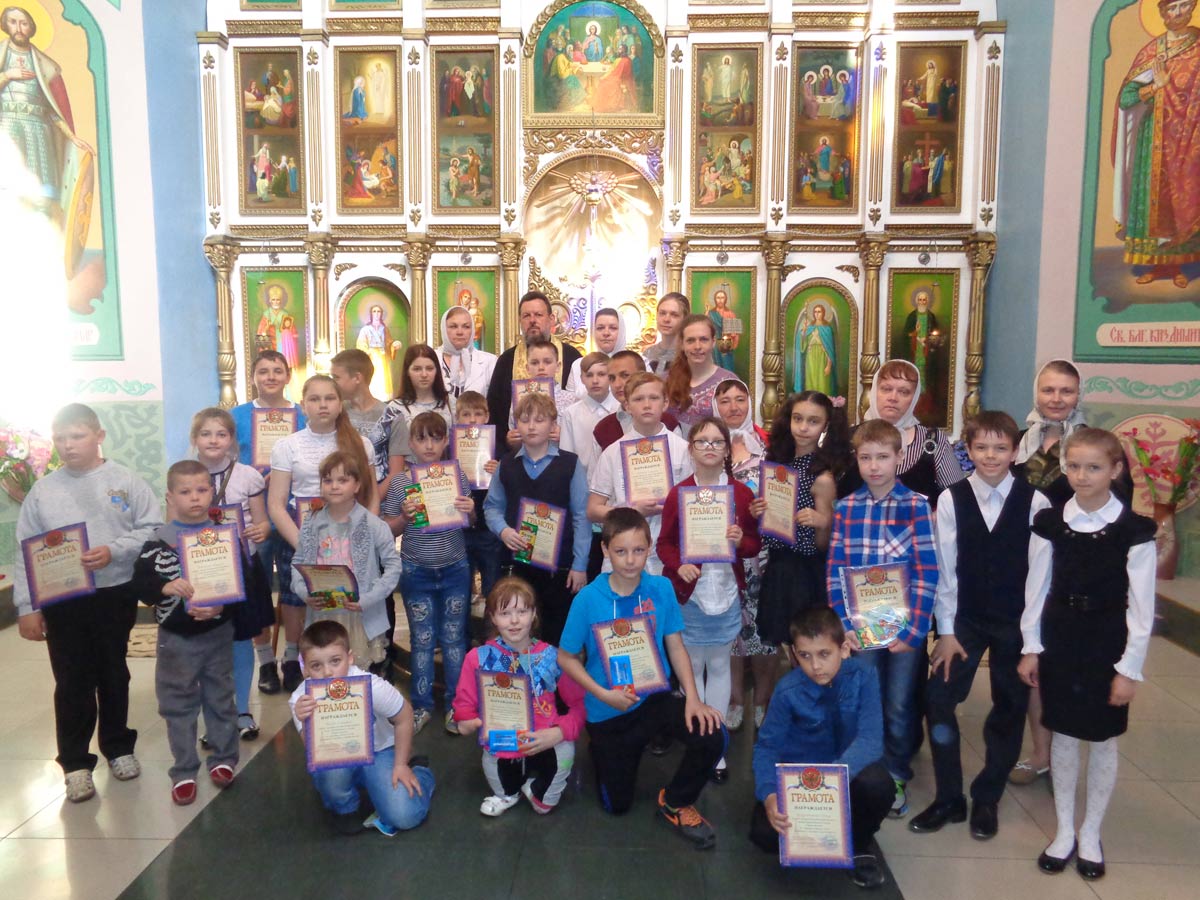После конкурса настоятель храма протоиерей Василий Биляк отслужил благодарственный молебен за успешно прошедший учебный год в воскресной школе и поздравил всех детей и родителей с его завершением, он пожелал всем здоровья, хороших каникул, не забывать в летнее время о молитве и о посещении храма.