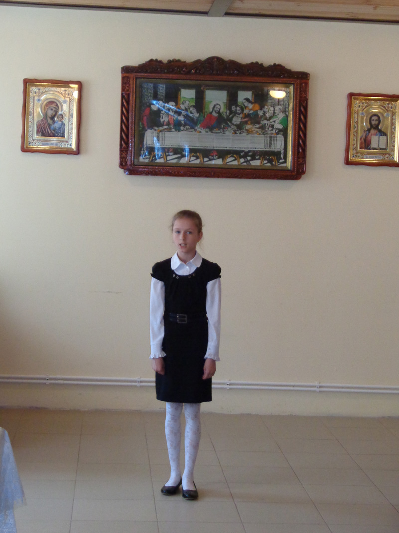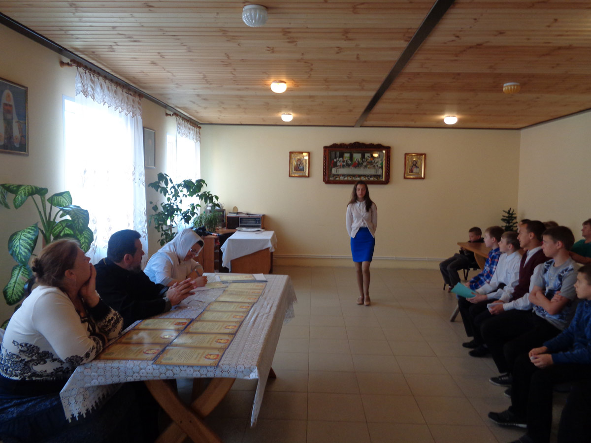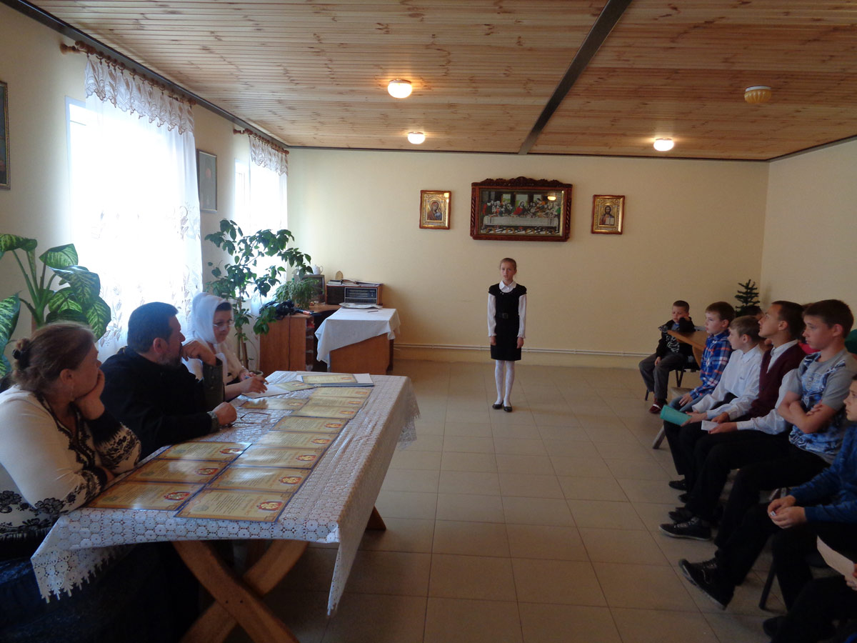Учащиеся читали стихи, посвященные князю Владимиру, России и крещению Руси. Батюшка поблагодарил всех участников за прекрасное выступление, рассказал собравшимся об истории возникновения праздника. Участники конкурса были награждены похвальными листами.