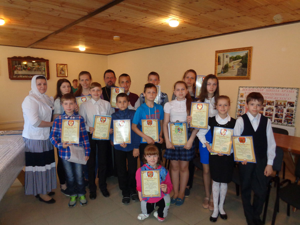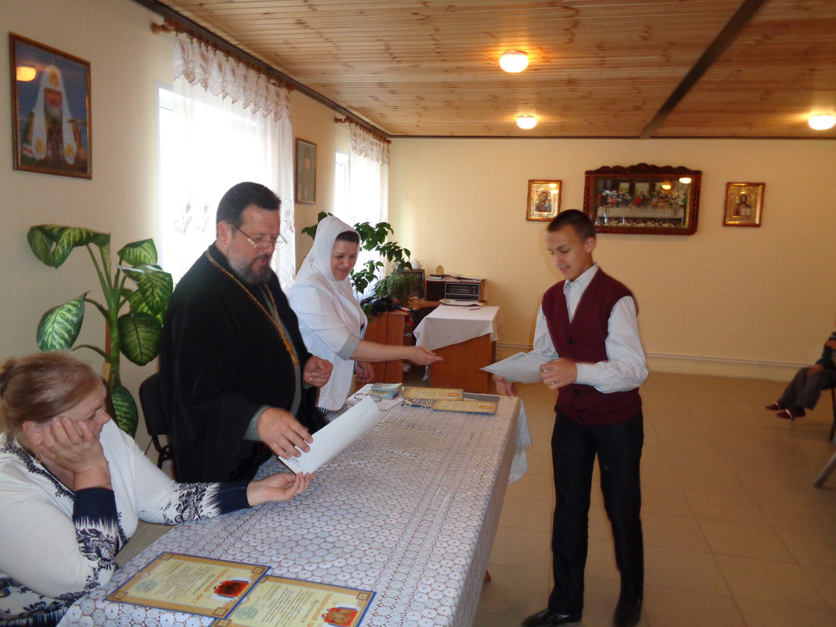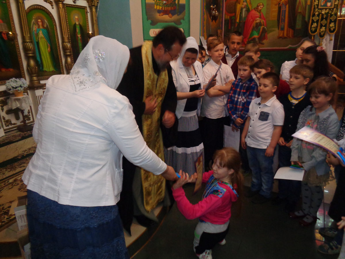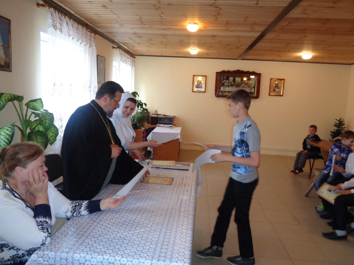 Подводя итоги учебного года батюшка поздравил лучших учащихся в истекшем учебном году и вручил им грамоты за отличные и хорошие успехи в учебе и активное участие в жизни школы, благодарственными письмами были отмечены и родителей.