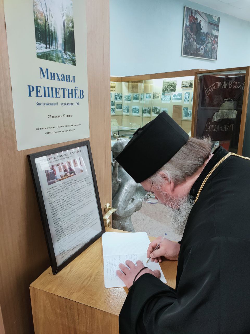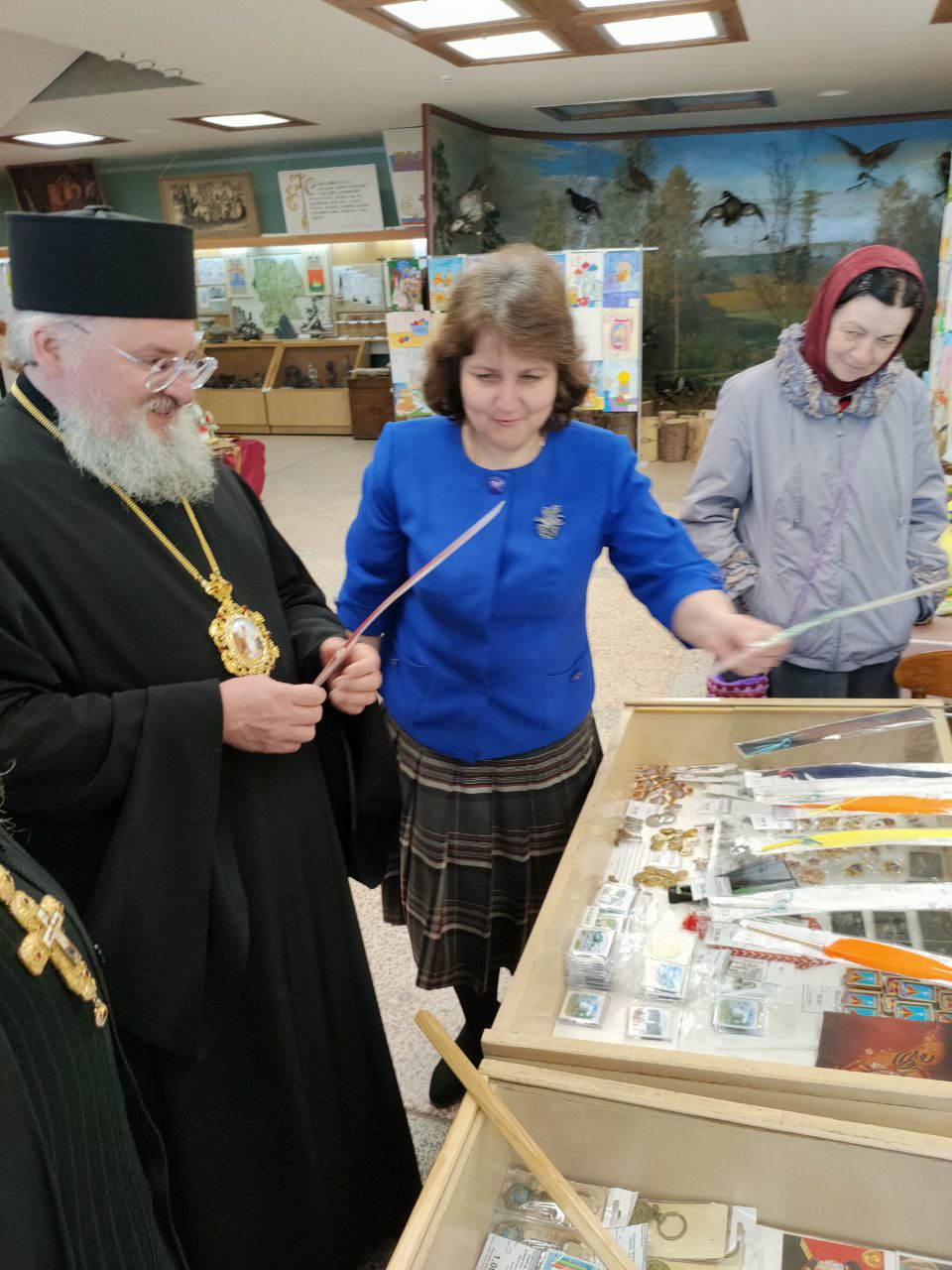1 мая Епископ Козельский и Людиновский Никита и настоятель Казанского собора протоиерей Алексий Жиганов посетили городской музей Людиново. Гостей встречала директор музея Башкирова Елена Витальевна. Посетители познакомились с выставкой, проходящей в рамках епархиального пасхального фестиваля » Звенит Пасхальная радость», а также с другими экспозициями музея.